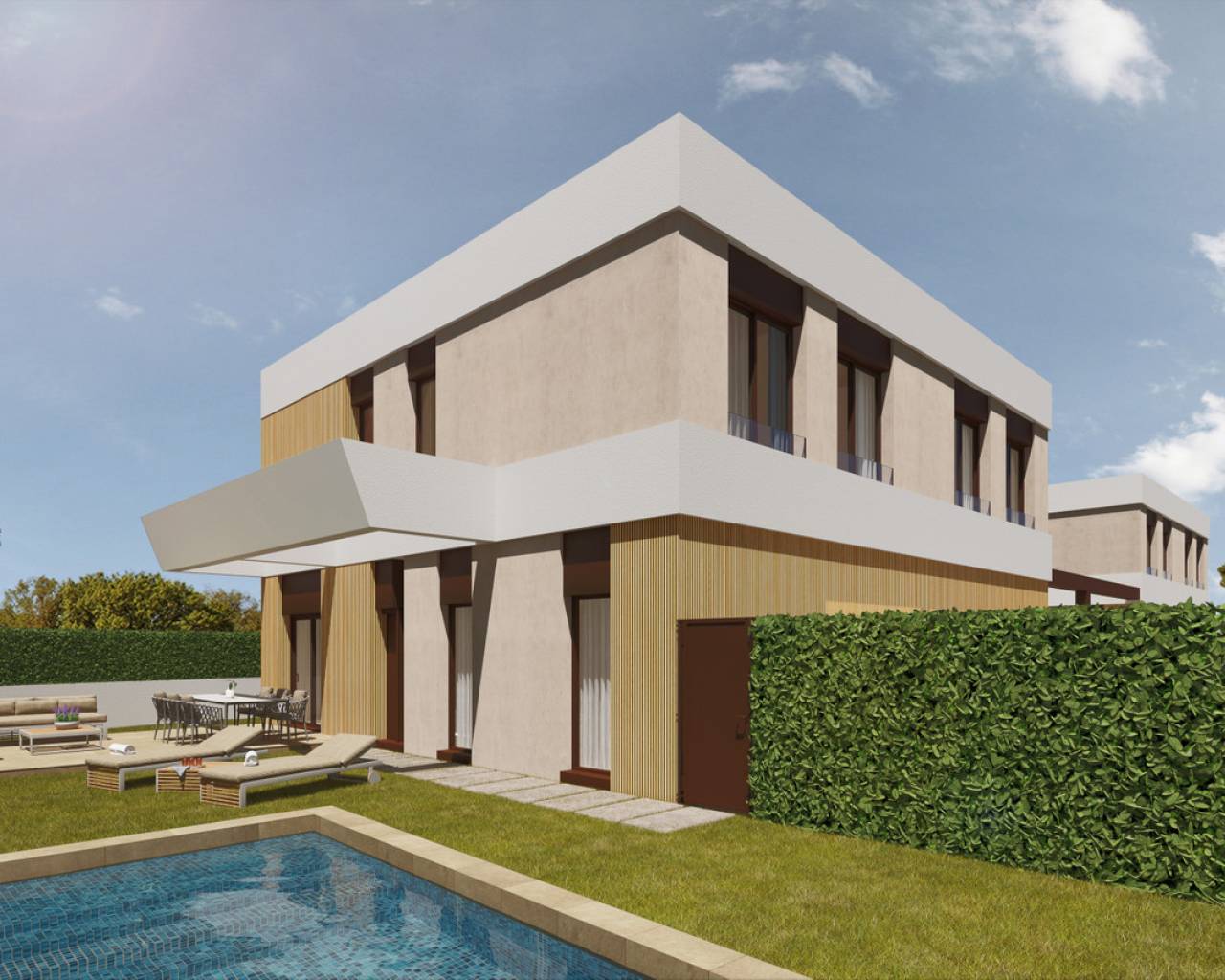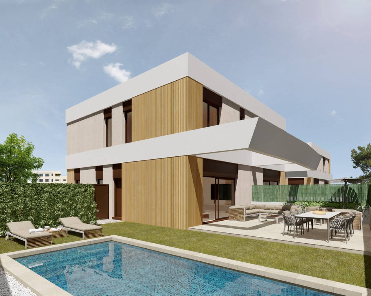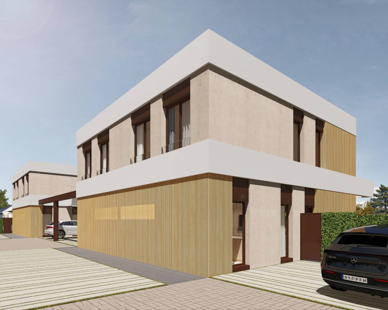 Este proyecto proporciona una bocanada de aire fresco al entrono aprovechando sus espectaculares atardeceres. Es una vivienda de dos plantas, que desarrolla el programa con un gran salón-comedor-cocina, además de disponer de dos suites en planta baja y otra en la planta alta, junto con un espacio de despacho.