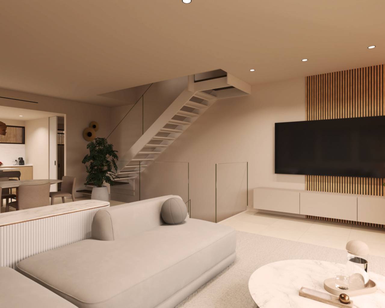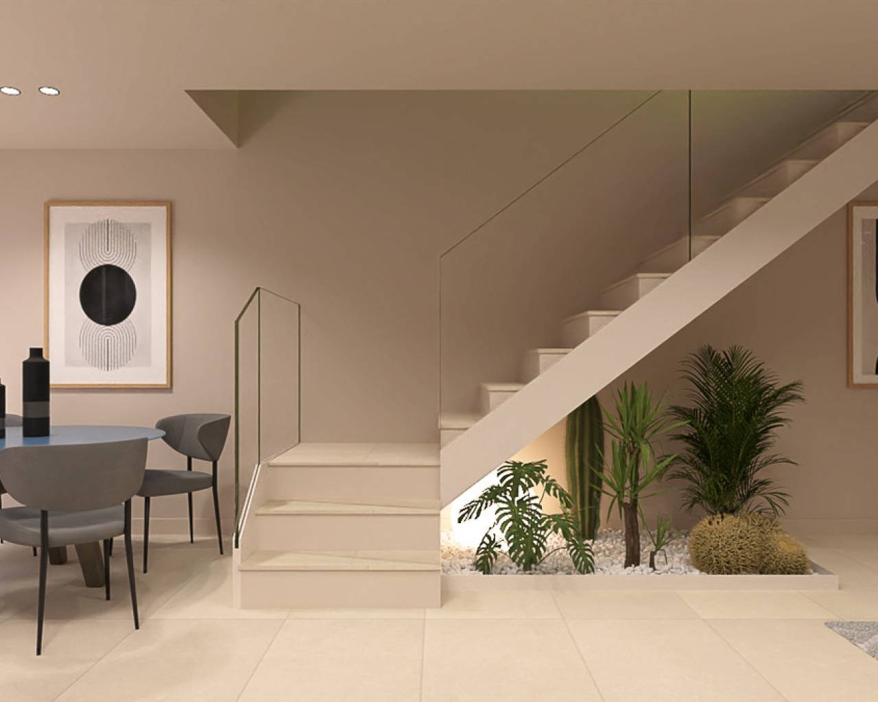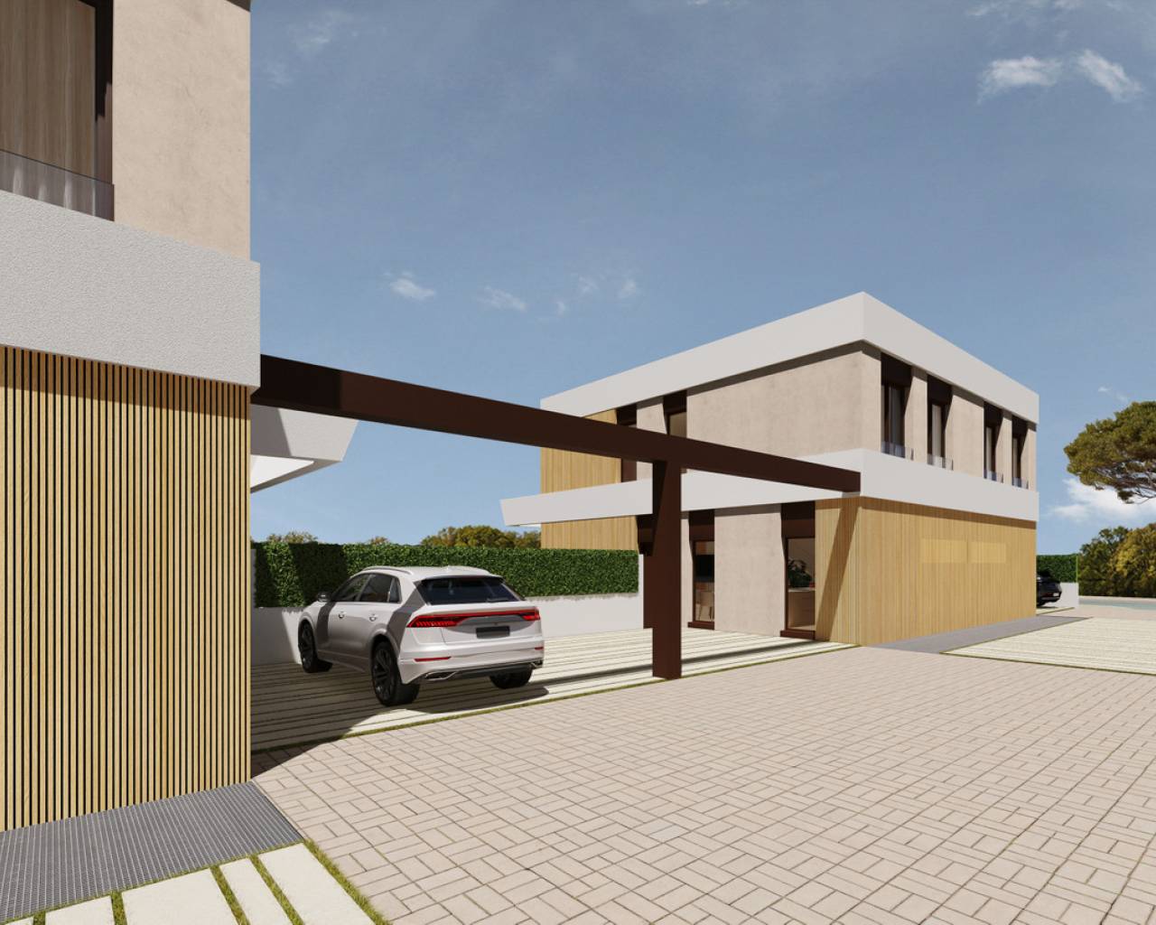 Este proyecto proporciona una bocanada de aire fresco al entrono aprovechando sus espectaculares atardeceres. Es una vivienda de dos plantas, que desarrolla el programa con un gran salón-comedor-cocina, además de disponer de dos suites en planta baja y otra en la planta alta, junto con un espacio de despacho.