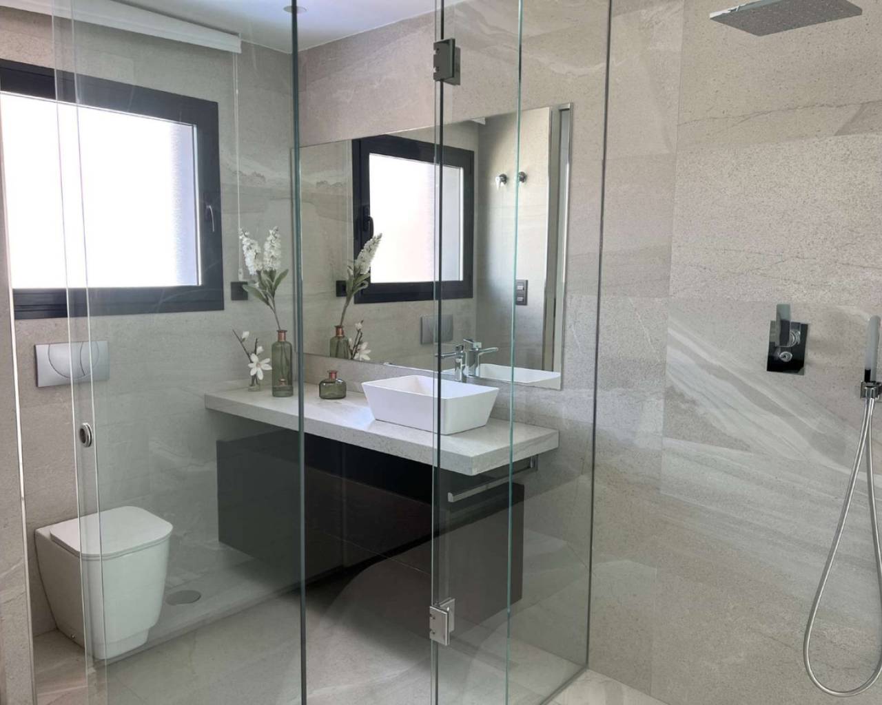 Moonlight son casas de 2 plantas y 3 dormitorios dobles con 3 baños completos. Con piscina privada y parcelas de 400 a 500m cuadrados.