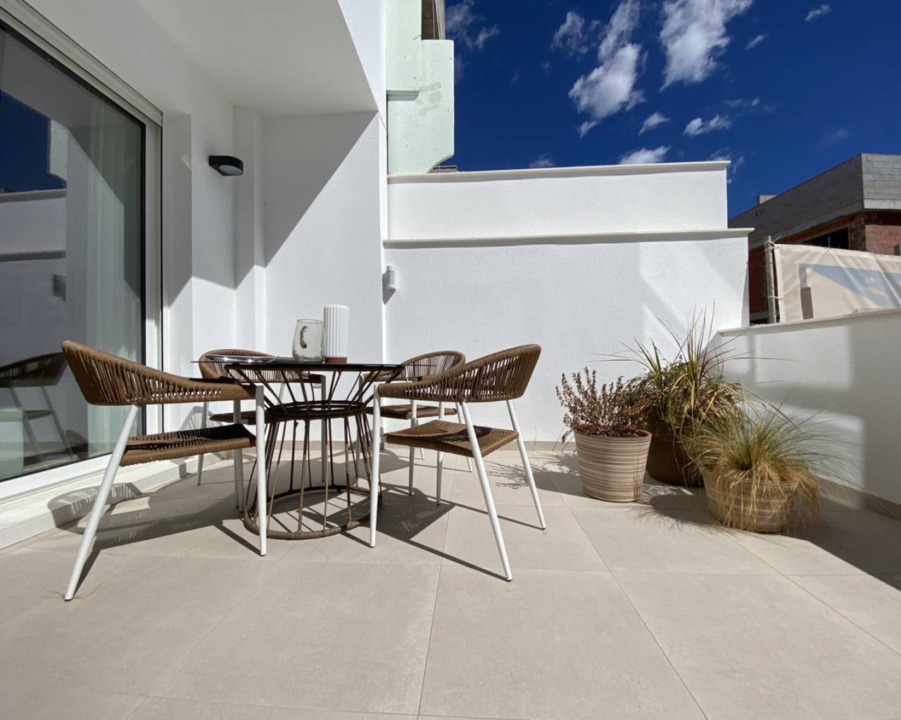 Este es un residencial exclusivo con importantes mejoras en el diseño mediterráneo y el confort de las viviendas. Consta de 12 modernos apartamentos de primera calidad, con 3 dormitorios en planta baja y 2 dormitorios en la planta alta con un solárium de más de 65 m² que ofrece gran privacidad. En el solárium se puede disfrutar de una cocina de verano cerrada, aseo y pérgola. El residencial cuenta con una zona ajardinada común con piscina, y cada apartamento dispone de amplias terrazas donde se puede disfrutar del sol durante todo el año. Otro aspecto importante de este proyecto es el trastero para bicicletas en la zona común, con capacidad para 2 bicicletas por apartamento en planta alta. Ubicado en el recorrido "Del Pilar al Mar", un itinerario que transcurre a lo largo del paseo urbano, comienza en el centro del pueblo y finaliza en una de las playas de Torre de la Horadada. El recorrido tiene una longitud de 3 km y se puede hacer a pie, en bicicleta o en patines. La costa de Pilar de la Horadada se extiende a lo largo de más de 4 kilómetros y presume de amplias playas de arena blanca y fina, en intenso contraste con pequeñas calas privadas y resguardadas. En Pilar de la Horadada puedes disfrutar de más de 320 días de sol al año, lo que te permite conocer su historia, fiestas, tradiciones y riqueza gastronómica, o practicar todo tipo de deportes en sus modernas instalaciones.