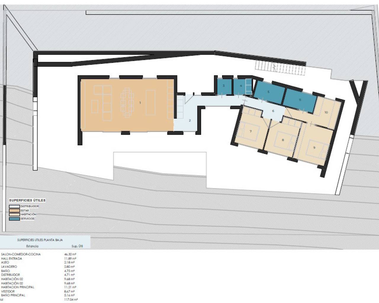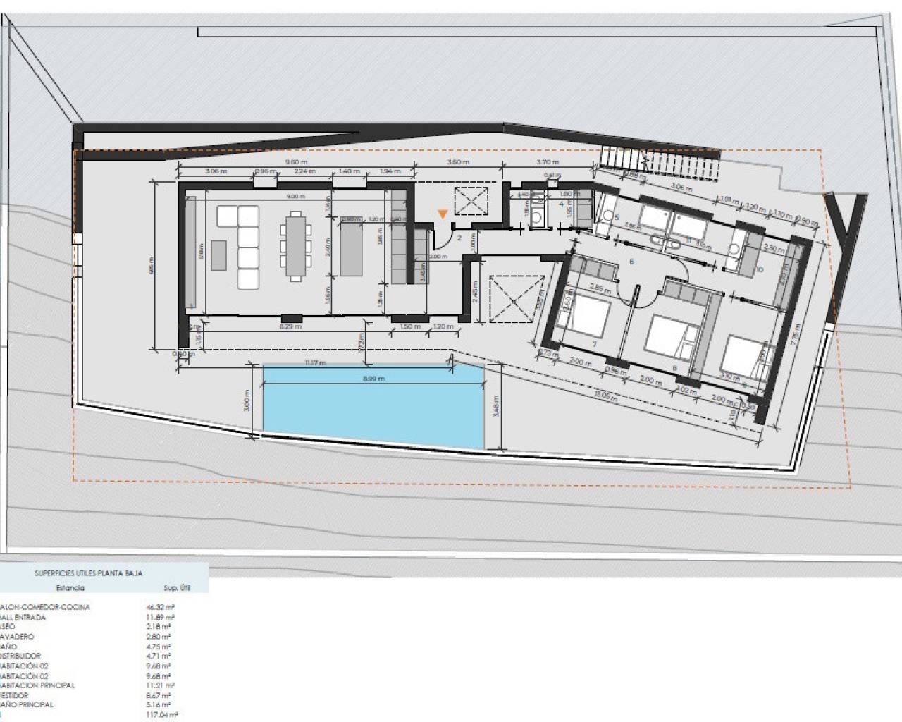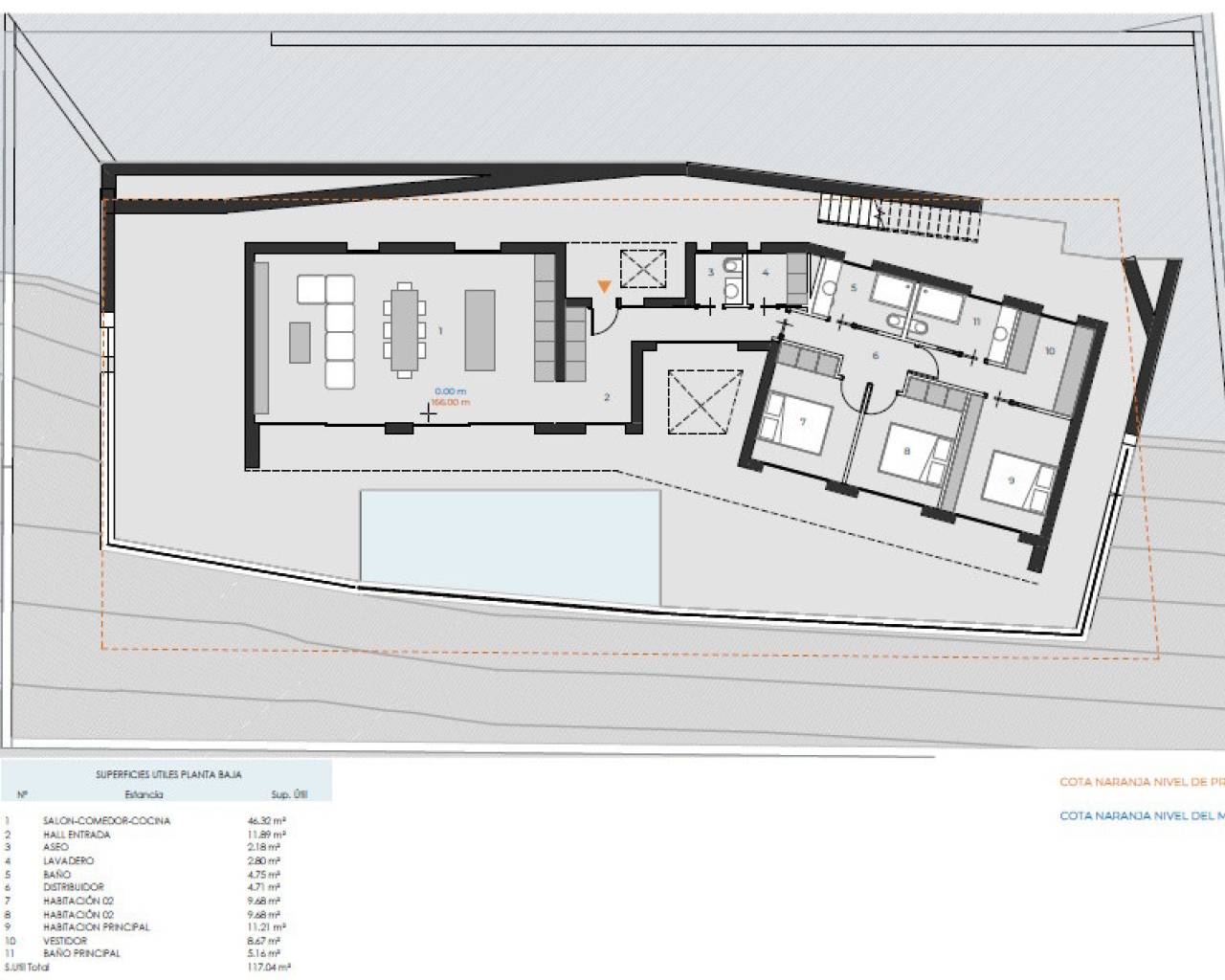 Moderna villa en una parcela de 800 m² en Monte Solana, con 200 m² construidos, piscina privada de 32 m² y terraza descubierta de 40 m². Equipada con sistema de aire acondicionado por conductos (frío/calor) para mayor confort durante todo el año. Una combinación perfecta de estilo y vida al aire libre.
