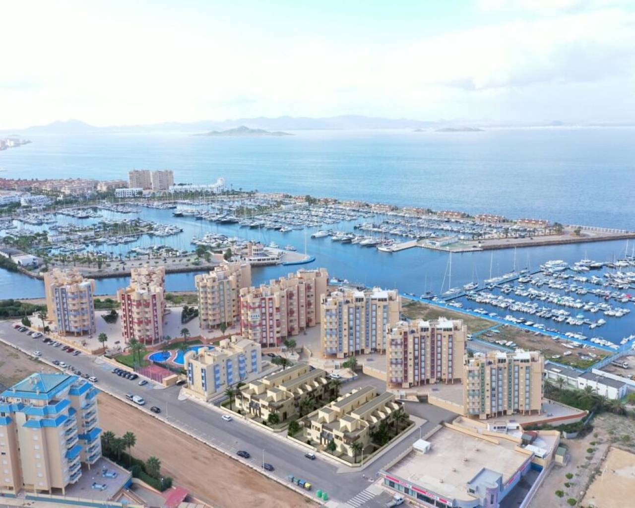 Situada en el Sureste español, en la región de Murcia, pocos lugares tienen la fortuna de contar con un lago de agua salada junto al Mar Mediterráneo. Este mar peculiar recibe el nombre de Mar Menor. Su litoral cuenta con 73 km de costa en la que se van sucediendo playas de aguas transparentes y poco profundas. A su gran oferta de playas de gran calidad, que suman más de 40 km de arenales, hay que sumar la posibilidad de elegir entre dos mares con aguas a distintas temperaturas, grados de salinidad diferentes, uno con oleaje y otro prácticamente tranquilo todo el año. La Manga del Mar Menor es un magnífico destino turístico pensado para hacer la estancia del visitante más agradable. La belleza y diversidad de su paisaje, así como una temperatura media de 22° y sus más de 300 días de sol al año, son sus especiales cualidades para la práctica de deportes náuticos y el disfrute de una amplia oferta lúdica y de ocio, hacen de La Manga del Mar Menor uno de los lugares turísticos más importantes de Europa. Este residencial está situado en el km 14 de La Manga en una parcela única, en primera línea del canal del Estacio y apenas a 50 metros del Mar Mediterráneo. Inmejorable por su situación, a escasos 800 metros del puerto de Tomás Maestre, donde encontraremos una selecta zona de ocio con bares, cafeterías, restaurantes, tiendas, supermercados, farmacias, bancos, etc. En la Fase H-I de este proyecto, disponemos de 28 magníficos dúplex de dos y tres dormitorios. En esta promoción las viviendas han sido diseñadas, para aprovechar hasta el último rincón de la vivienda, así como el cuidado en elegir los materiales y el diseño de las mismas.