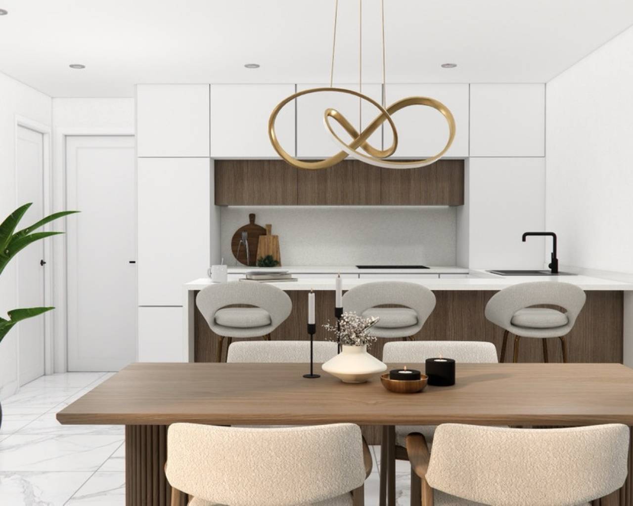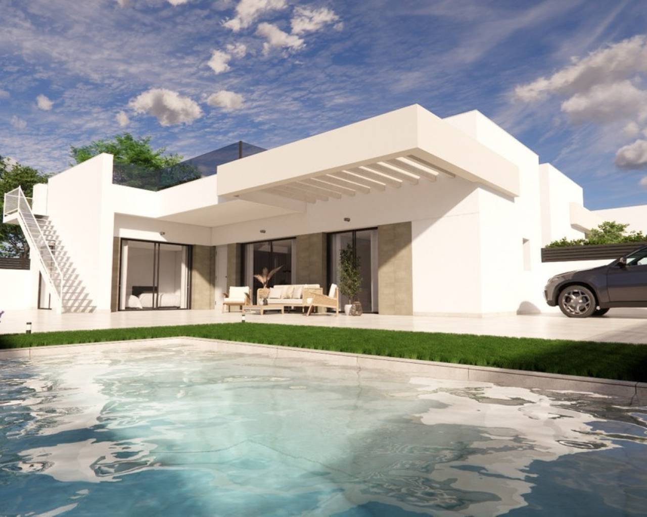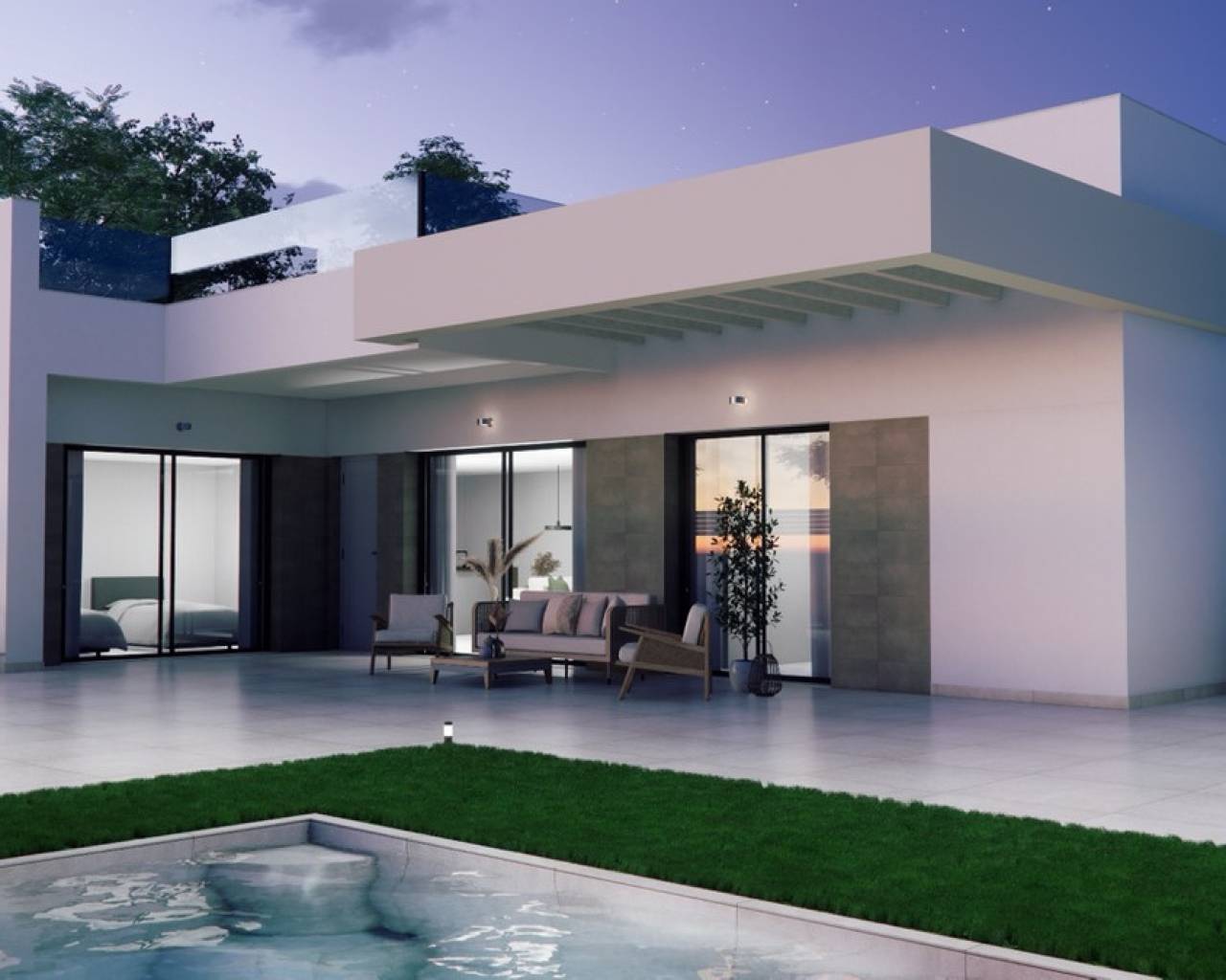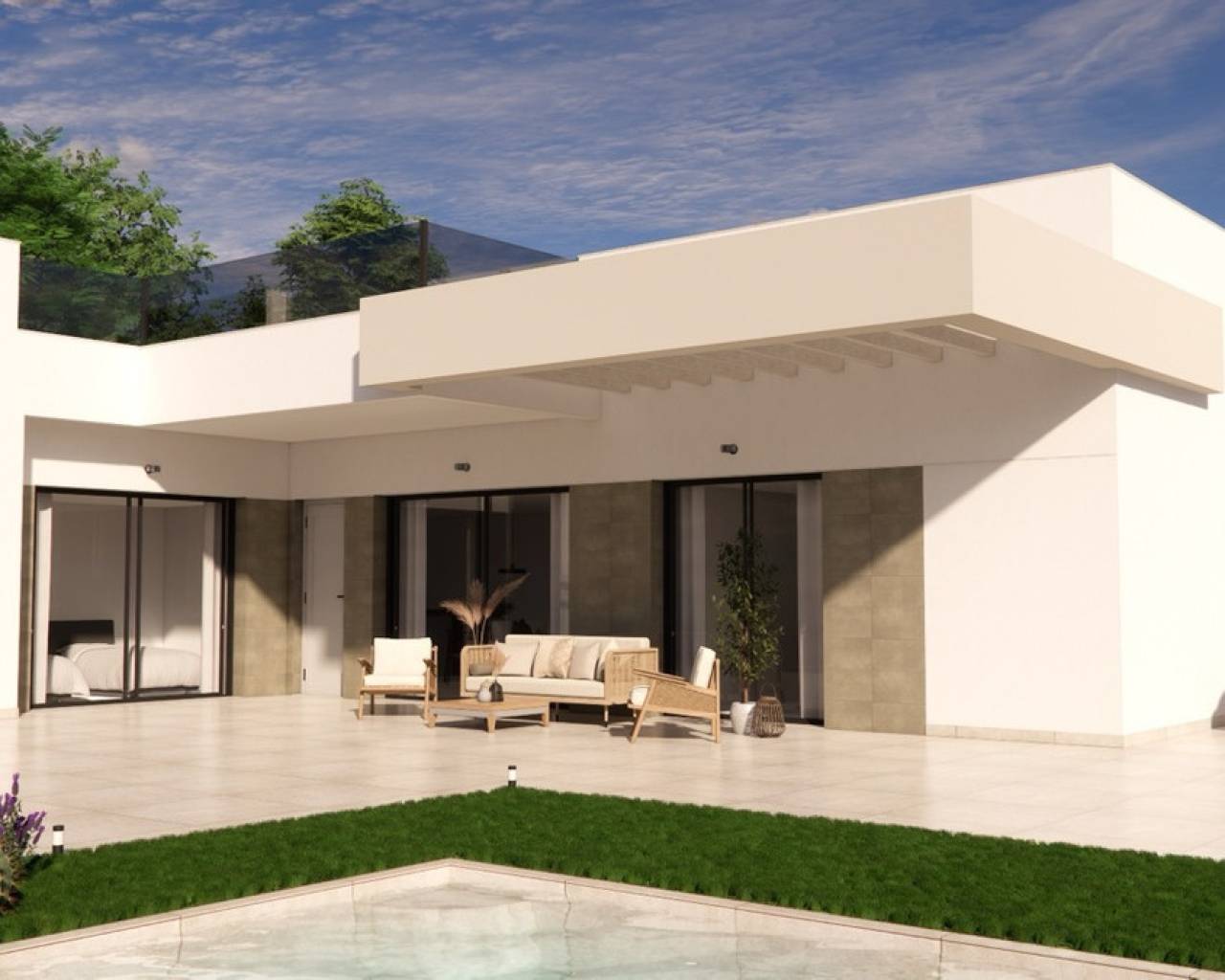 Descubra un moderno conjunto residencial que ofrece viviendas de alta calidad y eficiencia energética, diseñadas para brindar confort y estilo. Cada propiedad incluye calefacción por suelo radiante en todos los baños, elegantes mamparas de ducha y muebles de baño con espejo e iluminación. Las cocinas están totalmente equipadas con electrodomésticos integrados, incluyendo frigorífico empotrado, campana extractora, placa vitrocerámica, horno, lavadora y lavavajillas. Los dormitorios cuentan con persianas de aluminio eléctricas y armarios empotrados espaciosos, con interiores forrados de madera, cajones y barras para colgar. Entre otras características, se incluye la preinstalación de aire acondicionado en toda la vivienda, puerta de entrada de seguridad con seis puntos de anclaje y acceso motorizado al área de aparcamiento mediante control remoto. También hay preinstalación para punto de carga de coche eléctrico, garantizando comodidad preparada para el futuro. Las grandes ventanas con vidrio de alto rendimiento "Guardian Sun" ofrecen luz natural y aislamiento. Cada vivienda incluye una piscina privada de 5x3 metros, ideal para disfrutar del clima mediterráneo.