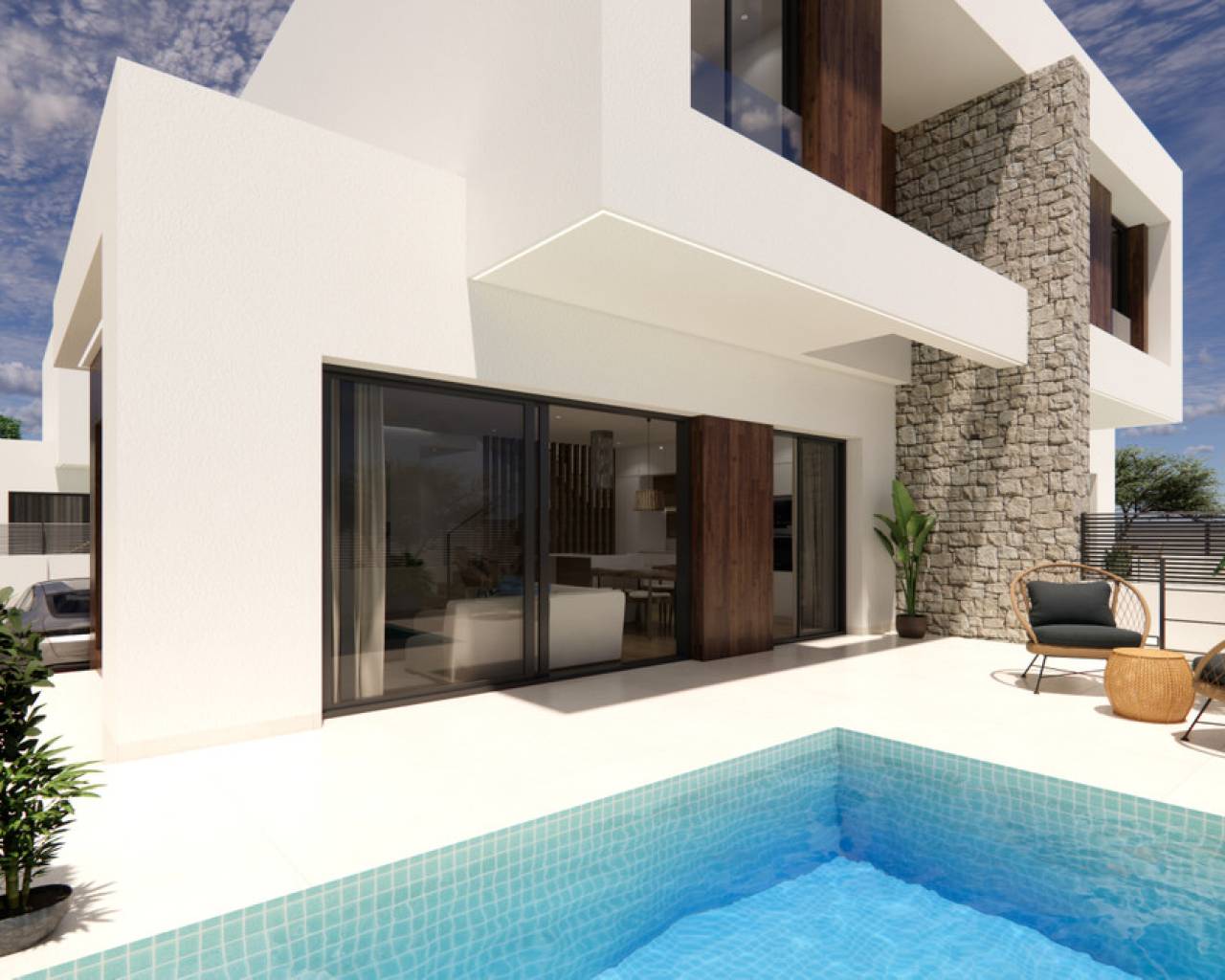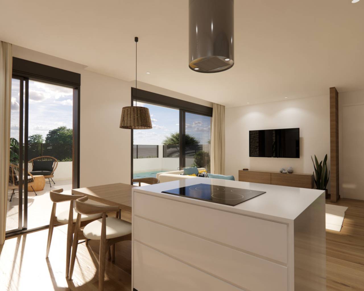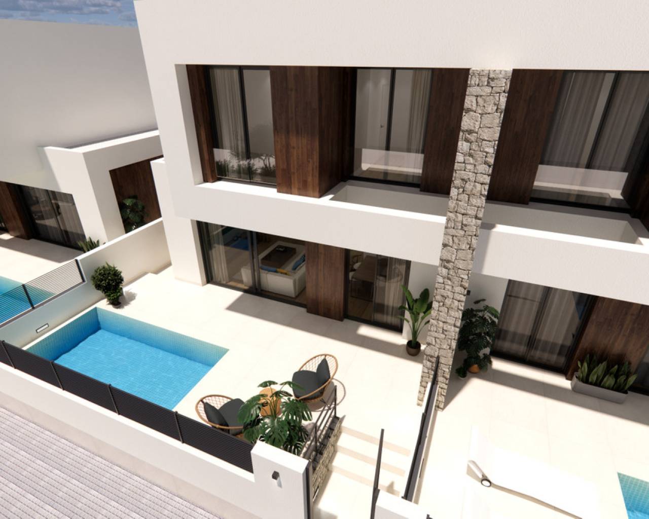 Las ocho casas están diseñadas con una base estructural robusta y moderna, con una losa de concreto reforzado y paredes de concreto reforzado para una mayor estabilidad y durabilidad. La estructura unidireccional, formada por pilares, vigas planas y viguetas de concreto reforzado, ofrece tanto fuerza como funcionalidad. El cerramiento de ladrillo hueco doble, equipado con una cámara interna y paneles aislantes, garantiza una excelente eficiencia energética y confort dentro de las viviendas. En el interior, las viviendas están bellamente acabadas con pintura lisa en las paredes y techos, creando una atmósfera elegante y contemporánea. El revestimiento exterior está adornado con piedra natural, proporcionando una fachada elegante y duradera. Los baños y cocinas cuentan con techos falsos de escayola, mientras que toda la propiedad está iluminada con una combinación de luz LED directa e indirecta, creando un ambiente acogedor. Las terrazas y las zonas comunes están pavimentadas con un suelo de cerámica de alta calidad antideslizante, ideal tanto para la seguridad como para el estilo. Los pisos interiores simulan un laminado de alta calidad con cerámica, lo que añade calidez y encanto en toda la casa. Los baños y la cocina están completados con azulejos de alta calidad, y las viviendas cuentan con carpintería exterior de aluminio lacado, que incluye tecnología de ruptura de puente térmico para un mejor aislamiento. Las ventanas de doble acristalamiento con cámaras de aire tipo CLIMALIT mejoran el rendimiento térmico. Las barandillas de los balcones están hechas de cerrajería de aluminio con vidrio de seguridad, asegurando tanto la seguridad como el atractivo estético. En el interior, la carpintería incluye una puerta de acceso blindada con una cerradura de alta seguridad, molduras lacadas y puertas de entrada lisas con manijas y cerraduras de latón, especialmente en los baños. El sistema de fontanería está diseñado con tuberías termoplásticas o aprobadas, suspendidas ordenadamente del techo para un aspecto más limpio. Los baños están equipados con accesorios sanitarios de alta calidad, incluyendo lavabos suspendidos, lavabos de encimera, platos de ducha y pantallas de vidrio. Las viviendas también cuentan con una instalación eléctrica interna, con enchufes para televisión en la sala de estar y los dormitorios, junto con provisiones para televisión por cable y antena. La cocina completamente amueblada viene con armarios altos y bajos, un fregadero y una encimera de porcelana o similar, lo que asegura tanto la funcionalidad como el lujo. Además, cada casa incluye una piscina privada de 4,50 m x 2,50 m, que ofrece un espacio refrescante para relajarse. Para un confort óptimo, las propiedades cuentan con un sistema aerotérmico para calefacción eficiente y producción de agua caliente. Además, hay una preinstalación para aire acondicionado por conductos, lo que permite un fácil control climático durante todo el año. Esta combinación de lujo, funcionalidad y confort hace que estas viviendas sean una opción ideal para vivir de manera moderna.