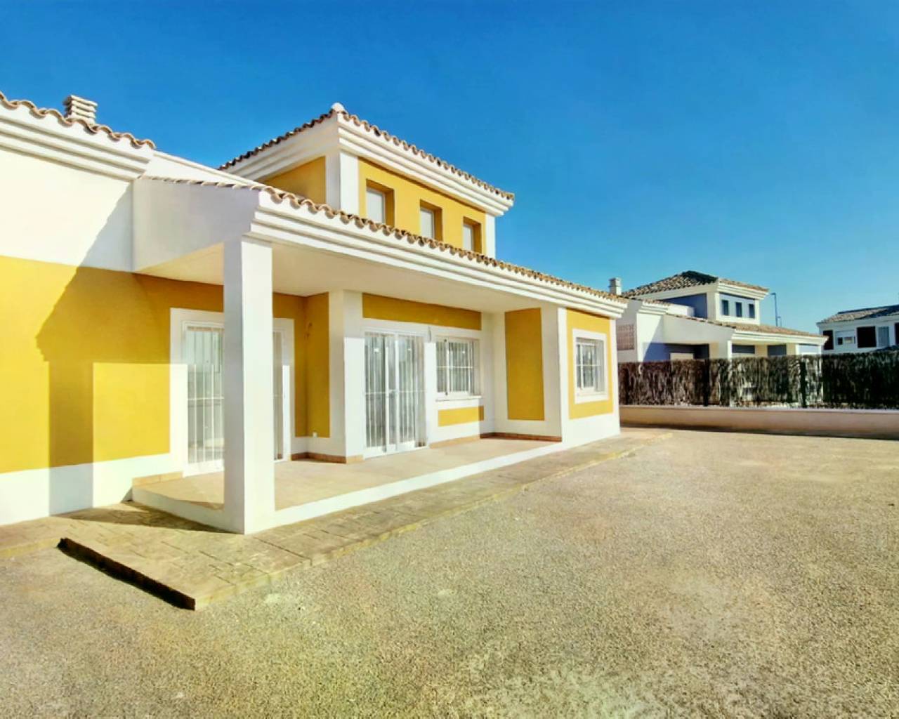 Este es un nuevo complejo residencial con 354 viviendas planificadas. De las primeras 50 villas independientes construidas, solo quedan 7 disponibles, pero aún podemos ofrecerte 3 modelos en diferentes colores. El modelo Villa Lavanda es una maravillosa villa independiente, toda en una sola planta de 112,21 m² construidos. Techo alto con 3 grandes ventanas (mira las fotos) en el salón (¡nuestros clientes dicen que tiene "un Flow", sea lo que sea que eso signifique!). Los terrenos para este modelo varían en tamaño de 553,64 a 555,06 m², y los precios también. Si prefieres algo más grande, tenemos otros dos modelos, Iris y Violeta, con dos plantas. El modelo Villa Iris, con 141,32 m² construidos, tiene 3 dormitorios (uno en la planta baja), 3 baños y 3 terrazas en la planta superior. Los terrenos para este modelo van de 531,38 m² a 580,79 m². El modelo Villa Violeta tiene 155,75 m² construidos, 4 dormitorios, 3 baños y 2 terrazas en la planta superior. Nos queda una unidad del modelo Violeta, con un terreno de 561,40 m². A estos precios siempre debes añadir un 10% de IVA. Los propietarios solo pagan 72€ al mes por gastos de comunidad, aunque se trata de una comunidad cerrada con seguridad las 24 horas, los 7 días de la semana. Te aseguro que tendrás una excelente relación calidad-precio. Estas villas están especialmente diseñadas para personas que desean vivir en un lugar bonito, tranquilo y seguro, con un clima seco y cálido todo el año, cerca de los principales servicios, ciudades y la costa. Son villas independientes con un terreno vallado de aproximadamente 600 m² en una comunidad cerrada, con control de acceso y servicio de conserjería 24 horas. Las villas están listas para entrar a vivir, pero los muebles de cocina y electrodomésticos no están incluidos porque la mayoría de nuestros clientes tienen sus propias preferencias. ¿Por qué conformarse con algo que no es exactamente lo que te gusta? La urbanización está ubicada a 10 minutos en coche del centro de Lorca, una ciudad antigua con muchas tradiciones y festividades y una oferta gastronómica que no creerás, y a 22 minutos de la pintoresca ciudad de Águilas, en la costa. Las playas de arena están a solo 25 minutos en coche, con docenas para elegir, incluso tenemos un Parque Natural (Puntas de Calnegre) a 35 minutos en coche para disfrutar del puro Mediterráneo. ¡Hay tanto que visitar que no sabría por dónde empezar! También hay un acceso muy conveniente a la autovía a solo 2 minutos de la entrada. El pequeño pueblo de Purias tiene todos los servicios principales, a solo 4 minutos en coche de tu hogar. Puedes encontrar varios supermercados, una panadería, restaurantes y cafeterías, comida para llevar, menú del día, peluquería, taller de coches, ferretería, centro médico, centro de jardinería, 3 bancos, 2 escuelas, y me encanta comprar en el típico mercado dominical, especialmente verduras directamente de La Huerta Murciana. ¡También hay un chiringuito para las cálidas noches de verano! A solo 8 minutos en coche tienes el centro comercial "Parque Almenara", un gran centro donde puedes encontrar todo lo que necesitas: ropa, comida, muebles, electrodomésticos, ¡y hasta un cine! Abierto los 7 días de la semana. En resumen, todo lo que necesitas para vivir muy cómodamente con un clima increíble sin las molestias de la costa en los meses de verano. Hay un centro médico público a 2 minutos en coche y un gran hospital en la ciudad de Lorca, por si acaso. También descubrirás que el costo de vida en esta parte de España es económico. Y a una hora o menos de los aeropuertos internacionales de Murcia y Almería, menos de dos horas a un tercero en Alicante, uno mucho más grande con destinos a todo el mundo. En Lorca hay una estación de autobuses y trenes. El tren de alta velocidad te llevará rápido a cualquier parte de España que desees visitar; pronto estará funcionando, ¡no puedo esperar! Por favor, visita nuestra web y dime qué te parece. Ten en cuenta que las villas tienen diferentes orientaciones y las calles están diseñadas con curvas agradables. Y si te falta alguna información, ¡solo dímelo!