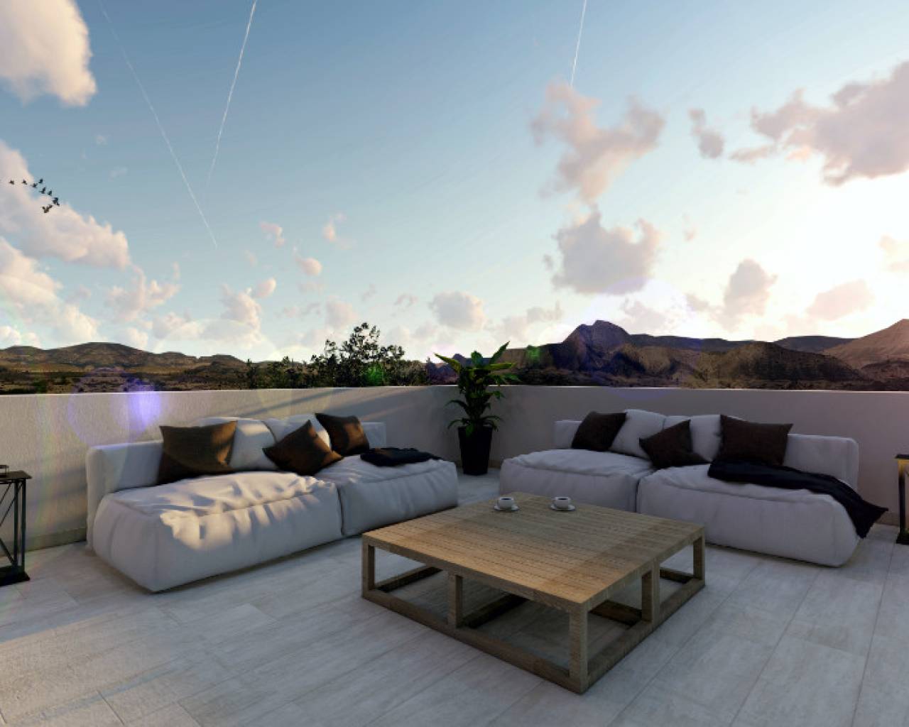 Un estilo de vida tranquilo en un mundo cambiante En los tiempos que cambian constantemente, encontrar el entorno adecuado para vivir es más importante que nunca. Nuestras viviendas ofrecen una oportunidad única de disfrutar de paz y tranquilidad, con espacios amplios, entornos naturales y un pequeño pueblo cercano para tus necesidades diarias, todo mientras estás a solo minutos de la vibrante Alicante y de la animada costa mediterránea. Construidas con diseño moderno y precios altamente competitivos, estas residencias ofrecen todo lo necesario para crear tu propio paraíso privado, con acabados cuidando hasta el último detalle. Disfruta de espacios de concepto abierto que combinan de forma fluida el salón, el comedor y la cocina con una elegante barra de desayuno. Los dormitorios principales cuentan con vestidores y elegantes baños en suite. En el exterior encontrarás grandes piscinas privadas con terrazas para tomar el sol, soláriums en la azotea y accesos con portones automáticos, entre muchas otras comodidades.