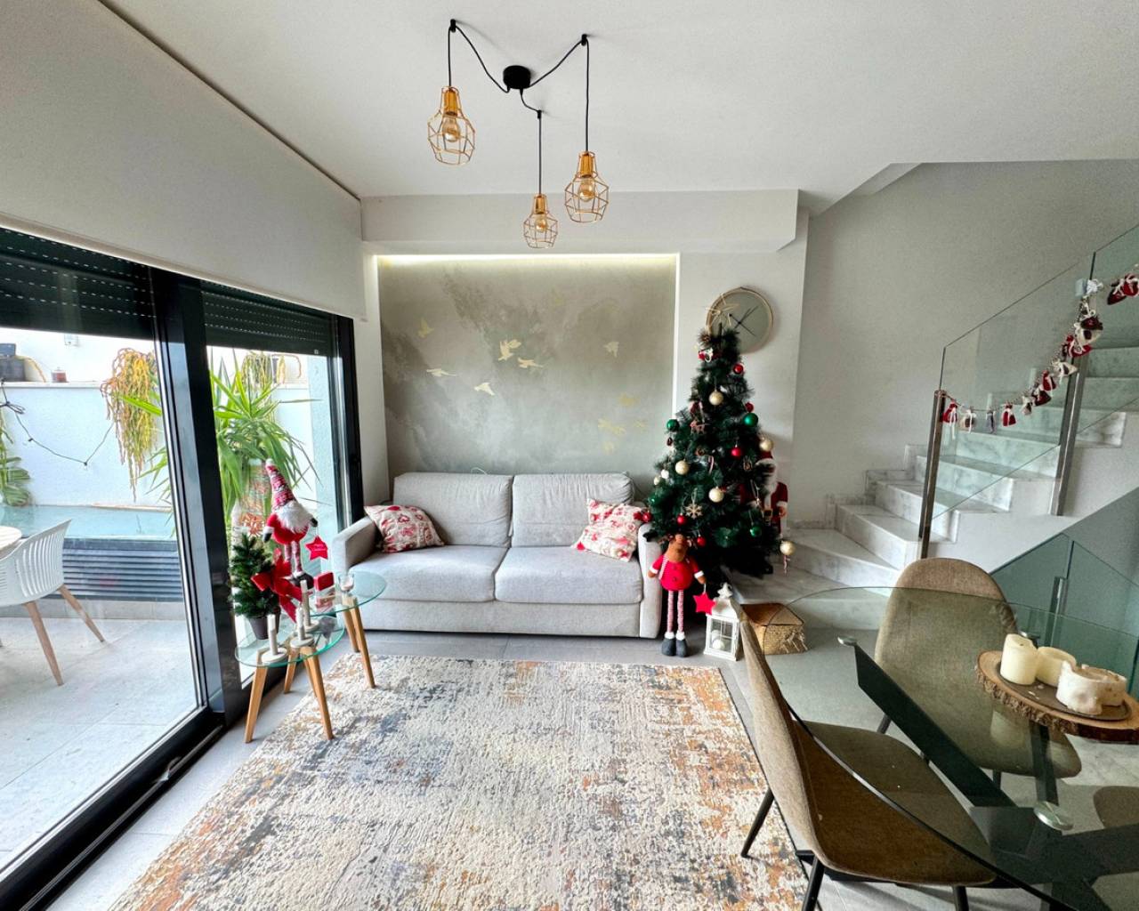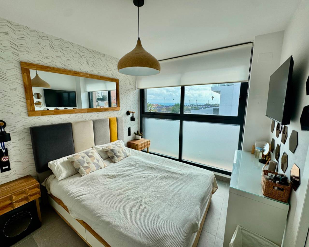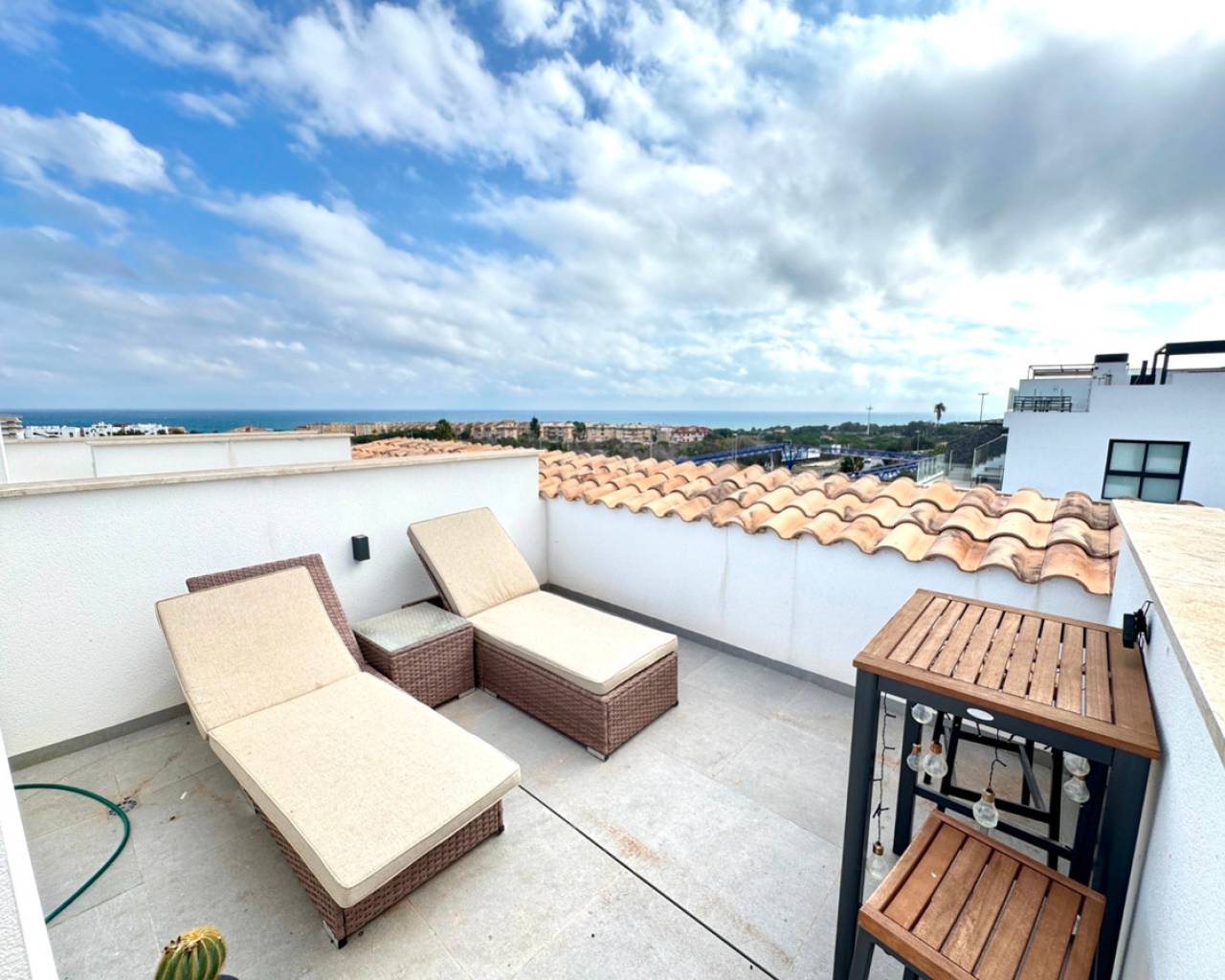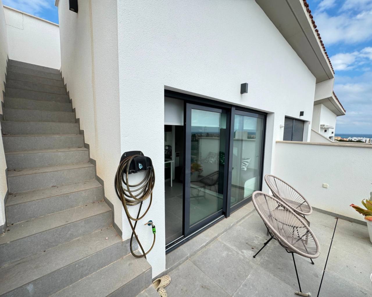 Presentamos este elegante adosado construido en 2023, diseñado para ofrecer comodidad, luminosidad y extraordinarias vistas al mar desde todas las plantas, excepto el sótano. Situado a tan solo 1 km de la playa y a 500 metros del centro de Guardamar del Segura, el inmueble goza de una ubicación privilegiada donde todos los servicios se encuentran a un corto paseo. Distribución de la vivienda: Sótano: amplio dormitorio con abundante luz natural y garaje privado con capacidad para dos vehículos. Planta baja: salón espacioso y luminoso, aseo y zona de lavandería/trastero perfectamente integrada. Primera planta: dos dormitorios confortables y un cuarto de baño completo. Segunda planta: dormitorio principal con acceso directo a una terraza privada. Azotea: magnífica terraza-solárium con orientación sur, ideal para disfrutar del sol durante todo el año y de vistas despejadas hacia el mar. La orientación sur garantiza luz natural durante todo el día, creando un ambiente cálido y acogedor. Gracias a su proximidad al mar y al centro urbano, esta propiedad es perfecta tanto como residencia habitual como para vacaciones.