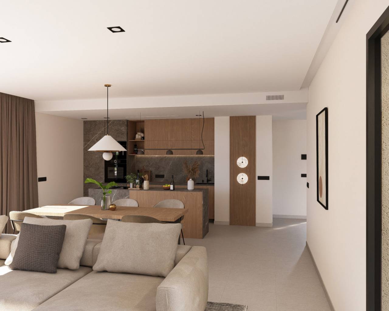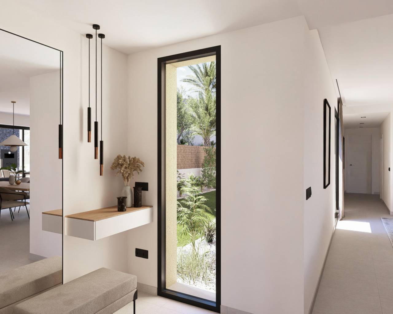 La luz en todas sus fases Al amanecer, la calidez del sol inunda cada rincón de cada habitación de la costa levantina. Los techos altos aportan amplitud y serenidad, confiriendo a cada estancia un ambiente elegante en consonancia con la arquitectura de la villa. Una casa familiar que se proyecta hacia el exterior. Donde los límites entre el interior y el exterior, la parte delantera y la trasera se suavizan. Diseñada para satisfacer las necesidades de convivencia y favorecer el disfrute de cada espacio. Vivir en un entorno natural nunca ha sido tan fácil. La arquitectura se ha diseñado para satisfacer las necesidades de las personas que viven en un hermoso campo de golf. Lasestancias ofrecen amplios espacios para vivir y crean una mezcla perfecta entre las villas y el entorno que las rodea, dando lugar a una simbiosis perfecta.