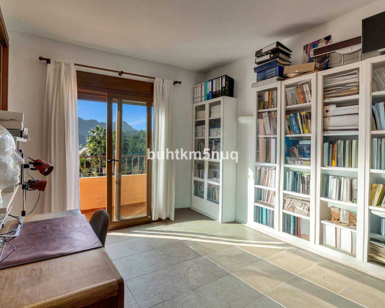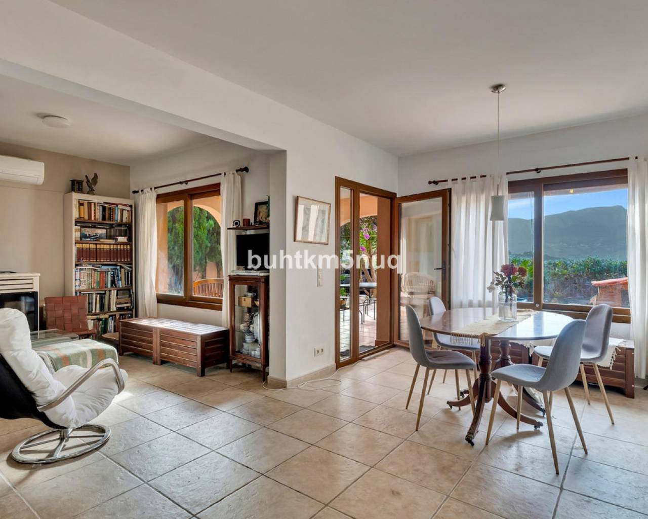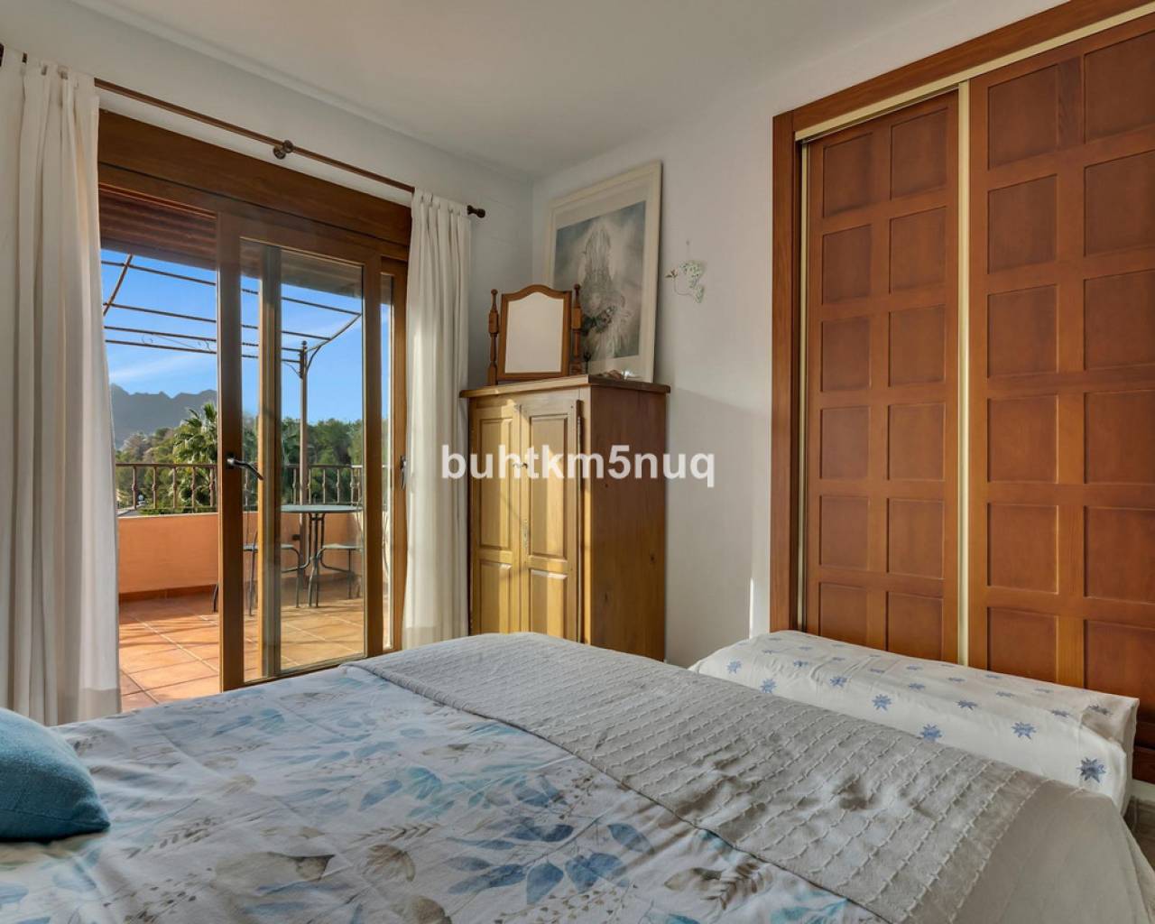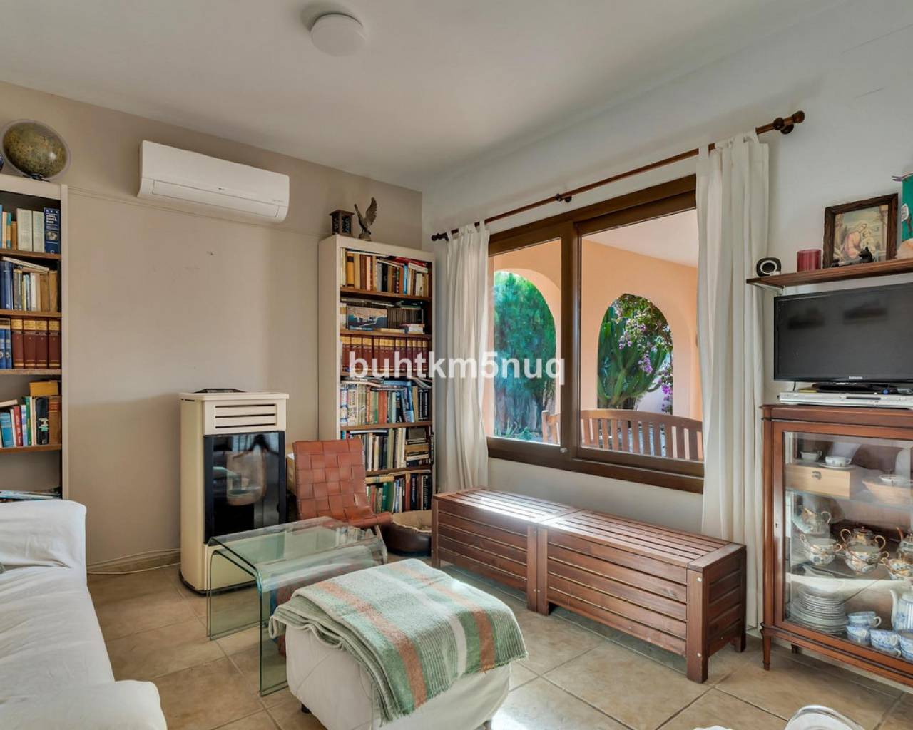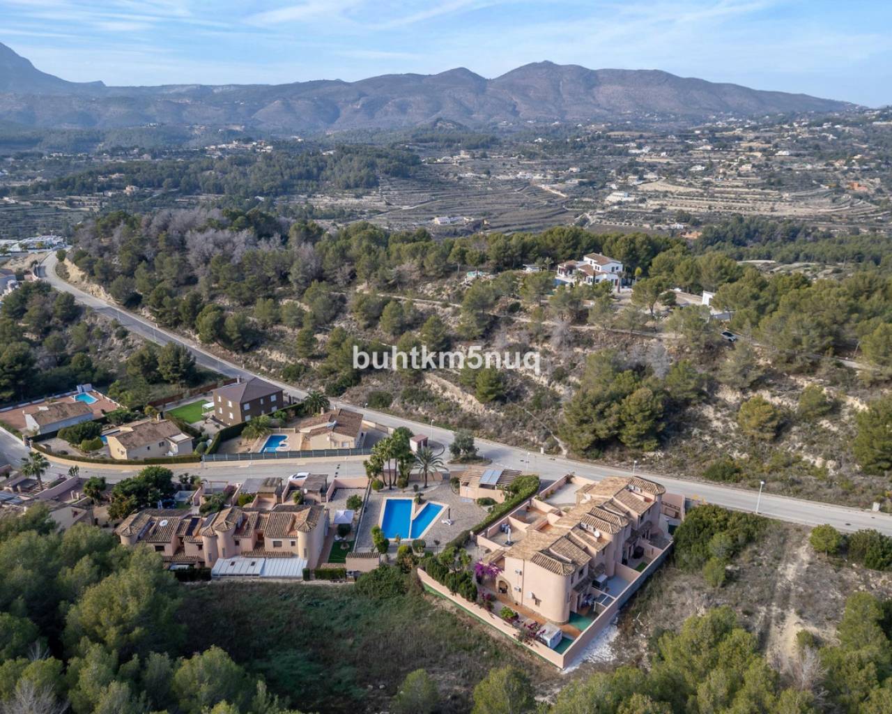 Acogedor adosado esquina con tres dormitorios, situado en una zona residencial tranquila y verde en Calpe. La propiedad forma parte de un pequeño y cuidado complejo con piscina comunitaria y cuenta con su propia pérgola.~La vivienda ofrece buenas y agradables características básicas, como doble acristalamiento, excelente orientación y una distribución cómoda y práctica. Gracias a su ubicación favorable, se puede disfrutar del sol durante todo el día y de unas preciosas vistas a la montaña, creando una sensación de vida relajada y agradable.~Con aproximadamente 90 m2 de superficie útil, varias terrazas y una parcela privada con jardín mediterráneo, esta es una casa encantadora para quienes buscan tranquilidad, espacio y comodidad, a pocos minutos en coche del centro y las playas de Calpe.