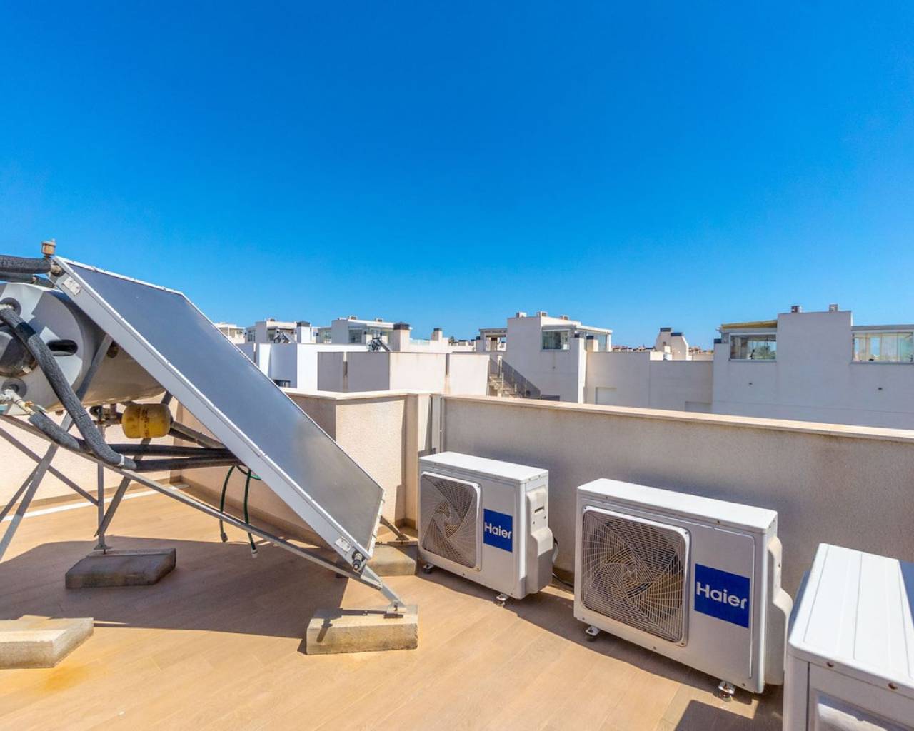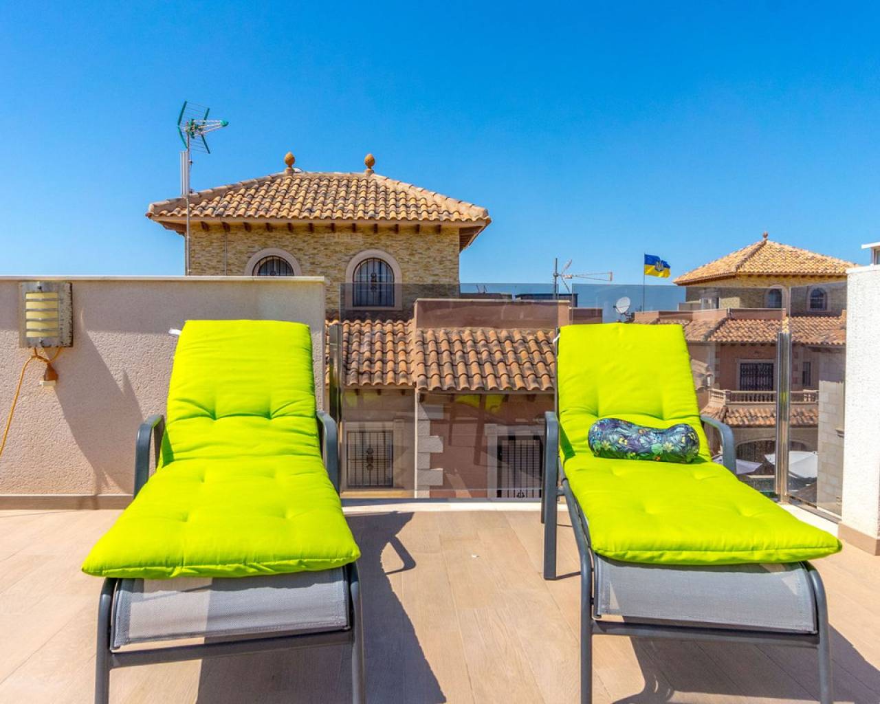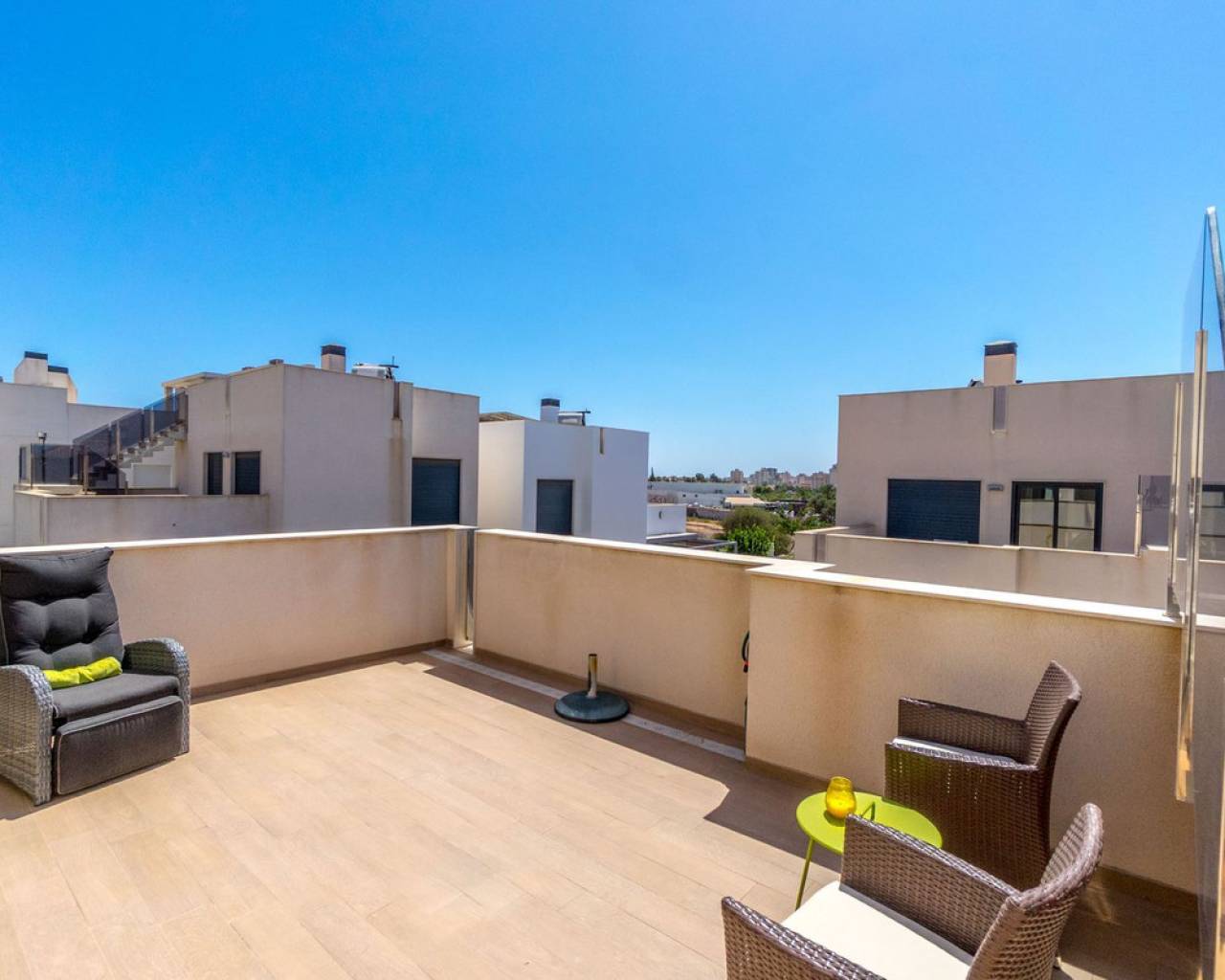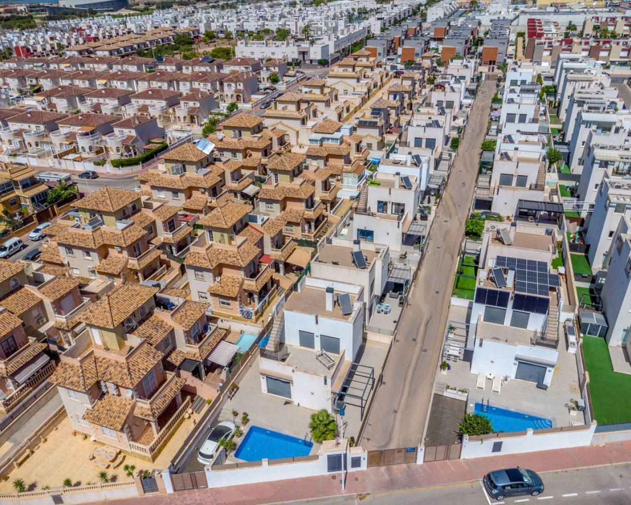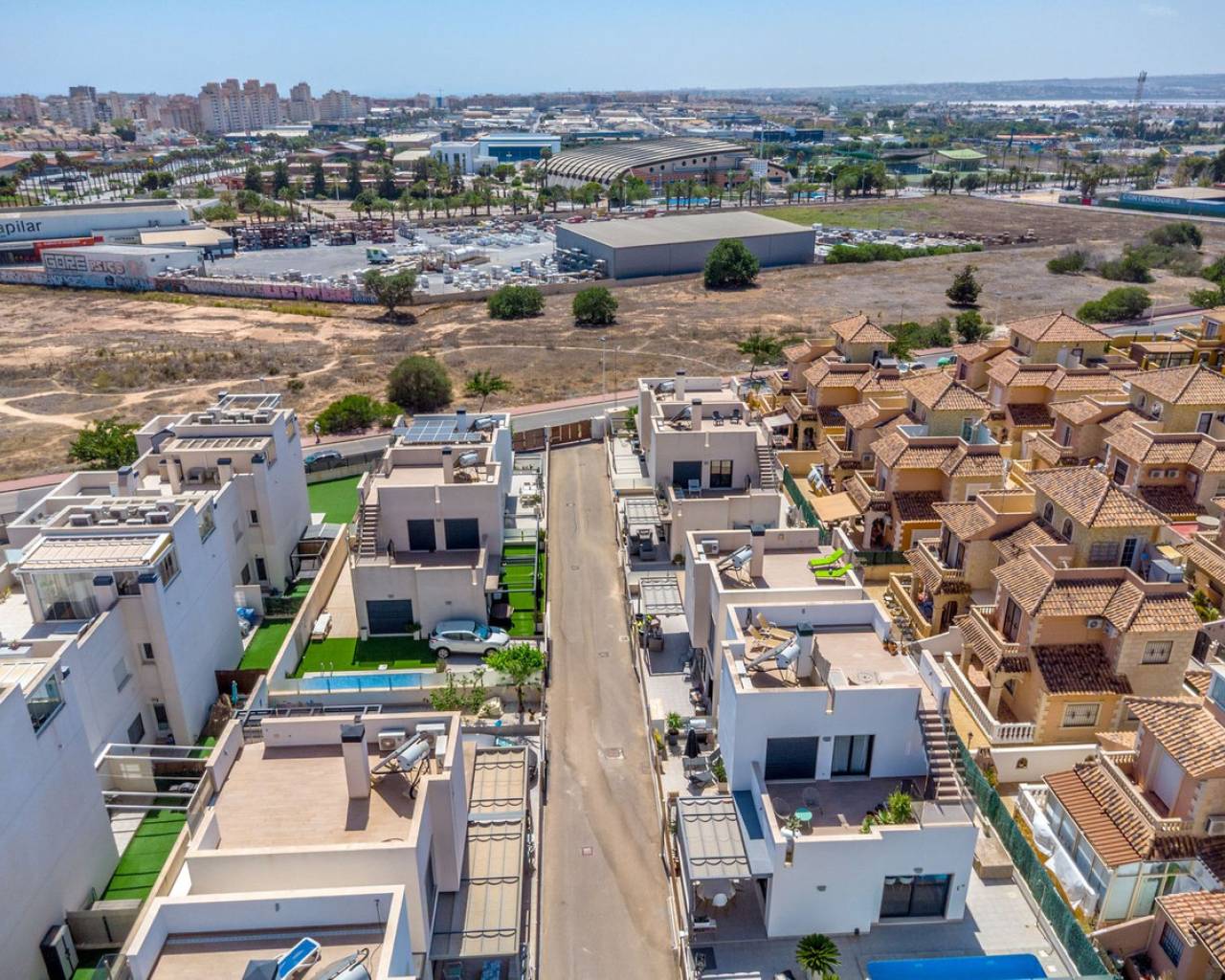Esta es realmente una hermosa villa moderna con 5 dormitorios y 3 baños, con una amplia parcela y una acogedora piscina privada en terraza, diseñada para la familia moderna. La vivienda se encuentra en una pequeña urbanización cerrada con tan solo 18 viviendas, construida en 2017. La comunidad de propietarios de esta urbanización autoriza alquileres, por lo que si buscas una vivienda que también puedas alquilar cuando no la utilices, esta es la elección perfecta. Al entrar en esta elegante casa, le recibirá una sala de estar de planta abierta, con grandes ventanales, una cocina abierta que también está totalmente equipada y con un generoso espacio de almacenamiento. En esta planta también encontramos un dormitorio con armario hecho a medida, un lujoso baño con ducha, y un lavadero muy práctico, con acceso directo al jardín detrás de la vivienda. En la planta superior hay otros dos dormitorios completos con armarios empotrados, un bonito baño con ducha y una gran y espaciosa terraza, desde esta terraza hay una escalera que sube a la hermosa terraza de la azotea, con excelentes vistas hacia la ciudad de Torrevieja y el conocido lago salado. Pero no se detiene ahí, también hay un sótano, con 2 dormitorios más espaciosos, un elegante baño con ducha y una gran sala de estar que actualmente sirve como sala de estar adicional. En la parcela hay una hermosa piscina, con una bomba de calor instalada si prefiere una temperatura agradable del agua también en invierno. Varias áreas al aire libre, aquí puede alejarse del sol o hacia él. La villa cuenta con comodidades modernas, como aire acondicionado de alta gama, un eficiente sistema de ventilación por conductos y persianas eléctricas automatizadas. Toda la planta principal cuenta con un sofisticado sistema domótico. Hay mosquiteras instaladas en el dormitorio principal y el baño de la segunda planta, en la puerta de entrada principal y en la gran puerta corredera de cristal de la segunda planta. La cocina y el baño de la primera planta cuentan con sistema de descalcificación y agua potable. El agua caliente se calienta eficientemente mediante paneles solares. La propiedad se vende completamente amueblada y equipada, lista para entrar a vivir. Aparcamiento en la parcela. A pocos minutos a pie encontrará una variedad de tiendas como supermercados, panaderías, ópticas, cafés, por nombrar algunos A 10-12 minutos a pie encontrará el conocido mercado de los viernes, el parque acuático y las grandes instalaciones deportivas, pero puede usar. Conexiones de autobús en la zona, que te llevan, entre otras cosas. centro de Torrevieja o playa de La Mata para los que no quieran caminar. Torrevieja Torrevieja es una ciudad de la provincia de Alicante, en la Comunidad Valenciana, España. La ciudad es un popular destino turístico situado a unos 40 minutos en coche de la metrópolis de Alicante y del aeropuerto. Torrevieja fue originalmente un pequeño pueblo de pescadores, y hoy es uno de los mayores productores de sal de Europa, Torrevieja ha sido llamada anteriormente la 'ciudad de la sal', pero en los últimos años la ciudad también ha sido nombrada 'ciudad deportiva', esto debido a los grandes estadios deportivos que se han construido en los últimos años. Como resultado de esta fantástica inversión, Torrevieja se convirtió en una de las cuatro ciudades anfitrionas durante el Campeonato Mundial de Balonmano Femenino 2021. Cuando vives en Torrevieja, te encuentras a poca distancia a pie de playas de arena blanca y alargada con el sello de 'bandera azul', como indicación, entre otras cosas, de la alta calidad del agua. En el área inmediata y a menudo 'justo afuera' de la puerta, encontrará una gran selección de tiendas locales, restaurantes, cafés, centros comerciales, parques verdes, el puerto y el paseo marítimo. Si está buscando un área con vida durante todo el año y un microclima saludable con 320 días de sol al año, esto podría ser para usted. Economía: Precio : 439.000€ Gastos comunes: unos 200€ al año IBI/Impuestos: 481,92 por año Póngase en contacto con nosotros hoy y le contaremos más.