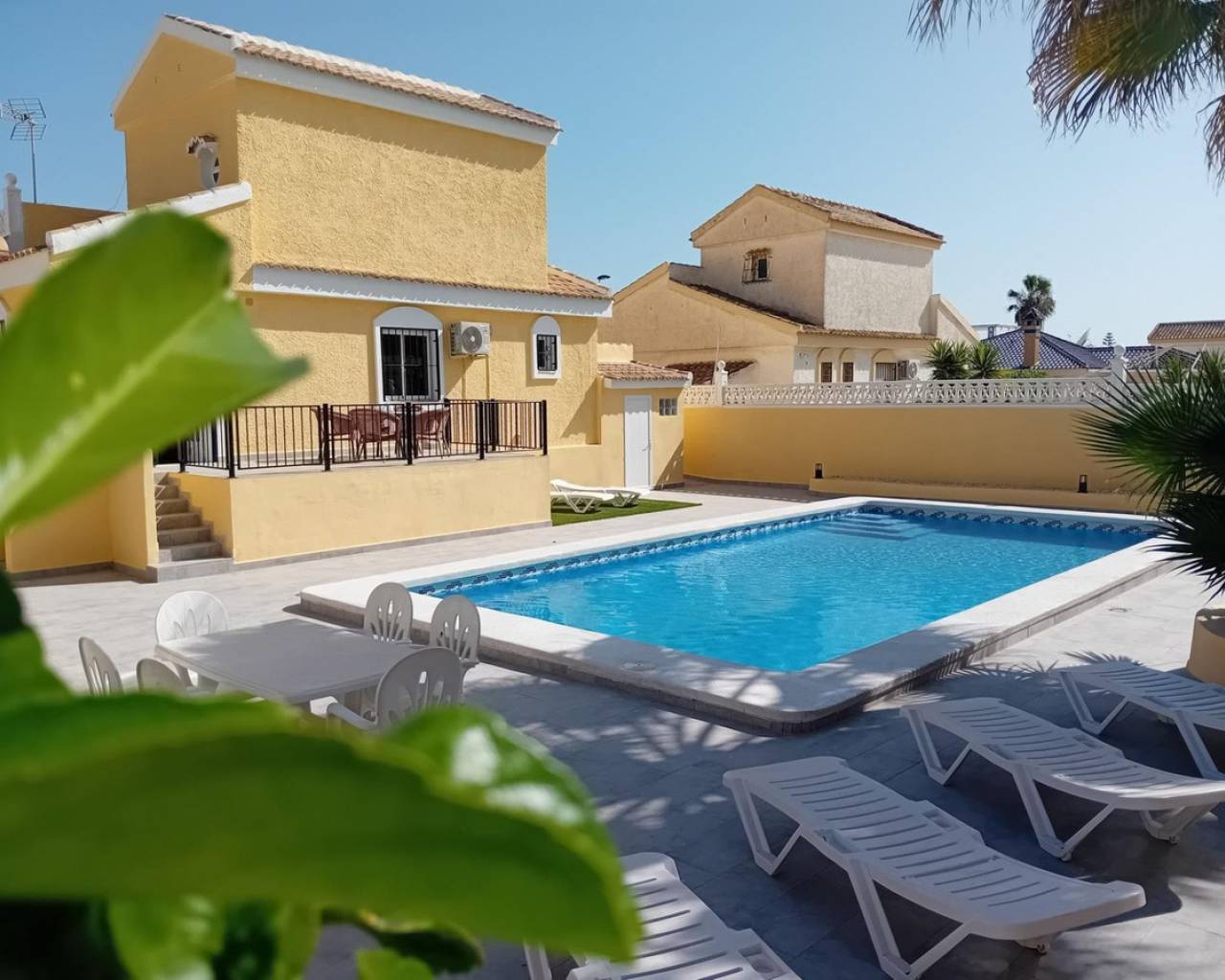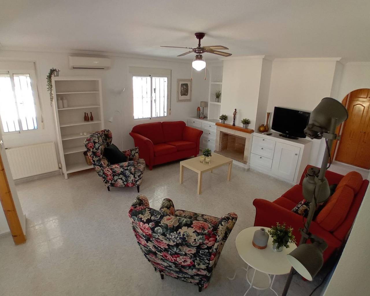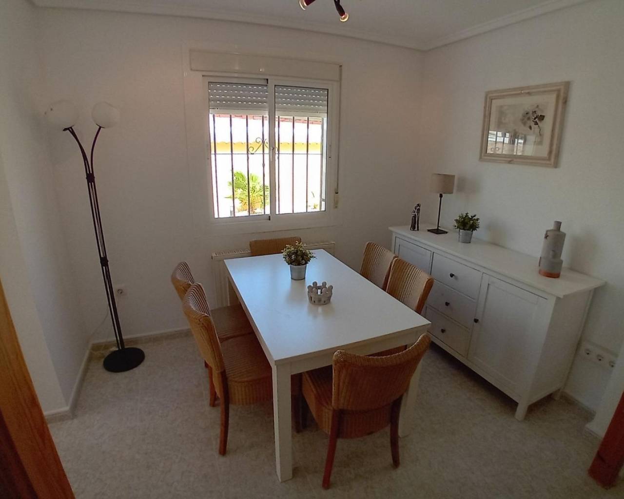 Bienvenido a un trocito de paraíso bañado por el sol en el corazón del codiciado Camposol: una encantadora villa que promete no solo un hogar, sino también un estilo de vida. Este impecable refugio de 3 dormitorios y 3 baños (uno de ellos un elegante baño exterior) es la personificación del encanto mediterráneo y la comodidad moderna. Ubicada en una generosa parcela de 624 m², la villa rezuma sofisticación, desde su flamante piscina privada hasta su amplia terraza soleada, perfecta para largas tardes de relax y glamurosas veladas bajo las estrellas. Ya sea para recibir invitados o disfrutar de la tranquilidad y la soledad, este refugio al aire libre ha sido meticulosamente diseñado para deleitar. Dos encantadoras dependencias amplían el potencial de esta casa. Una actualmente alberga un elegante bar y salón, ideal para fiestas privadas, estudio de yoga o futuro santuario de sauna. La segunda se encuentra en una terraza elevada con impresionantes vistas a la montaña, ideal para tomar un café por la mañana o un aperitivo al atardecer. Entre y descubra un mundo de confort y elegancia. La casa cuenta con tres amplios dormitorios y dos baños. La suite principal, en la primera planta, se abre a su propia terraza privada en la azotea, ofreciendo un remanso de paz para disfrutar del sol español. Un luminoso y acogedor invernadero añade un toque de versatilidad durante todo el año, bañado por la luz natural. La cocina, estilo galera, está estratégicamente ubicada justo antes de la zona de ocio al aire libre, y se abre directamente a la terraza con vistas a la resplandeciente piscina, ideal para cenar al aire libre y disfrutar de reuniones junto a la piscina. La practicidad y el lujo van de la mano. Una entrada con portón eléctrico ofrece aparcamiento seguro fuera de la calle, mientras que una dependencia multiusos ofrece amplio espacio de almacenamiento, un taller o incluso la sauna de sus sueños. La casa está equipada con aire acondicionado en el salón y el dormitorio principal, ventiladores de techo en toda la casa y calefacción central de gasóleo (actualmente sin usar, esperando su toque personal). Los paneles solares para la climatización de la piscina ya están instalados, combinando una vida ecológica con comodidad durante todo el año. Ubicación Simplemente inmejorable. A solo 2 minutos a pie del animado centro comercial del Sector B, encontrará tiendas, cafeterías, restaurantes y servicios esenciales a su alcance. Camposol es famoso por su vibrante y a la vez relajada comunidad, con un campo de golf de 18 hoyos, exuberantes paisajes y amables vecinos. Dispondrá de una amplia gama de servicios locales: dos concurridos centros comerciales ofrecen de todo, desde supermercados, bancos y farmacias hasta salones de belleza, ópticas e incluso clínicas veterinarias. ¿Tiene hambre? Elija entre una variada selección de cocina internacional: india, china, inglesa, búlgara y muchas más. ¿Le apetece salir por la noche? Abundan los bares animados, la música en vivo y los eventos sociales. Y si busca playa, está a solo 15 minutos de las doradas arenas de Bolnuevo y Puerto de Mazarrón, donde el mar brilla y el puerto deportivo le invita. El aeropuerto de Murcia-Corvera está a solo 30 minutos en coche, y el de Alicante a poco más de una hora, lo que convierte a esta villa en su escapada perfecta y placentera a España. Una joya única en Camposol, esta villa es más que una propiedad: es una invitación a vivir con estilo. Ya sea como residencia permanente, casa de vacaciones o como inversión, no se la pierda.