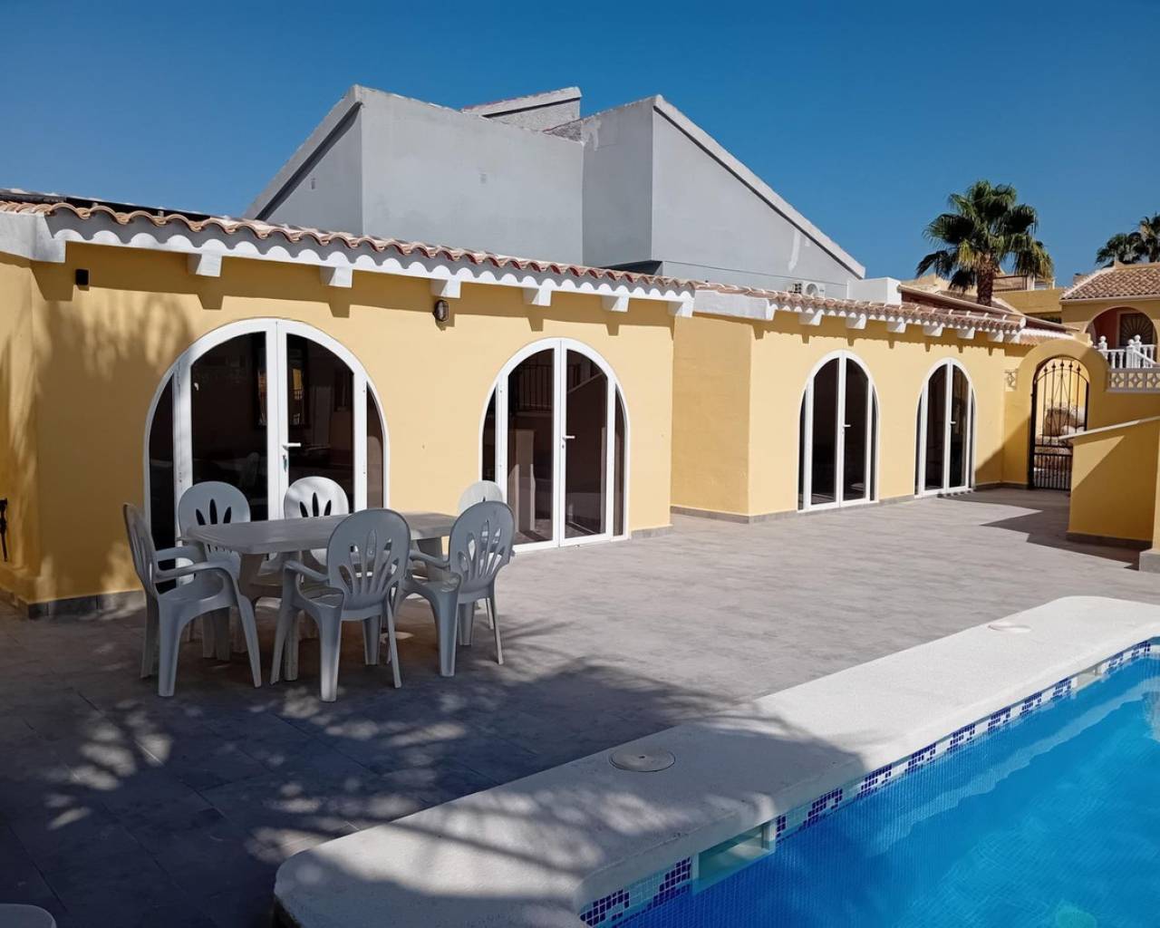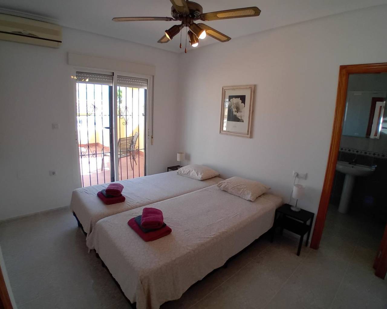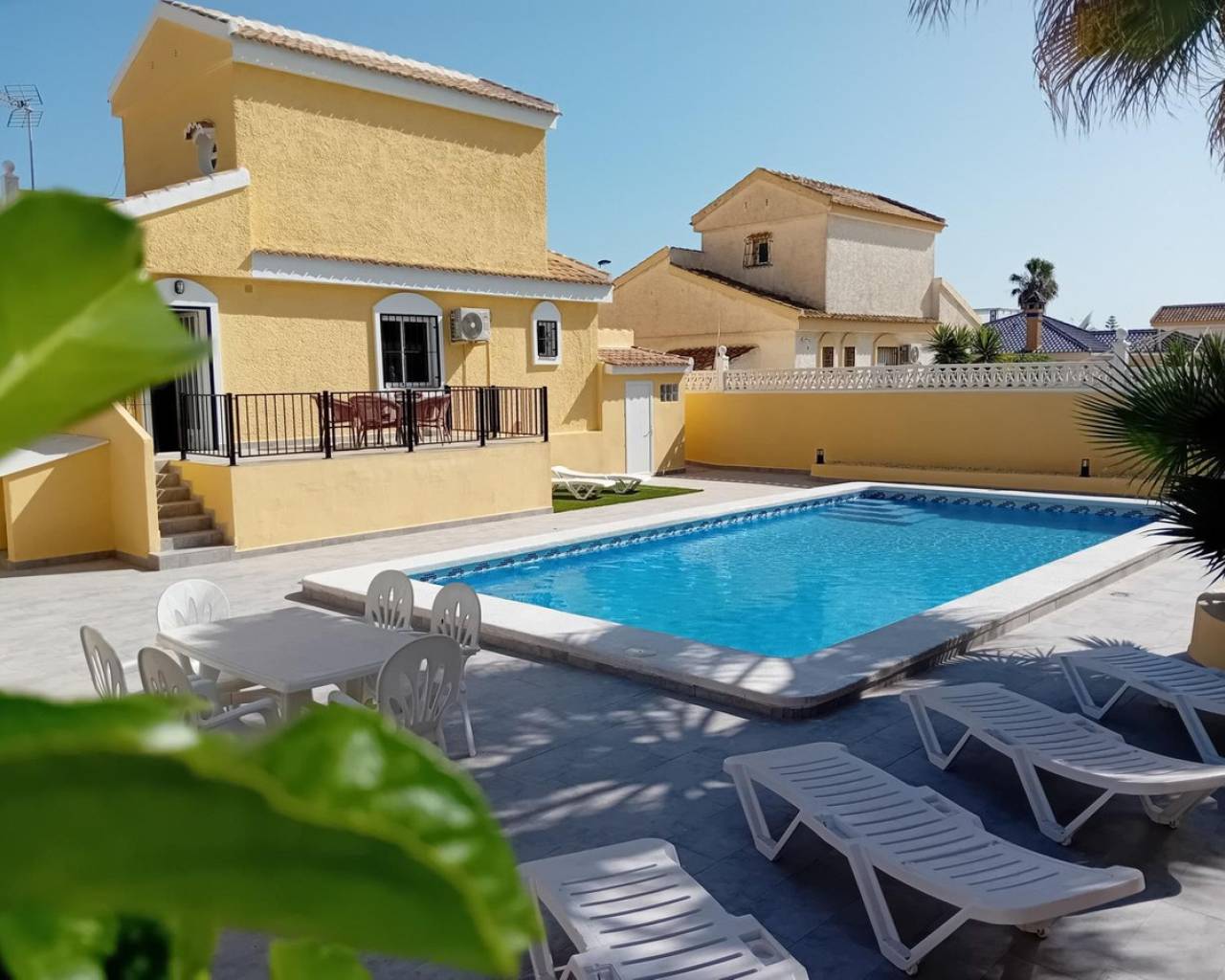 Bienvenido a un trocito de paraíso bañado por el sol en el corazón del codiciado Camposol: una encantadora villa que promete no solo un hogar, sino también un estilo de vida. Este impecable refugio de 3 dormitorios y 3 baños (uno de ellos un elegante baño exterior) es la personificación del encanto mediterráneo y la comodidad moderna. Ubicada en una generosa parcela de 624 m², la villa rezuma sofisticación, desde su flamante piscina privada hasta su amplia terraza soleada, perfecta para largas tardes de relax y glamurosas veladas bajo las estrellas. Ya sea para recibir invitados o disfrutar de la tranquilidad y la soledad, este refugio al aire libre ha sido meticulosamente diseñado para deleitar. Dos encantadoras dependencias amplían el potencial de esta casa. Una actualmente alberga un elegante bar y salón, ideal para fiestas privadas, estudio de yoga o futuro santuario de sauna. La segunda se encuentra en una terraza elevada con impresionantes vistas a la montaña, ideal para tomar un café por la mañana o un aperitivo al atardecer. Entre y descubra un mundo de confort y elegancia. La casa cuenta con tres amplios dormitorios y dos baños. La suite principal, en la primera planta, se abre a su propia terraza privada en la azotea, ofreciendo un remanso de paz para disfrutar del sol español. Un luminoso y acogedor invernadero añade un toque de versatilidad durante todo el año, bañado por la luz natural. La cocina, estilo galera, está estratégicamente ubicada justo antes de la zona de ocio al aire libre, y se abre directamente a la terraza con vistas a la resplandeciente piscina, ideal para cenar al aire libre y disfrutar de reuniones junto a la piscina. La practicidad y el lujo van de la mano. Una entrada con portón eléctrico ofrece aparcamiento seguro fuera de la calle, mientras que una dependencia multiusos ofrece amplio espacio de almacenamiento, un taller o incluso la sauna de sus sueños. La casa está equipada con aire acondicionado en el salón y el dormitorio principal, ventiladores de techo en toda la casa y calefacción central de gasóleo (actualmente sin usar, esperando su toque personal). Los paneles solares para la climatización de la piscina ya están instalados, combinando una vida ecológica con comodidad durante todo el año. Ubicación Simplemente inmejorable. A solo 2 minutos a pie del animado centro comercial del Sector B, encontrará tiendas, cafeterías, restaurantes y servicios esenciales a su alcance. Camposol es famoso por su vibrante y a la vez relajada comunidad, con un campo de golf de 18 hoyos, exuberantes paisajes y amables vecinos. Dispondrá de una amplia gama de servicios locales: dos concurridos centros comerciales ofrecen de todo, desde supermercados, bancos y farmacias hasta salones de belleza, ópticas e incluso clínicas veterinarias. ¿Tiene hambre? Elija entre una variada selección de cocina internacional: india, china, inglesa, búlgara y muchas más. ¿Le apetece salir por la noche? Abundan los bares animados, la música en vivo y los eventos sociales. Y si busca playa, está a solo 15 minutos de las doradas arenas de Bolnuevo y Puerto de Mazarrón, donde el mar brilla y el puerto deportivo le invita. El aeropuerto de Murcia-Corvera está a solo 30 minutos en coche, y el de Alicante a poco más de una hora, lo que convierte a esta villa en su escapada perfecta y placentera a España. Una joya única en Camposol, esta villa es más que una propiedad: es una invitación a vivir con estilo. Ya sea como residencia permanente, casa de vacaciones o como inversión, no se la pierda.