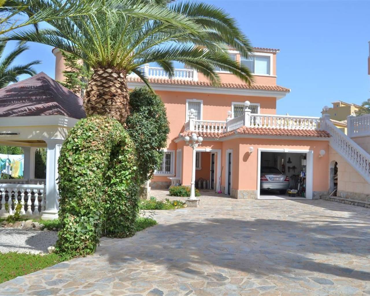 ¿Buscas una villa amplia con vistas inigualables al mar Mediterráneo? Esta espectacular propiedad de unos 460 m², ubicada en una amplia parcela llana y ajardinada de 3.800 m² en Calpe, lo tiene todo para convertirse en tu refugio soñado. Desde que atraviesas sus elegantes puertas automáticas, te recibe un jardín cuidado al detalle, con estanque, fuente, pérgola y un amplio garaje con espacio para varios vehículos. La villa combina a la perfección elegancia, confort y funcionalidad, y está equipada con todo lo necesario para disfrutarla durante todo el año. Distribuida en dos plantas, en la planta baja encontrarás tres dormitorios, uno de ellos una gran suite principal con baño privado que incluye bañera de hidromasaje, ducha independiente y aseo separado con bidé, además de dos baños más, una oficina y un pasillo central que conecta todas las estancias con acabados de mármol italiano. En la planta superior, la luz natural y los espacios abiertos te dan la bienvenida a un espectacular salón dividido en ambientes mediante arcos y columnas: zona de relax con chimenea y sofás de cuero, rincón de TV con acceso a balcón con vistas impresionantes, y un amplio comedor ideal para recibir invitados. La cocina, totalmente equipada y con despensa, da paso a un encantador dormitorio en suite con un diseño único, donde dormitorio y baño se integran a través de un elegante arco. Todo el nivel cuenta con un sistema de sonido de alta calidad para disfrutar de tu música favorita en cualquier espacio. Esta planta también dispone de un segundo salón y acceso a una gran terraza con vistas de ensueño a Calpe, el Peñón de Ifach y el mar. Además, incluye una oficina acristalada con vistas panorámicas, perfecta para trabajar desde casa en un entorno inspirador. La zona exterior es simplemente espectacular: una piscina de 13 x 6,5 m con una zona poco profunda ideal para niños, cocina de verano completamente equipada con barbacoa, espacio cubierto para comer al aire libre y un aseo con ducha. El lugar ideal para disfrutar del clima mediterráneo durante al menos nueve meses al año. Pero eso no es todo. Esta villa cuenta también con bodega, trasteros, gimnasio totalmente equipado y hasta una discoteca privada con luces controladas por música, altavoces profesionales y efectos especiales. Y para garantizar el máximo confort durante todo el año, dispone de aire acondicionado y calefacción por suelo radiante. Una propiedad única que ofrece lujo, privacidad, espacio y unas vistas que te enamorarán desde el primer momento. Llámenos para una visita o más información. Desde INMOBRES trabajamos para que encuentre la casa de sus sueños. Le enseñaremos esta propiedad si le interesa, o buscaremos para usted hasta encontrar lo que busca. ¡Después, nos encargaremos de todo el papeleo necesario hasta la entrega de las llaves!