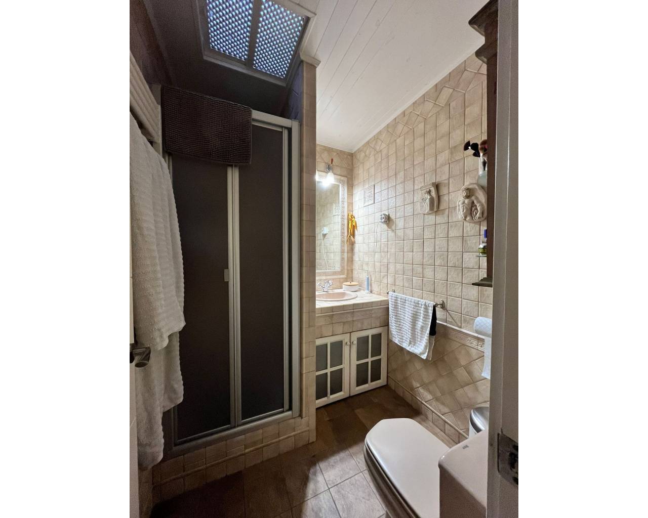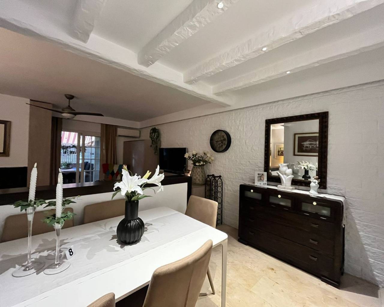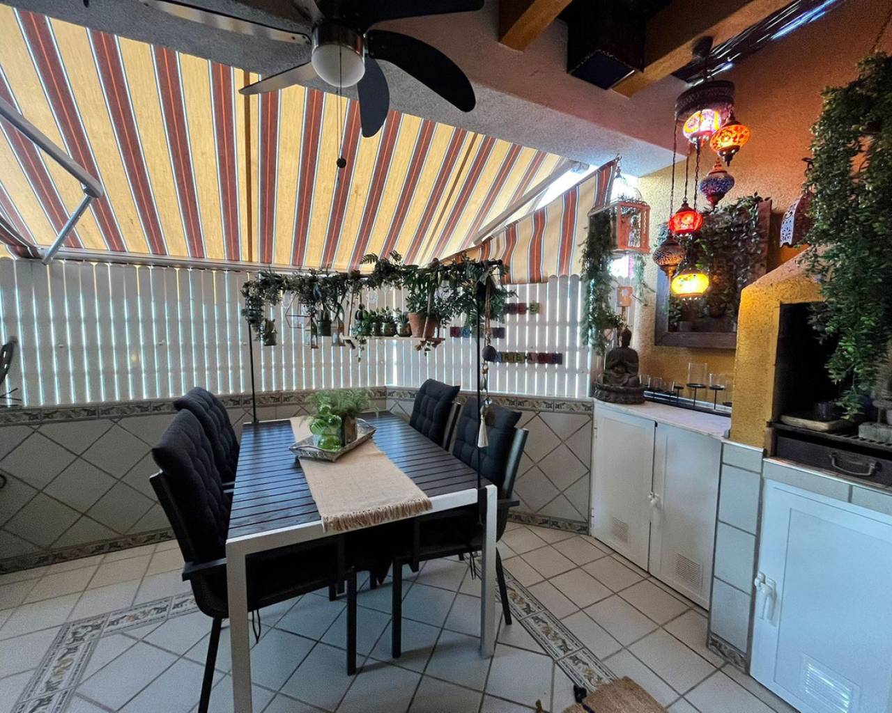 Ático de excepción en Torrevieja – a 750 m de la Playa del Cura Situado en Torrevieja, a tan solo 10 minutos de la famosa Playa del Cura, este magnífico ático goza de una ubicación privilegiada, muy cerca de todos los servicios: comercios, restaurantes, servicios y transporte. El apartamento destaca por sus amplios espacios, su excelente estado de conservación y su mobiliario de lujo. El gran salón-comedor con chimenea, distribuido en dos niveles, ofrece un espacio de vida muy amplio, luminoso y abierto, prolongado por un acogedor comedor. La cocina es independiente, totalmente equipada y amueblada con materiales de alta calidad. La vivienda dispone de tres dormitorios, uno de ellos actualmente acondicionado como vestidor con sofá-cama, ofreciendo una gran flexibilidad de uso. Dos cuartos de baño completos, cada uno con WC, lavabo y ducha, completan la zona de descanso. En el exterior, una amplísima terraza, parcialmente cubierta, constituye un auténtico espacio de vida adicional. Está equipada con toldos, barbacoa y calefacción mural, ideal para disfrutar del exterior durante todo el año. El apartamento está equipado con dos aparatos de aire acondicionado frío/calor, un sistema de filtración de agua antical para toda la vivienda y un sistema de ósmosis para el agua potable. El termo eléctrico de última generación fue instalado en 2025. La cocina está totalmente equipada: puertas de haya, encimeras y salpicaderos de Silestone, frigorífico, congelador, horno, microondas y placa vitrocerámica. La lavadora y la secadora están instaladas en la terraza en un armario dedicado. La vivienda dispone además de instalación de TV centralizada con antena parabólica individual, sistema de alarma, ventiladores de techo en dos dormitorios, el salón y la terraza, así como una ducha con grifería termostática en el baño principal. La propiedad se vende parcialmente amueblada, incluyendo los muebles del salón, el mobiliario del dormitorio principal, el sofá-cama del dormitorio/vestidor, la cama del segundo dormitorio, la mesa y las sillas de la cocina, así como el mobiliario de la terraza. Un ático único en el mercado, que combina confort, calidad de acabados y una ubicación ideal a pocos minutos del mar.