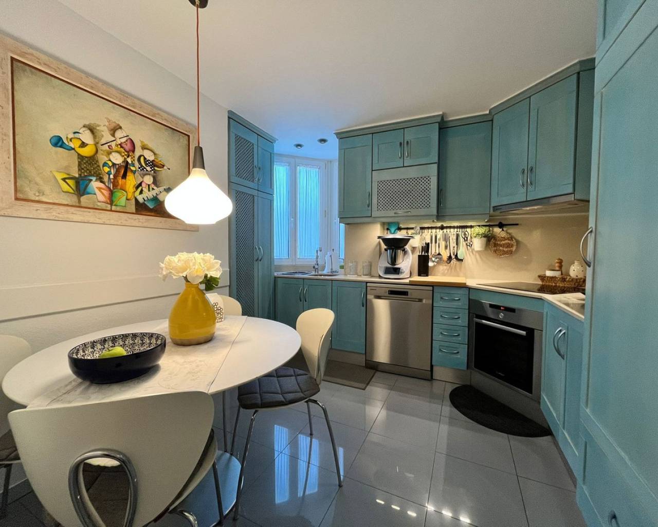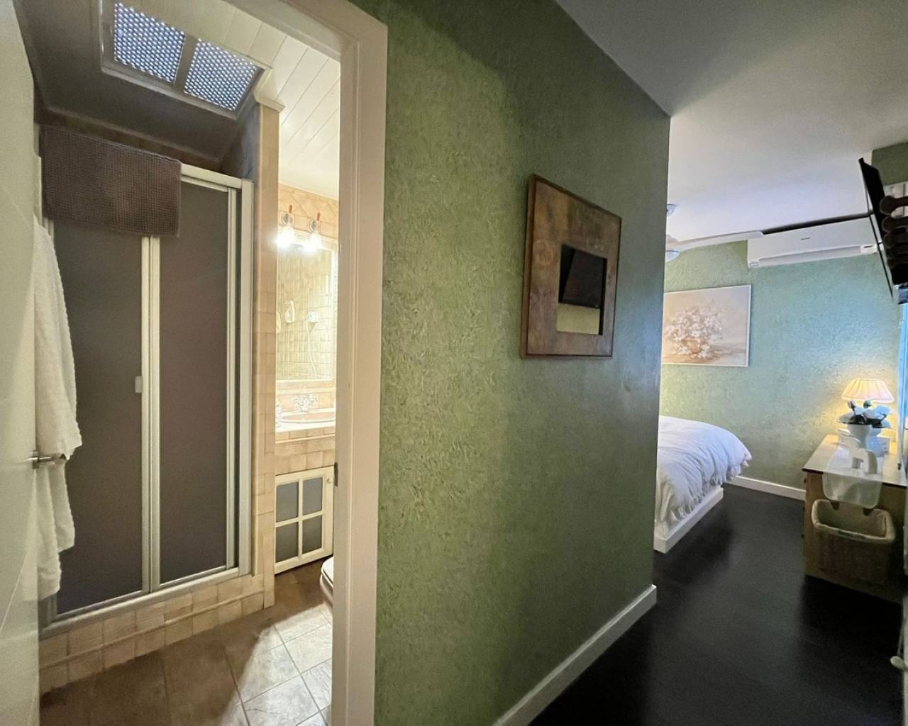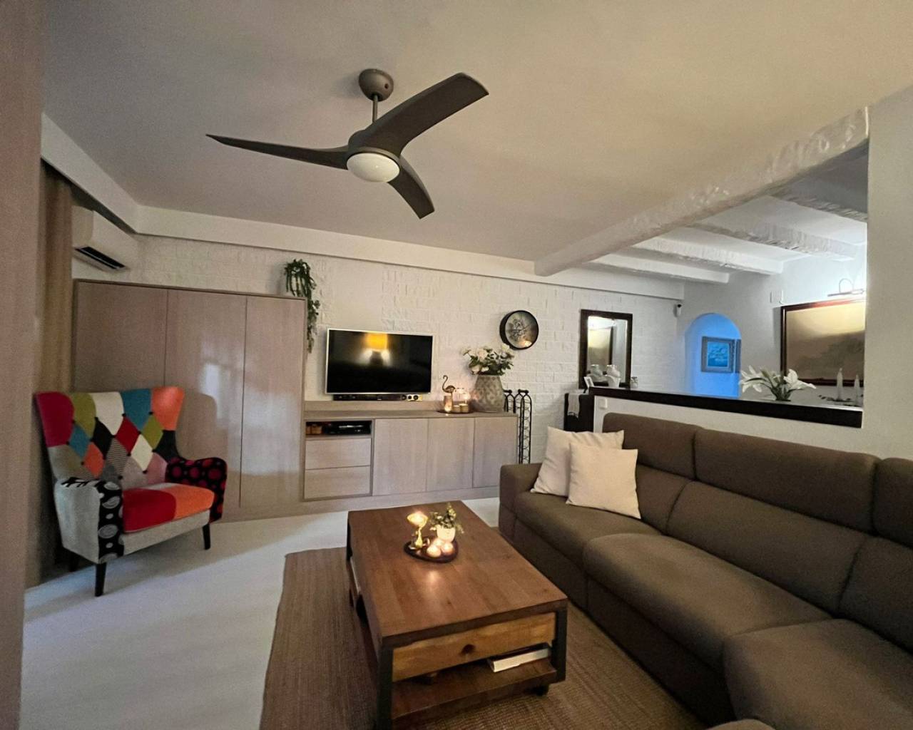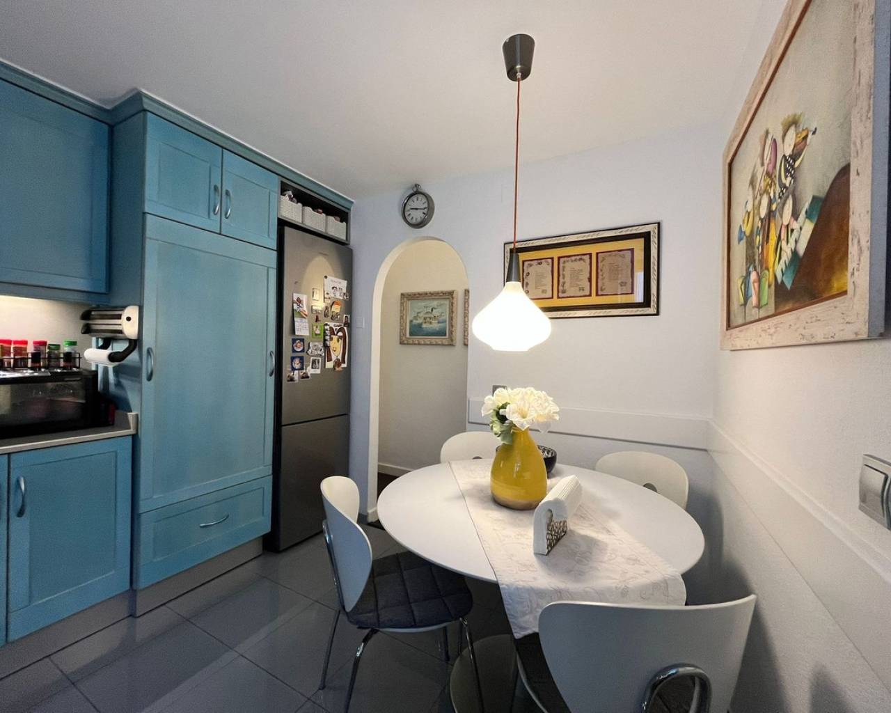 Ático de excepción en Torrevieja – a 750 m de la Playa del Cura Situado en Torrevieja, a tan solo 10 minutos de la famosa Playa del Cura, este magnífico ático goza de una ubicación privilegiada, muy cerca de todos los servicios: comercios, restaurantes, servicios y transporte. El apartamento destaca por sus amplios espacios, su excelente estado de conservación y su mobiliario de lujo. El gran salón-comedor con chimenea, distribuido en dos niveles, ofrece un espacio de vida muy amplio, luminoso y abierto, prolongado por un acogedor comedor. La cocina es independiente, totalmente equipada y amueblada con materiales de alta calidad. La vivienda dispone de tres dormitorios, uno de ellos actualmente acondicionado como vestidor con sofá-cama, ofreciendo una gran flexibilidad de uso. Dos cuartos de baño completos, cada uno con WC, lavabo y ducha, completan la zona de descanso. En el exterior, una amplísima terraza, parcialmente cubierta, constituye un auténtico espacio de vida adicional. Está equipada con toldos, barbacoa y calefacción mural, ideal para disfrutar del exterior durante todo el año. El apartamento está equipado con dos aparatos de aire acondicionado frío/calor, un sistema de filtración de agua antical para toda la vivienda y un sistema de ósmosis para el agua potable. El termo eléctrico de última generación fue instalado en 2025. La cocina está totalmente equipada: puertas de haya, encimeras y salpicaderos de Silestone, frigorífico, congelador, horno, microondas y placa vitrocerámica. La lavadora y la secadora están instaladas en la terraza en un armario dedicado. La vivienda dispone además de instalación de TV centralizada con antena parabólica individual, sistema de alarma, ventiladores de techo en dos dormitorios, el salón y la terraza, así como una ducha con grifería termostática en el baño principal. La propiedad se vende parcialmente amueblada, incluyendo los muebles del salón, el mobiliario del dormitorio principal, el sofá-cama del dormitorio/vestidor, la cama del segundo dormitorio, la mesa y las sillas de la cocina, así como el mobiliario de la terraza. Un ático único en el mercado, que combina confort, calidad de acabados y una ubicación ideal a pocos minutos del mar.