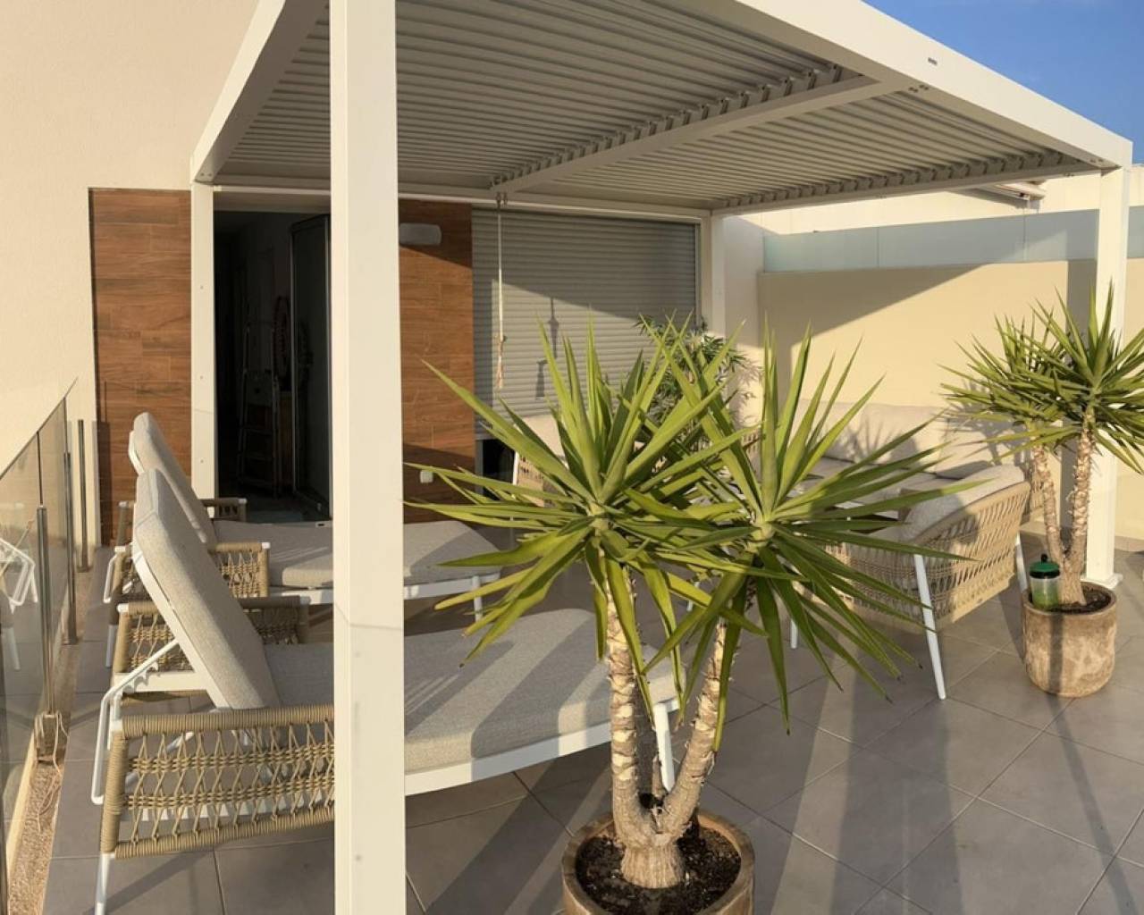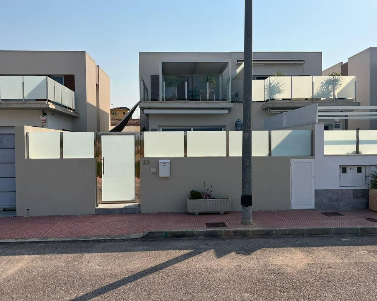 Descubra esta espectacular villa contemporánea, llena de luz natural, orientada al sur y con piscina privada (2,80 m x 5,50 m), situada en la cotizada zona de Daya Vieja, a tan solo 3 minutos de Rojales y San Fulgencio. Totalmente amueblada con mobiliario de alta gama y diseño cuidado, esta villa pareada destaca desde el primer momento por su ambiente elegante y acogedor. Cuenta con 3 amplios dormitorios, 2 baños y 1 aseo independiente, diseñados para ofrecer el máximo confort. El corazón de la vivienda es un espacio abierto, luminoso y armonioso, donde la cocina moderna se integra perfectamente con el salón. Los grandes ventanales ofrecen vistas directas a la piscina y a la zona de estar exterior, creando una conexión ideal entre el interior y el exterior, perfecta para disfrutar del día a día o recibir invitados bajo el sol español. Todos los dormitorios disponen de armarios empotrados con amplio espacio de almacenamiento, mientras que la climatización garantiza un confort absoluto durante todo el año. Desde la cocina, un pasillo conduce a un dormitorio de invitados con baño en suite, seguido de un baño adicional para invitados. En la planta superior se encuentran dos dormitorios principales y un baño. Al final del pasillo, el acceso al balcón delantero descubre un auténtico espacio de relax, equipado con un toldo bioclimático retráctil, ideal para crear un salón exterior cómodo e íntimo. Decorada con gusto tanto en el interior como en el exterior, esta villa lista para entrar a vivir combina elegancia, luminosidad y calidad en los acabados. Una oportunidad única como vivienda habitual, residencia vacacional o inversión de alto nivel.