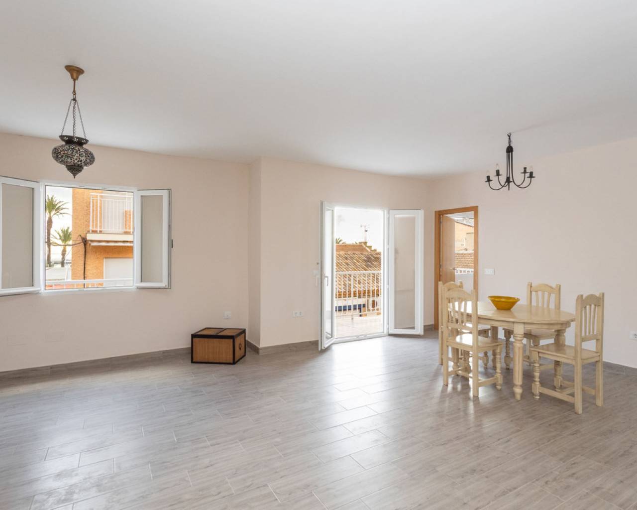 Apartamento recién reformado con dos terrazas cerca de la playa de La Concha Le damos la bienvenida a este apartamento recién reformado, con una ubicación privilegiada en la popular zona de Los Alcázares. El apartamento consta de dos dormitorios, un baño y un amplio salón-cocina de planta abierta. Además, dispone de dos agradables terrazas con espacio para mobiliario de exterior o una zona de estar. El salón tiene un ambiente acogedor, con buena iluminación y espacio suficiente tanto para una zona de estar como para un comedor. La cocina, integrada en el salón, cuenta con buen espacio de almacenamiento y encimeras. Dos dormitorios con luz agradable; las habitaciones tienen espacio para camas y mesitas de noche. Baño moderno totalmente alicatado, equipado con inodoro, lavabo con inodoro, bidé y ducha. Ventana para luz y ventilación. Aquí vivirás cerca del Mar Menor, de preciosas playas y de una gran variedad de tiendas, restaurantes y cafeterías. Para los aficionados al golf, hay varios campos bien cuidados en las inmediaciones. Las ciudades más grandes de Murcia, Cartagena y Torrevieja son fácilmente accesibles en coche. Póngase en contacto con nosotros para obtener más información o para reservar una visita. Por supuesto, también realizamos visitas virtuales si no puede asistir en persona.