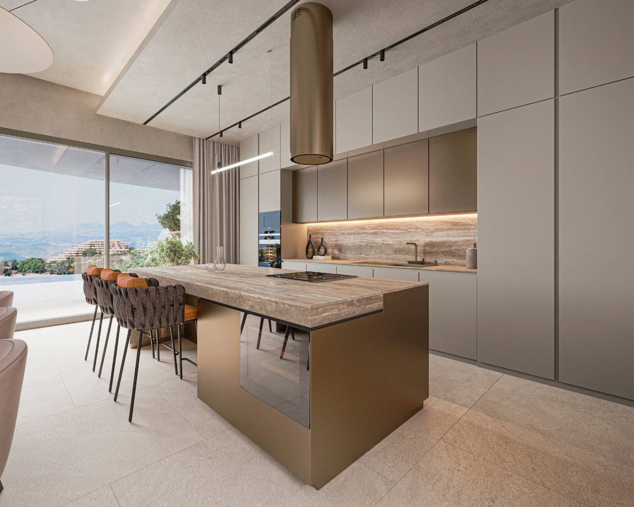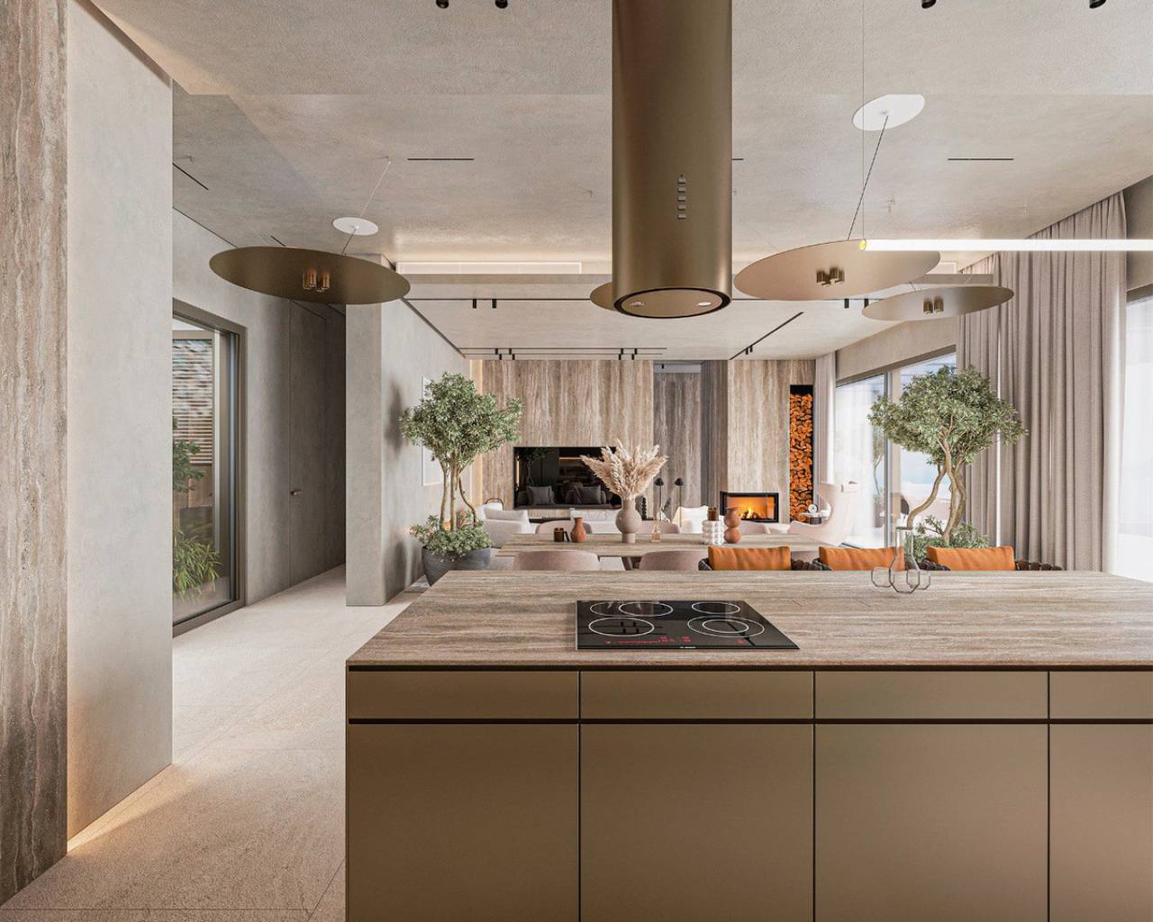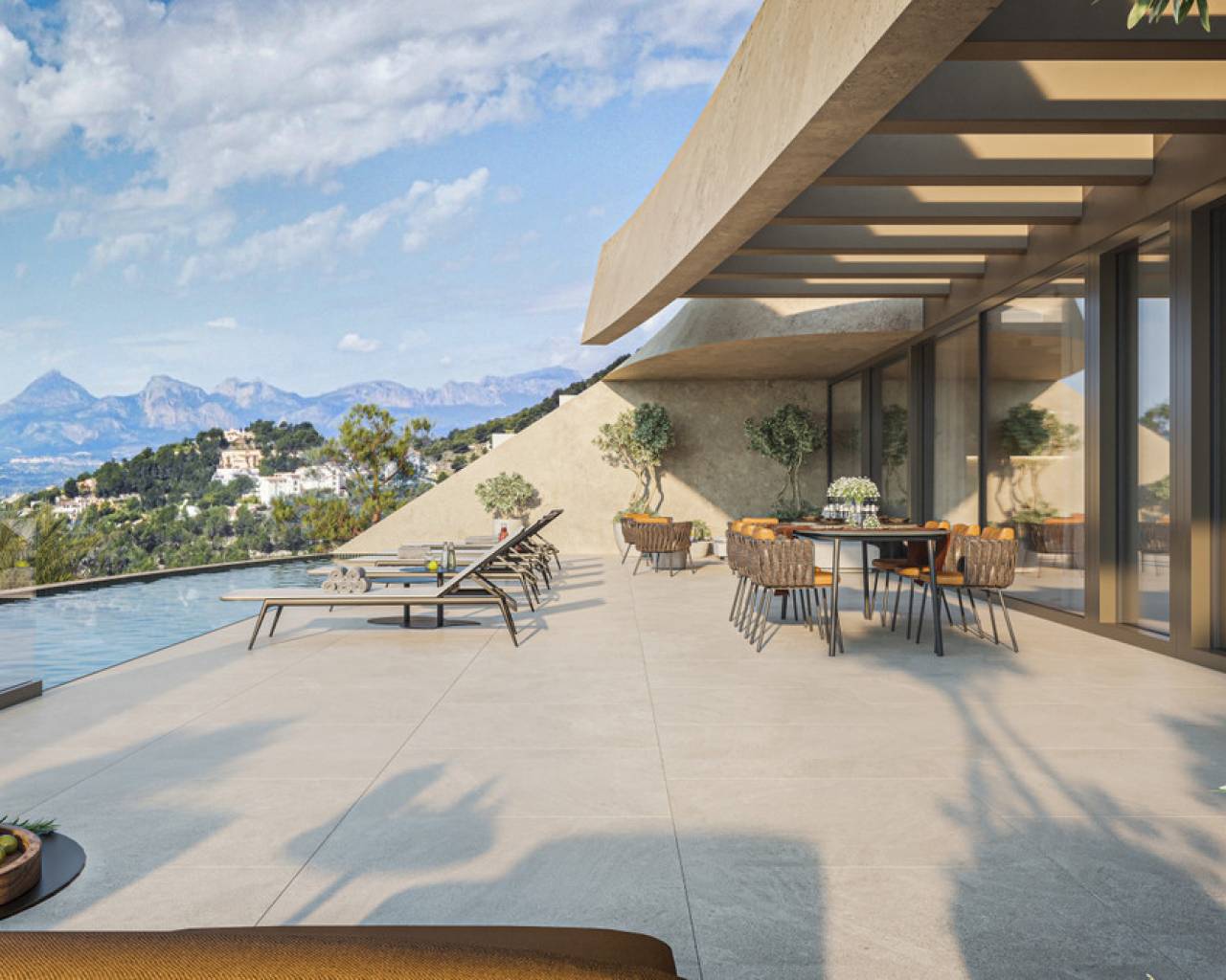 Se trata de una villa moderna de nueva construcción ubicada en la prestigiosa urbanización Altea Hills. Esta lujosa propiedad ofrece impresionantes vistas panorámicas al mar Mediterráneo y a las montañas que la rodean, brindando un entorno tranquilo y pintoresco. La villa se distribuye cuidadosamente en tres niveles, cada uno diseñado con atención al detalle. La zona de estar de planta abierta integra a la perfección el salón, el comedor y una cocina de diseño totalmente equipada, creando un espacio ideal para el confort y el entretenimiento. Al salir al exterior, se puede disfrutar de jardines paisajísticos y varias terrazas con amplias zonas para relajarse al aire libre. El elemento central es la espectacular piscina infinita, que parece fundirse con el horizonte, ofreciendo el lugar perfecto para refrescarse y disfrutar del sol mediterráneo.