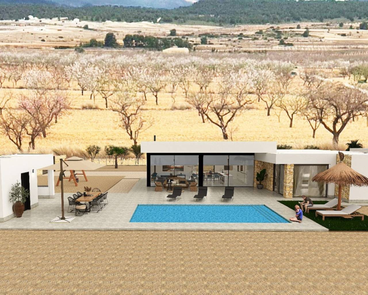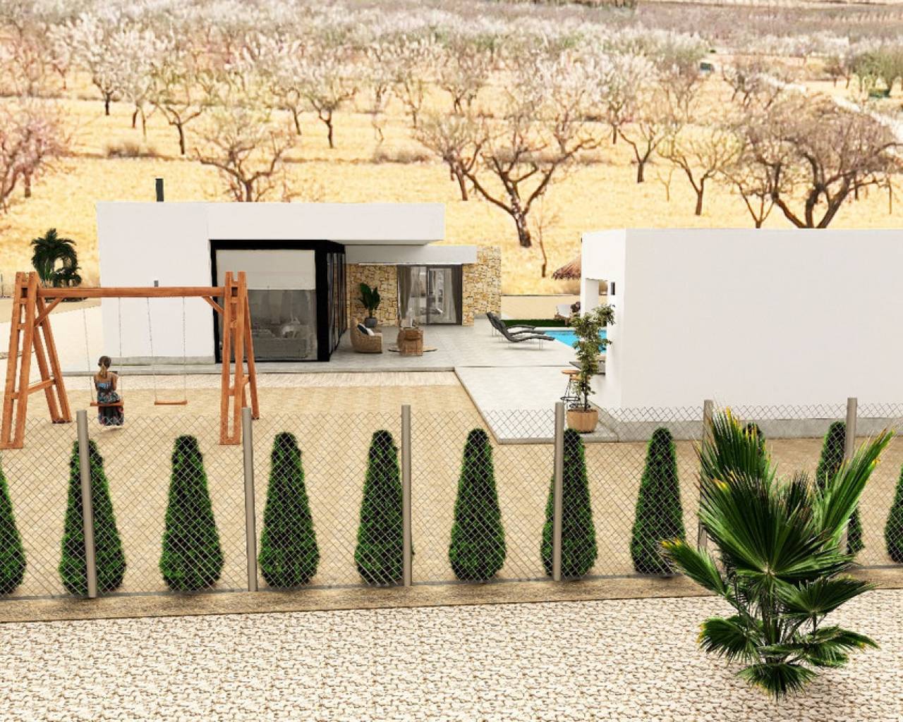 TU HOGAR SOÑADO Descubre la villa perfecta donde el diseño, la calidad y el confort se unen para ofrecerte un estilo de vida inigualable. Contará con todos los servicios necesarios, incluyendo suministro de agua y electricidad, instalación de un sistema de paneles fotovoltaicos para el autoconsumo de energía eléctrica y un sistema de tratamiento de aguas residuales mediante un depurador de oxidación biológica. Dispondrá de acabados de alta calidad y una extensa lista de especificaciones de lujo. Estará equipada con una piscina de 8x4 metros con ducha exterior, porcelánico perimetral alrededor de la piscina, preinstalación para calefacción, zona de barbacoa con aseo, garaje cerrado con puerta automática e incluye motor, preinstalación para punto de carga eléctrico, zona ajardinada con césped artificial, portón de acceso motorizado a la parcela (incluye motor) y un muro revestido de piedra natural. ***Notas: • Una vez finalizado completamente el proyecto, se entregará el informe final de construcción y los certificados de agua y electricidad. • El plazo de finalización de la obra, una vez obtenida la licencia de construcción, depende del tamaño de la vivienda y sus anexos: 8-10 meses para viviendas de una sola planta con losa aislada 12-14 meses para viviendas de una sola planta con estructura 12-14 meses para viviendas de dos plantas con losa aislada 15-18 meses para viviendas de dos plantas con estructura • La construcción se llevará a cabo como un proyecto de AUTOPROMOCIÓN.