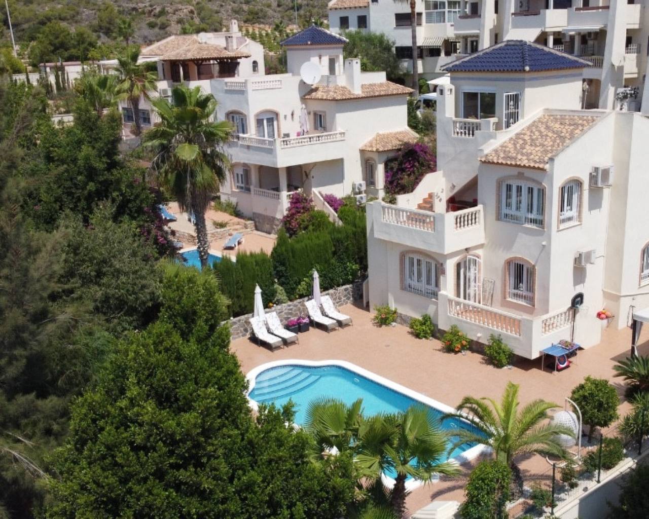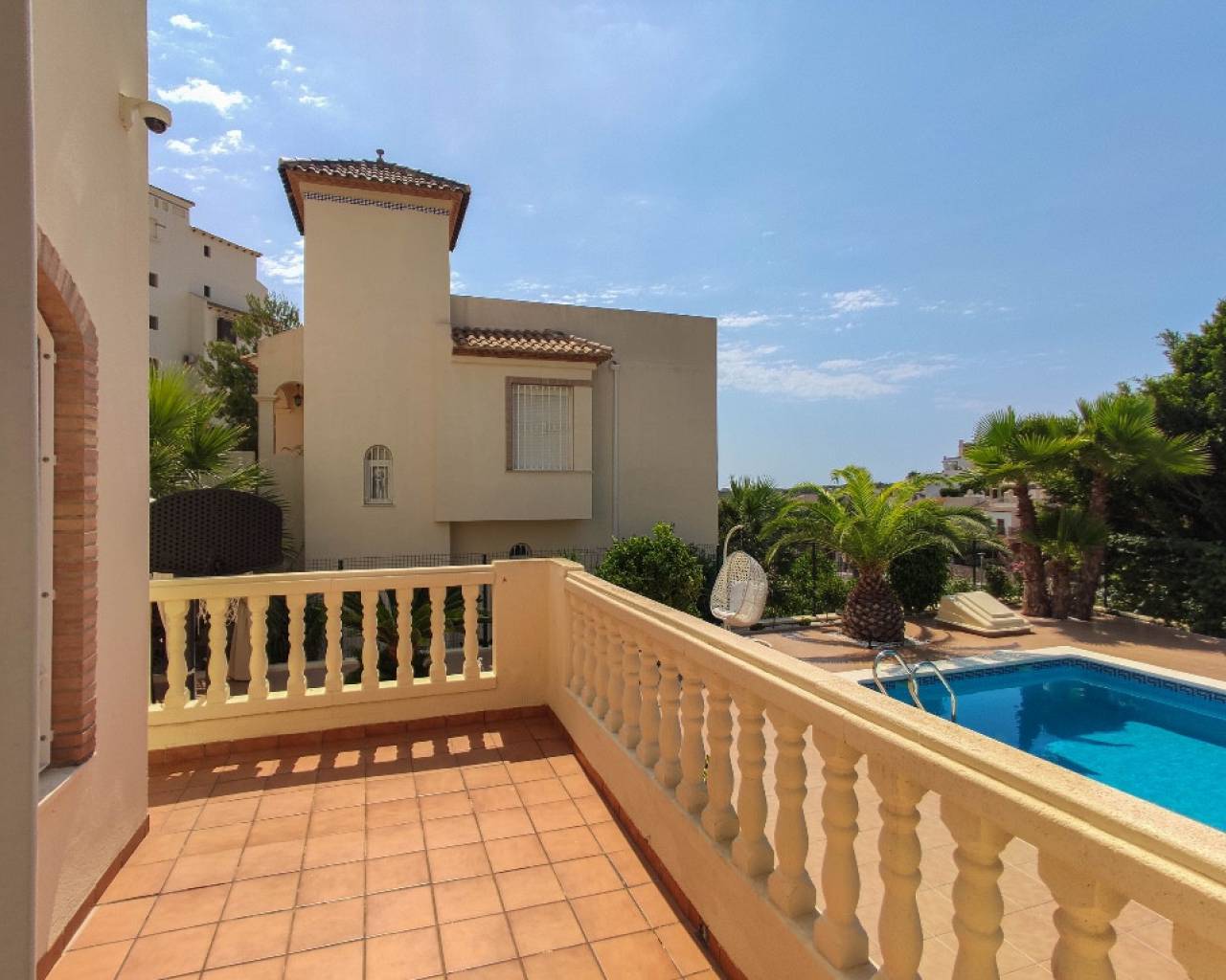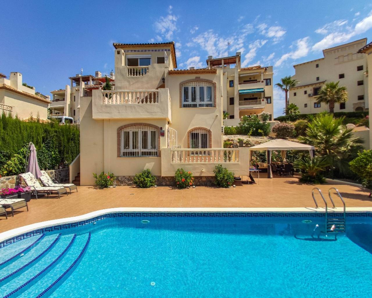 Les presentamos una magnífica villa en Las Ramblas, Costa Blanca. La casa goza de una ubicación soleada y cuenta con 4 dormitorios, 4 baños, un amplio y luminoso salón, comedor, cocina equipada y una terraza con vistas al mar. La casa cuenta con todo lo necesario para una estancia confortable, incluyendo suelos de mármol. La propiedad se vende amueblada. La parcela adyacente cuenta con una hermosa piscina (9 x 4 m²), un cómodo aparcamiento (12,5 m²) y un jardín. Las Ramblas se encuentra en Orihuela Costa, en el sur de la Costa Blanca. Esta ubicación es ideal para una vida cómoda: un impresionante entorno natural, tranquilos paseos marítimos, carriles bici junto al canal y el famoso campo de golf de 18 hoyos de Las Ramblas. Si le gusta el golf y prefiere una experiencia más variada, Campoamor Golf está a solo 500 metros. Los servicios están bien desarrollados y a pocos minutos de la casa: un centro comercial con numerosos bares, restaurantes y pequeñas tiendas, así como supermercados Aldi y Mercadona. Cabe destacar que el prestigioso Limonar International English School está a solo 5 minutos en coche. Torrevieja está a 10 km y las preciosas playas de arena de Campoamor y La Zenia a solo 3-4 km.