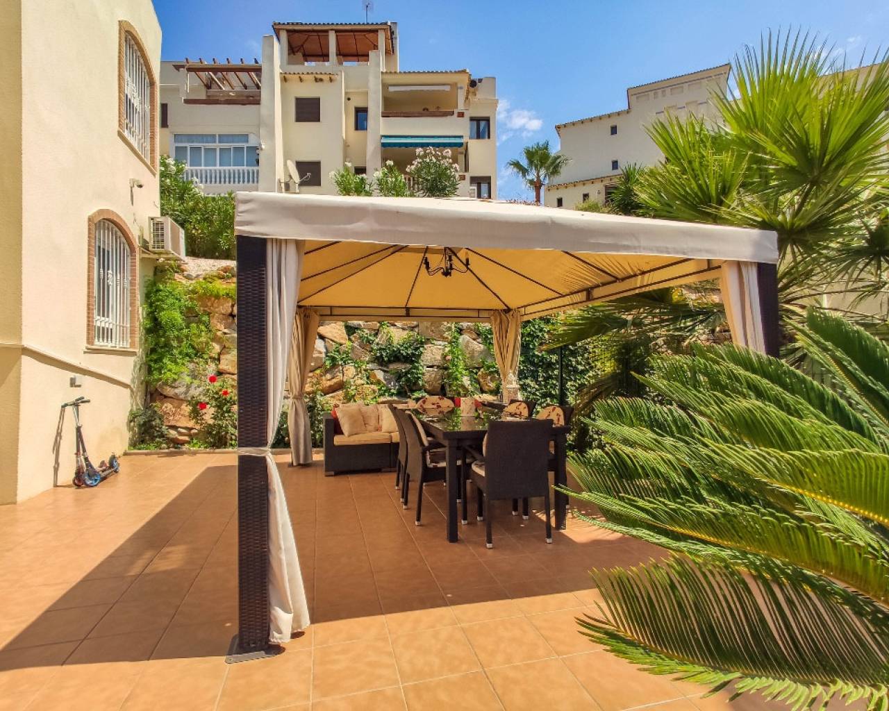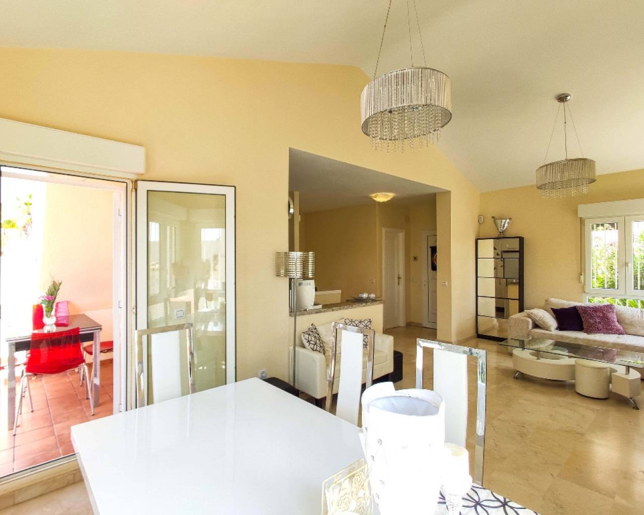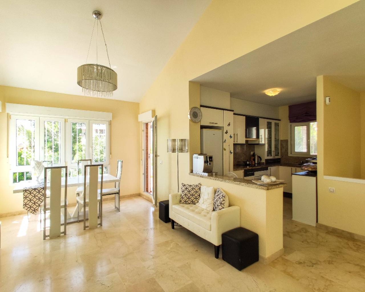 Les presentamos una magnífica villa en Las Ramblas, Costa Blanca. La casa goza de una ubicación soleada y cuenta con 4 dormitorios, 4 baños, un amplio y luminoso salón, comedor, cocina equipada y una terraza con vistas al mar. La casa cuenta con todo lo necesario para una estancia confortable, incluyendo suelos de mármol. La propiedad se vende amueblada. La parcela adyacente cuenta con una hermosa piscina (9 x 4 m²), un cómodo aparcamiento (12,5 m²) y un jardín. Las Ramblas se encuentra en Orihuela Costa, en el sur de la Costa Blanca. Esta ubicación es ideal para una vida cómoda: un impresionante entorno natural, tranquilos paseos marítimos, carriles bici junto al canal y el famoso campo de golf de 18 hoyos de Las Ramblas. Si le gusta el golf y prefiere una experiencia más variada, Campoamor Golf está a solo 500 metros. Los servicios están bien desarrollados y a pocos minutos de la casa: un centro comercial con numerosos bares, restaurantes y pequeñas tiendas, así como supermercados Aldi y Mercadona. Cabe destacar que el prestigioso Limonar International English School está a solo 5 minutos en coche. Torrevieja está a 10 km y las preciosas playas de arena de Campoamor y La Zenia a solo 3-4 km.