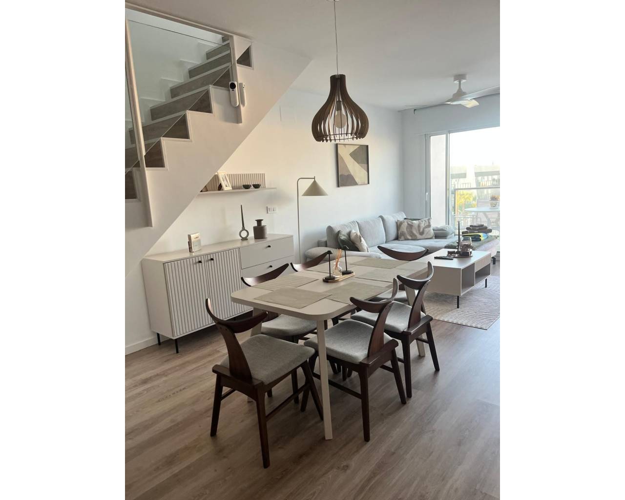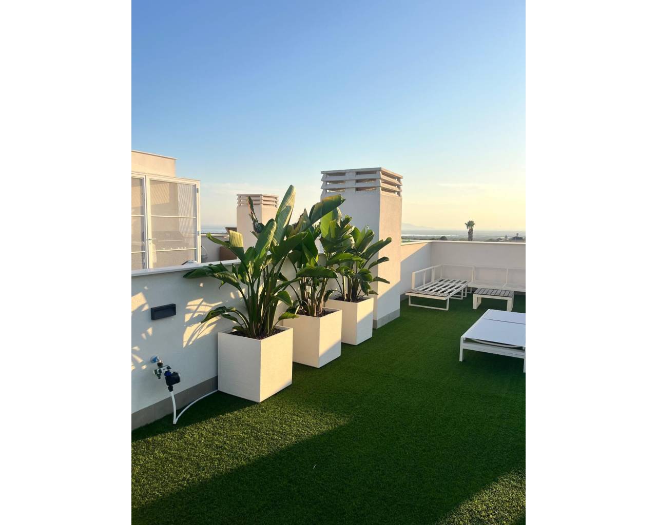 Apartamento con azotea y vistas panorámicas al mar en Gran Alacant: ¡una oferta única! Ubicación: Gran Alacant, Alicante: una zona prestigiosa y tranquila con fácil acceso a la playa, servicios y transporte. ¡A solo 15 minutos en coche del aeropuerto de Alicante! Descripción de la propiedad: Este espacioso apartamento dúplex, con una superficie total de 148 m² (superficie útil: 75 m²), se encuentra en la segunda planta y ofrece vistas al mar, ofreciendo una sensación de lujo y un estilo de vida mediterráneo. El interior ha sido diseñado pensando en la comodidad y la funcionalidad. Ofrece un salón-comedor, dos dormitorios y dos baños, así como una terraza privada (aprox. 8 m²) ideal para relajarse. Destaca su amplio solárium de 50 m². El apartamento está equipado con aire acondicionado por conductos y está equipado con electrodomésticos y muebles de alta calidad. La propiedad se encuentra en un complejo de nueva construcción (2025), en un entorno tranquilo y seguro, pero cerca del mar, las playas y las zonas de recreo. Características adicionales: Plaza de aparcamiento incluida en el precio, Terraza con vistas y balcón, Trastero, Piscina y zonas verdes que rodean el complejo, Distribución ideal de las estancias: aprovechamiento máximo del espacio. Esta propiedad es ideal tanto como vivienda familiar para vivir todo el año como como inversión para alquiler vacacional o de larga duración, gracias a su ubicación junto al mar y sus acabados de alta calidad. Le invitamos a contactarnos y concertar una visita: ¡esta es una oportunidad única en Gran Alacant!