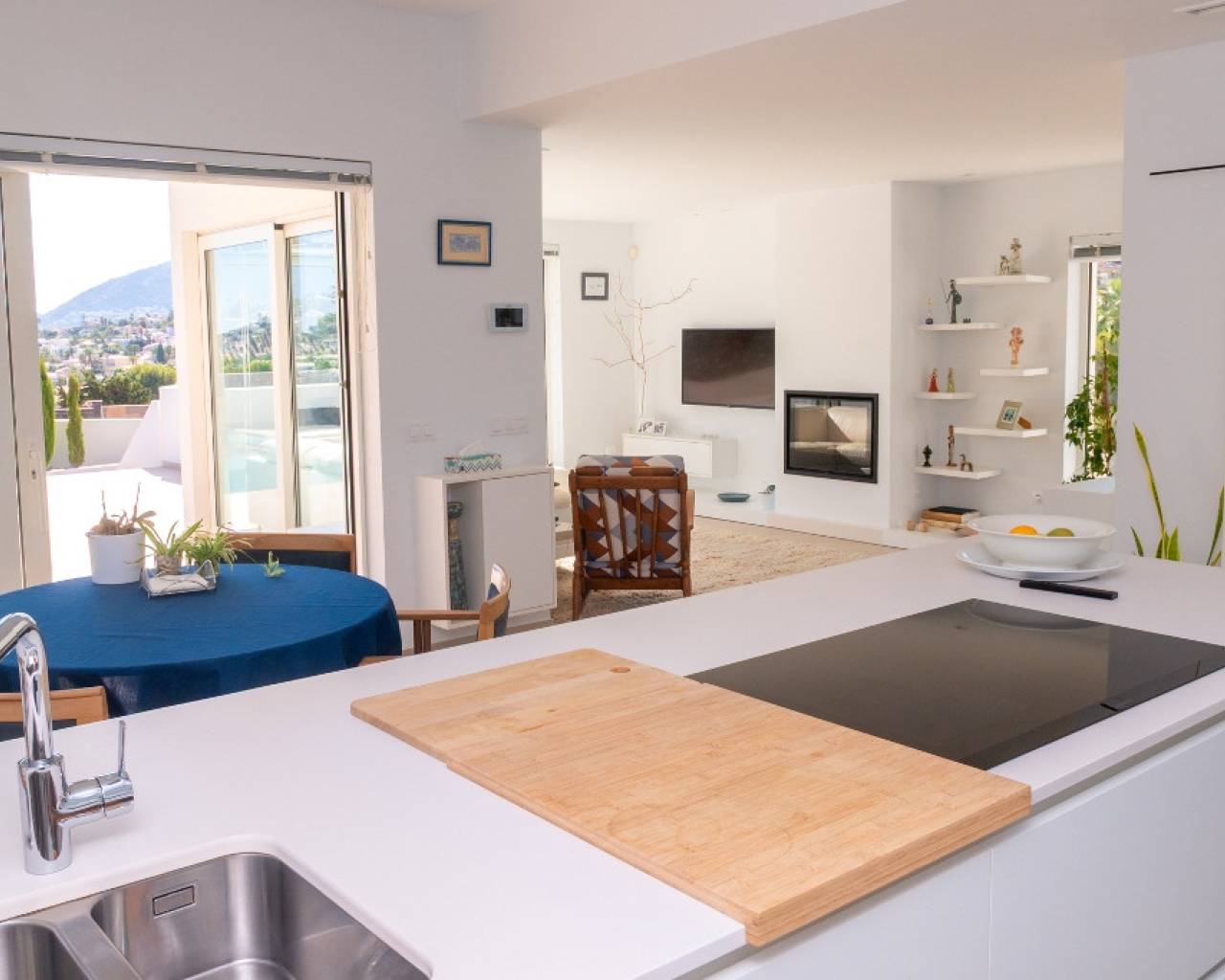Descubre esta espectacular villa moderna de lujo, construida en 2020, ubicada en una zona privilegiada entre Benissa y Calpe, a pocos minutos de las playas, calas, supermercados y restaurantes. Un lugar ideal para disfrutar del estilo de vida mediterráneo, el sol y los deportes náuticos durante todo el año. La vivienda ofrece una distribución cómoda y funcional. En la planta baja encontramos un elegante hall de entrada, aseo de cortesía, cocina abierta totalmente equipada con electrodomésticos premium, amplio salón-comedor con chimenea y salida directa a la terraza y piscina. Además, cuenta con tres dormitorios con baño en suite y armarios empotrados. En la planta alta, el dormitorio principal dispone de vestidor, baño privado y terraza con vistas al mar. La planta sótano incluye lavadero, trastero y una amplia zona diáfana legalizada, perfecta como gimnasio, sala de juegos, cine o despacho. Entre sus equipamientos destacan aire acondicionado y calefacción por zonas, sistema de alarma, persianas eléctricas, carpintería de seguridad, materiales de alta calidad y piscina privada climatizable. Dispone además de parking para 3-4 vehículos. Una vivienda exclusiva, lista para entrar a vivir, que combina confort, diseño y ubicación perfecta.
