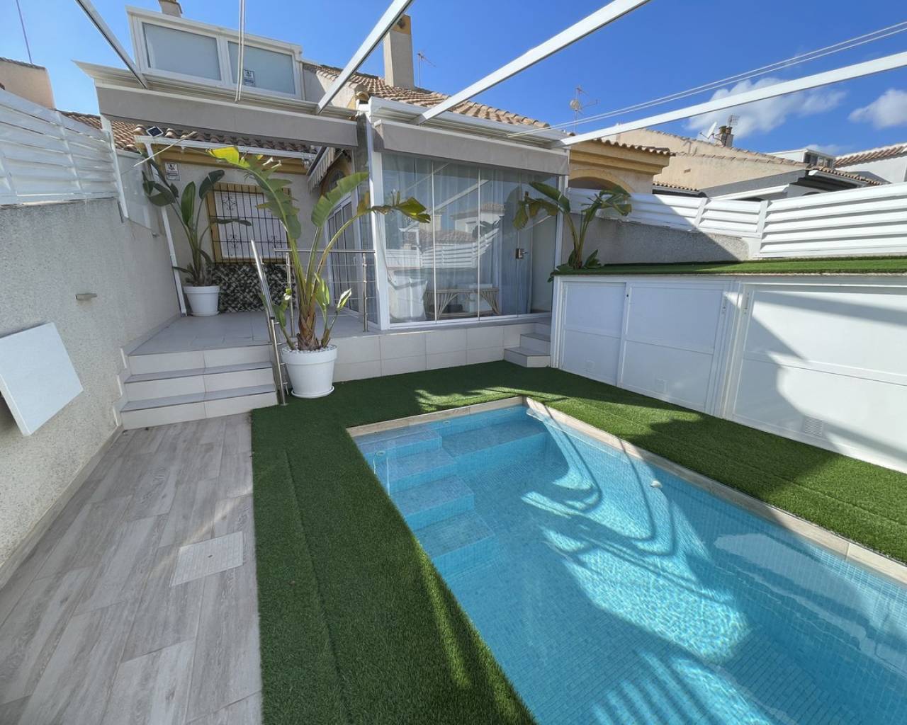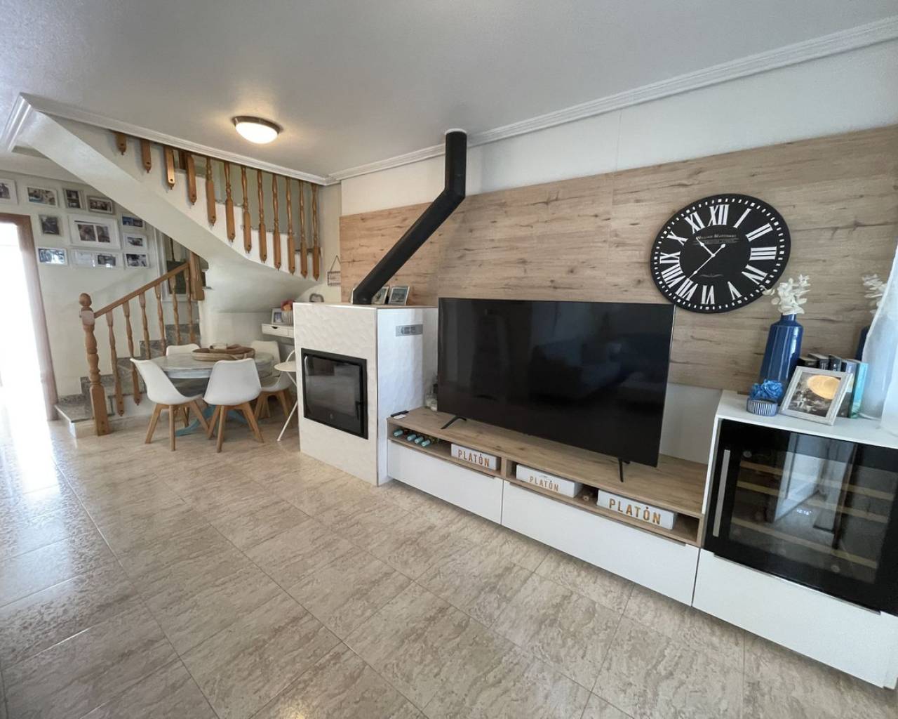 Les presentamos esta fabulosa villa adosada reformada ubicada en la popular zona de Torre de la Horadada. La propiedad consta de 3 dormitorios, 2 baños, salón-comedor y cocina totalmente equipada. La propiedad cuenta con jardín privado, terrazas y piscina privada. Vivir aquí significa disfrutar de un entorno privilegiado con playas con Bandera Azul, aguas cristalinas y servicios de calidad, un puerto deportivo con actividades náuticas y escuela de vela, gastronomía mediterránea en restaurantes, bares y chiringuitos frente al mar, además de servicios de salud y farmacias en las inmediaciones, lo que garantiza tranquilidad durante todo el año. También encontrará centros deportivos y de ocio, rutas ciclistas y actividades culturales. Torre de la Horadada es una localidad costera situada en la Costa Blanca Sur, con playas de arena fina, ideales para familias con niños que vienen a pasar sus vacaciones de verano. Hay dos aeropuertos cerca de Torre de la Horadada: el de Alicante y el de Murcia. Torre de la Horadada es también uno de los destinos turísticos más bonitos del sur, con una atractiva costa y paseos marítimos, además de una encantadora torre de vigilancia que data de la época en que los piratas navegaban por estos mares, numerosas playas de arena, un clima soleado y un encantador puerto deportivo con amplio espacio de amarre. Torre de la Horadada se encuentra al norte del Mar Menor, junto a Pilar de la Horadada, y también está cerca de Torrevieja, La Zenia, Mil Palmeras, Cabo Roig, Campoamor, Playa Flamenca y Punta Prima.