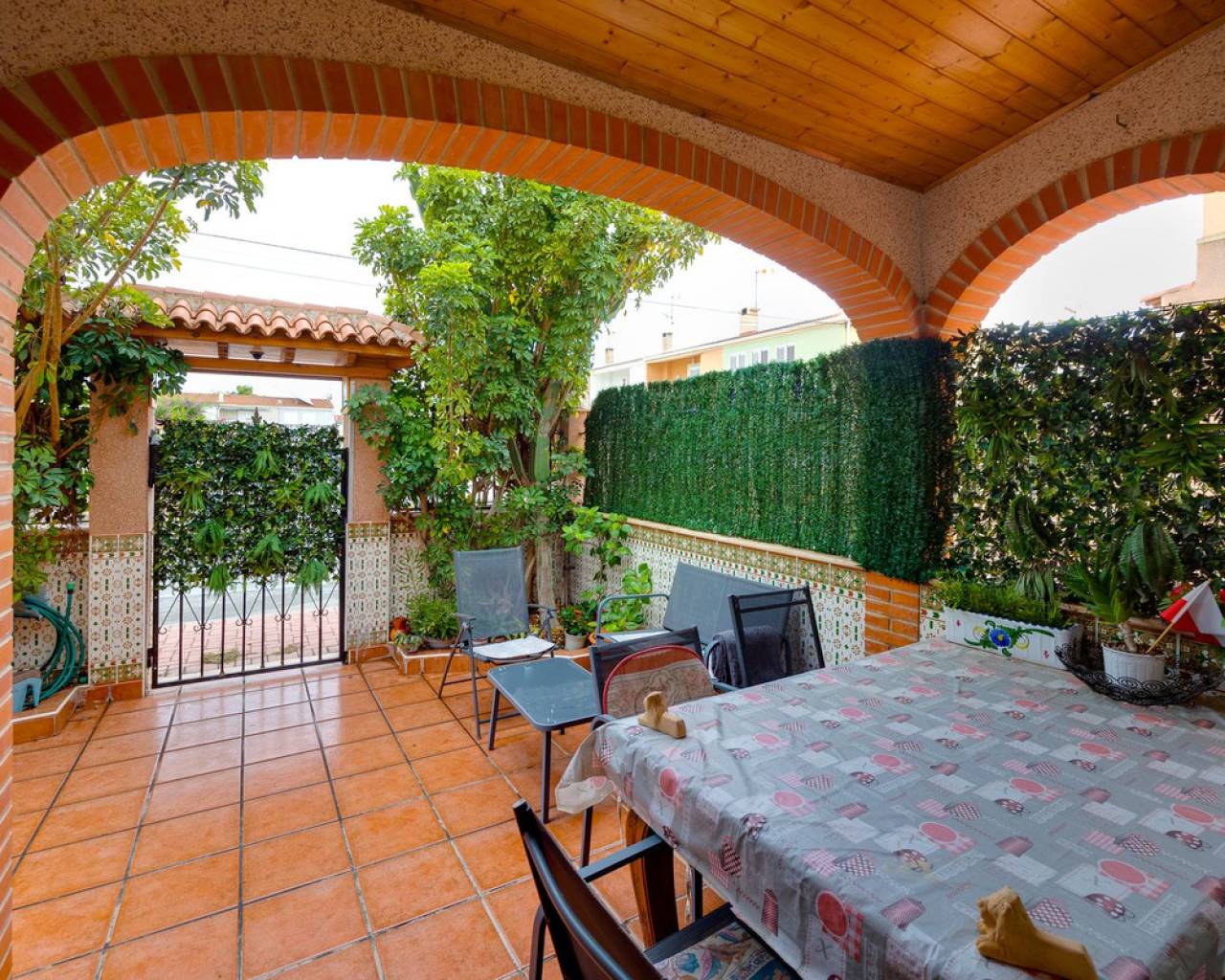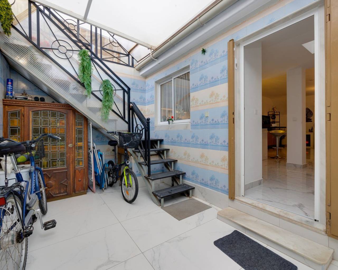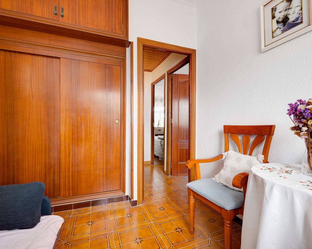 Magnífica vivienda a solo 350 m de la playa de Los Náufragos Excepcional vivienda situada en una de las zonas más tranquilas y deseadas de Torrevieja, a tan solo 350 metros de la playa de Los Náufragos. Esta propiedad es perfecta tanto como residencia habitual, escapada vacacional o inversión para alquiler turístico, ya que dispone de dos entradas independientes. Ubicada en un entorno apacible rodeado de zonas verdes y parques, es el lugar ideal para disfrutar del aire libre, la naturaleza y la cercanía al mar. Esta casa adosada se distribuye en dos plantas con una disposición práctica y cómoda. La planta baja, completamente reformada, cuenta con un amplio salón-comedor con cocina americana, un dormitorio, un baño con ducha y un porche cubierto que da acceso a una terraza privada, perfecta para disfrutar del clima mediterráneo. En la planta superior se encuentran tres dormitorios (uno doble y dos individuales) y un segundo baño. La vivienda se encuentra en excelente estado e incluye garaje privado, placas solares y suelo radiante en el salón. Supermercados, farmacias, restaurantes, transporte público y todos los servicios necesarios están muy cerca. La zona está bien comunicada con las principales vías, lo que facilita el acceso a otras localidades como Alicante y Murcia.