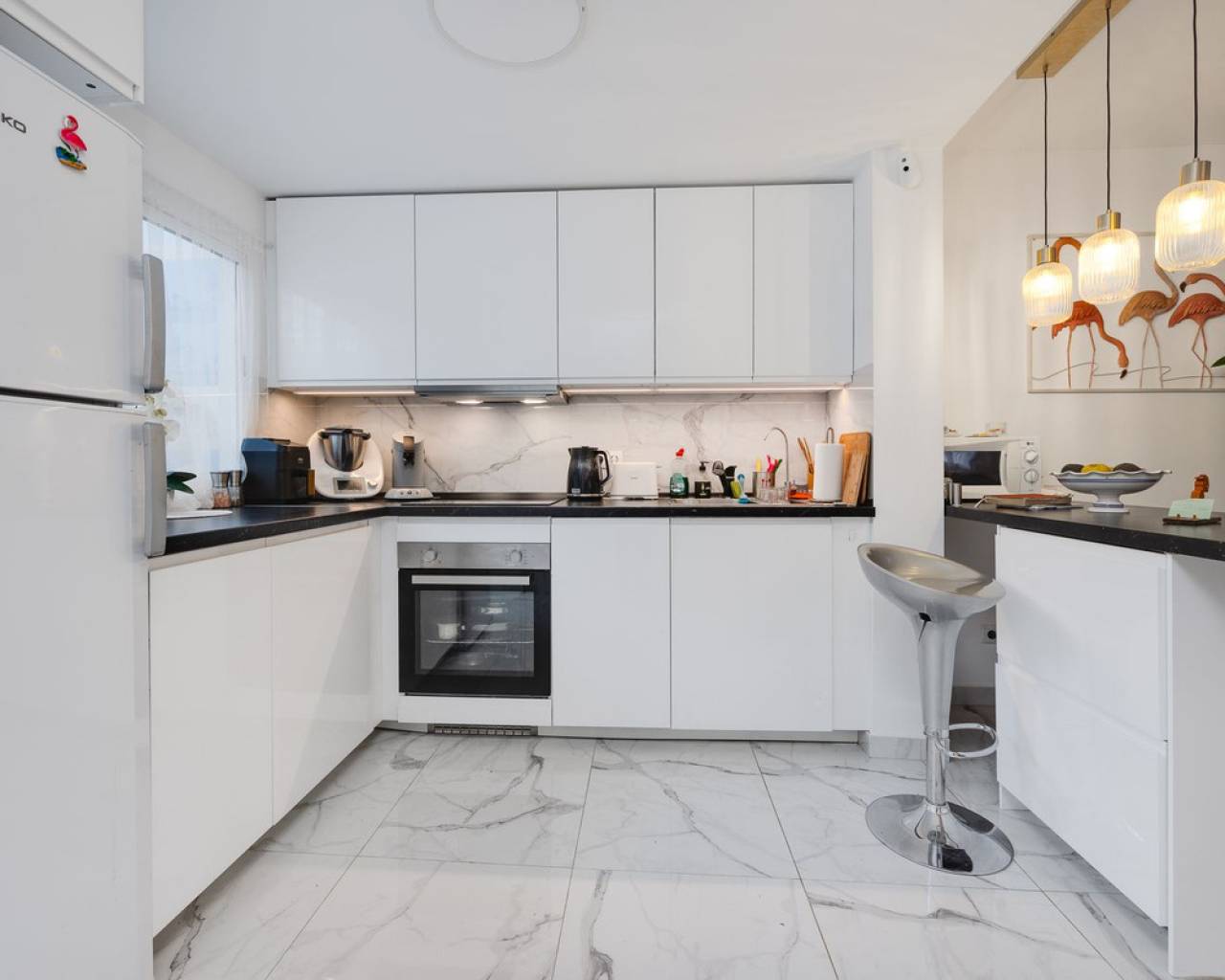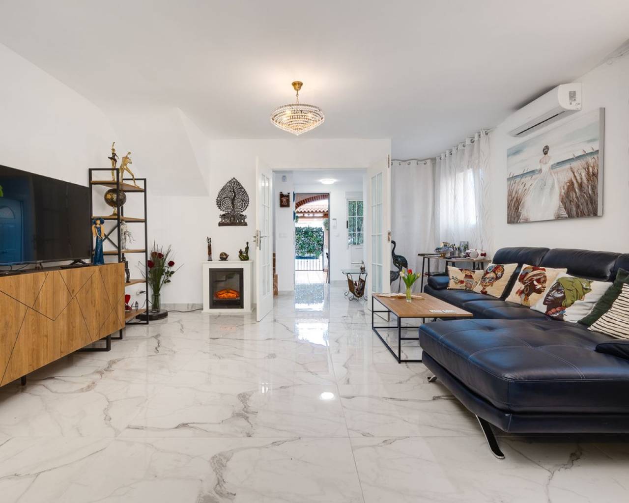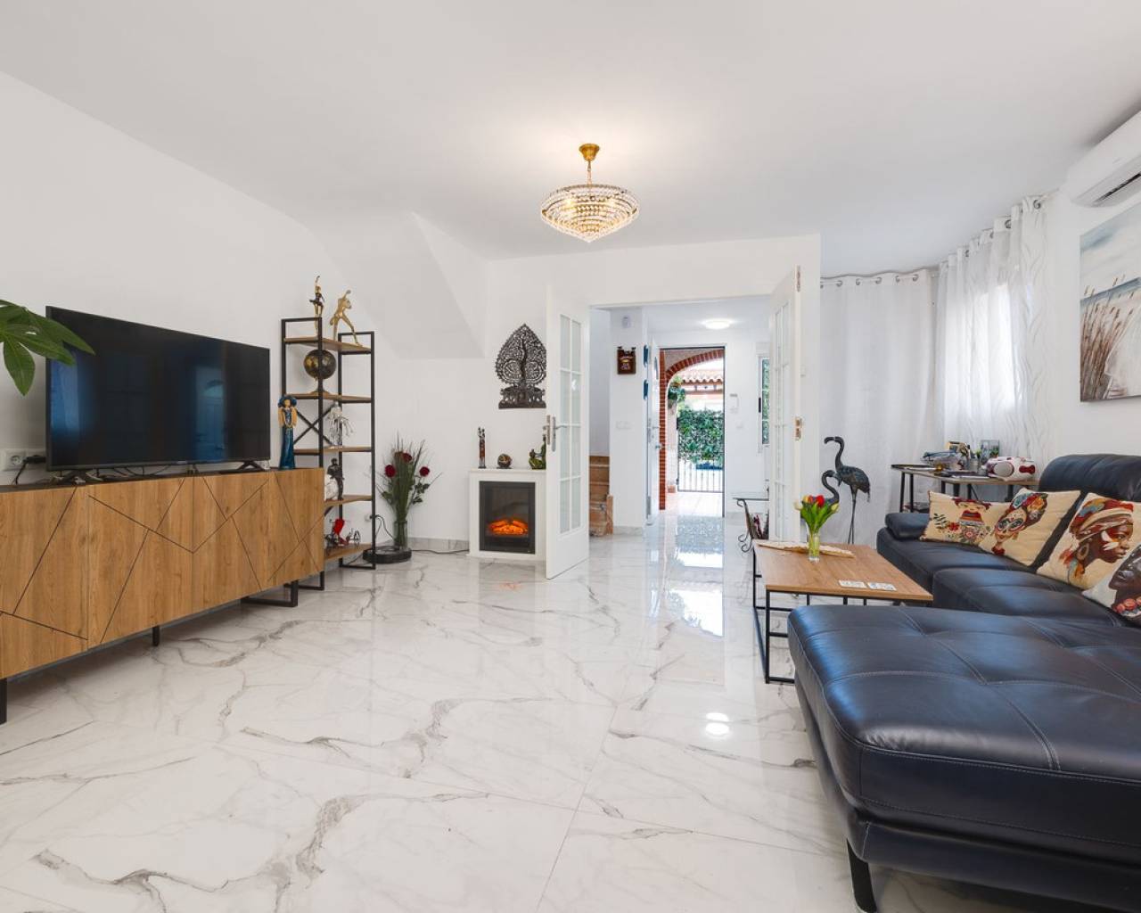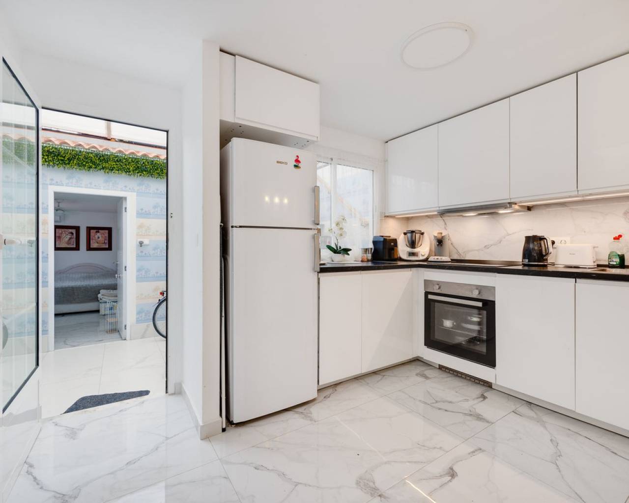 Magnífica vivienda a solo 350 m de la playa de Los Náufragos Excepcional vivienda situada en una de las zonas más tranquilas y deseadas de Torrevieja, a tan solo 350 metros de la playa de Los Náufragos. Esta propiedad es perfecta tanto como residencia habitual, escapada vacacional o inversión para alquiler turístico, ya que dispone de dos entradas independientes. Ubicada en un entorno apacible rodeado de zonas verdes y parques, es el lugar ideal para disfrutar del aire libre, la naturaleza y la cercanía al mar. Esta casa adosada se distribuye en dos plantas con una disposición práctica y cómoda. La planta baja, completamente reformada, cuenta con un amplio salón-comedor con cocina americana, un dormitorio, un baño con ducha y un porche cubierto que da acceso a una terraza privada, perfecta para disfrutar del clima mediterráneo. En la planta superior se encuentran tres dormitorios (uno doble y dos individuales) y un segundo baño. La vivienda se encuentra en excelente estado e incluye garaje privado, placas solares y suelo radiante en el salón. Supermercados, farmacias, restaurantes, transporte público y todos los servicios necesarios están muy cerca. La zona está bien comunicada con las principales vías, lo que facilita el acceso a otras localidades como Alicante y Murcia.