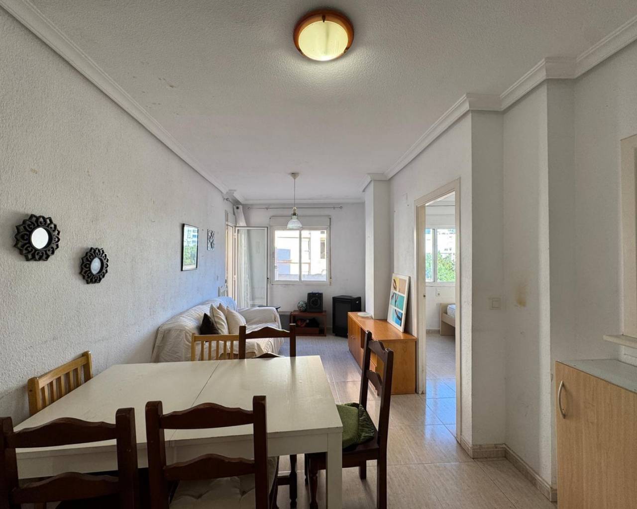 Se vende apartamento en Torrevieja, situado a tan solo 400 metros de la playa del Cura. Una buena oportunidad para quienes buscan una vivienda cerca del mar con posibilidad de reformarla a su gusto.•Superficie total: 63 m²•Superficie útil: 54 m²•Distribución: 2 dormitorios y 1 baño•Terraza: 4 m²•Planta: segunda•Año de construcción: 2002La vivienda se vende con todo lo que aparece en las fotografías.El apartamento necesita una reforma estética, lo que ofrece la posibilidad de personalizar el espacio y aumentar su valor.Su excelente ubicación, cerca de la playa, comercios, restaurantes y todos los servicios, lo convierte en una opción interesante tanto para vivir como para inversión inmobiliaria.