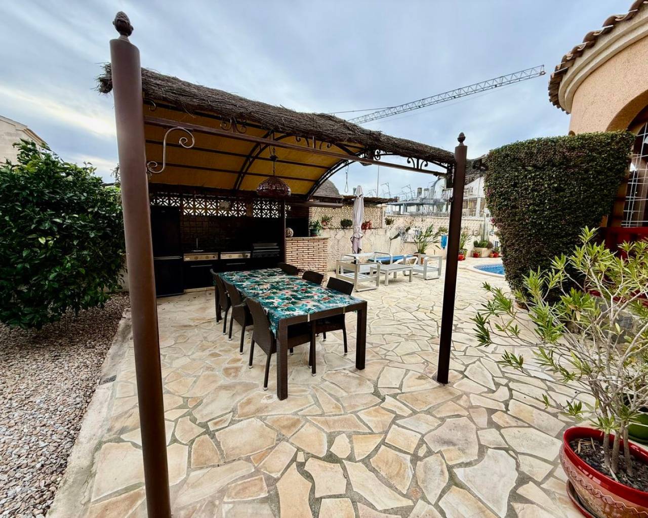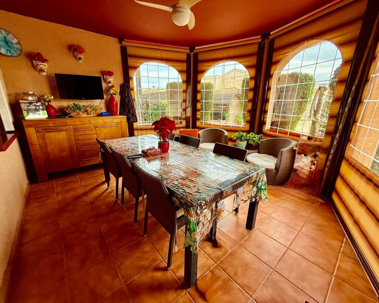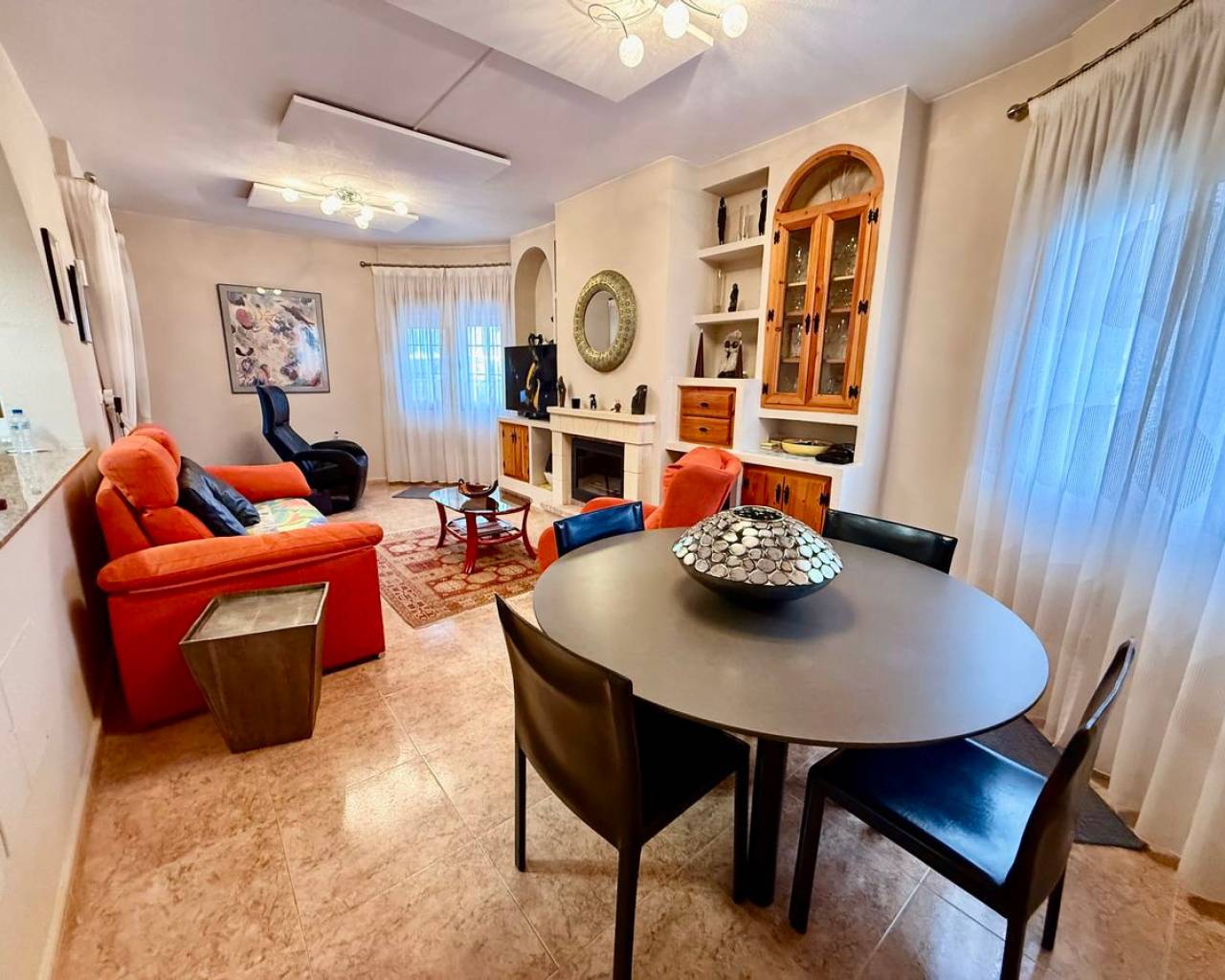 Ubicada en el codiciado Parque Atalaya de Benijófar, en la hermosa Costa Blanca, esta elegante villa independiente de tres dormitorios ocupa una atractiva parcela esquinera de 434 m² y ofrece una excepcional combinación de comodidad, estilo y vida al aire libre. La propiedad tiene una superficie construida de 111 m², que se complementa con un amplio solárium de 35 m². Se vende amueblada, lo que permite una entrada sin complicaciones e inmediata. Su ubicación es ideal, a solo unos minutos a pie de la calle principal de Benijófar y a poca distancia de Ciudad Quesada, con fácil acceso a una amplia gama de servicios, restaurantes y comercios. NO HAY GASTOS DE COMUNIDAD. En el corazón del espacio exterior se encuentra una piscina privada climatizada, ideal para disfrutar durante todo el año, rodeada de jardines mediterráneos que crean un ambiente tranquilo y acogedor. Las zonas exteriores han sido cuidadosamente diseñadas para aprovechar al máximo el clima, con amplio espacio para tomar el sol y cenar al aire libre, además de una cocina exterior totalmente equipada, ideal para el entretenimiento. Un solárium corona la propiedad, ofreciendo impresionantes vistas panorámicas a las montañas y espacio de almacenamiento adicional, convirtiéndola en el refugio perfecto para relajarse y desconectar. En el interior, la villa cuenta con tres amplios dormitorios, todos con armarios empotrados, incluyendo un generoso dormitorio principal con baño en suite, junto con un moderno cuarto de ducha que da servicio al resto de los dormitorios. El salón es luminoso y acogedor, con una encantadora chimenea de leña, aire acondicionado por conductos y paneles de calefacción por infrarrojos en el techo que proporcionan una calefacción eficiente y confortable durante los meses más fríos del invierno. La cocina americana está totalmente equipada con todos los electrodomésticos y se integra a la perfección con el salón, lo que la hace ideal tanto para el día a día como para reuniones sociales. Desde el salón se accede a una terraza cubierta con toldos desplegables, que ofrece un espacio versátil y protegido que se puede disfrutar durante todo el año, especialmente durante los meses más fríos del invierno. También se ha cuidado la practicidad, con un amplio trastero exterior, un armario independiente para utensilios y espacio de almacenamiento adicional en el solárium, que ofrece amplio espacio para guardar pertenencias. Esta villa es una oportunidad excepcional para quienes buscan una vivienda privada y bien equipada en una ubicación privilegiada, con magníficos espacios exteriores y vistas impresionantes, ideal como residencia permanente o como un lujoso refugio vacacional en la Costa Blanca. Benijofar está bien conectado con la autopista AP7, a 10 km de la playa y a 40 km de la capital y su aeropuerto. Geográficamente, se encuentra al sur de la provincia de Alicante. Su posición intermedia entre la costa y los pueblos del interior la convierte en un referente en la comarca de la Vega Baja. Benijofar cuenta con una población de 3.707 habitantes y, en continuo crecimiento, se ha convertido en el lugar ideal para vivir para muchos ciudadanos europeos.