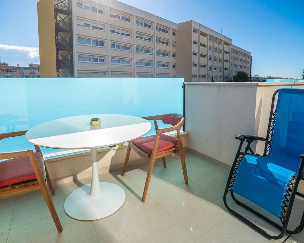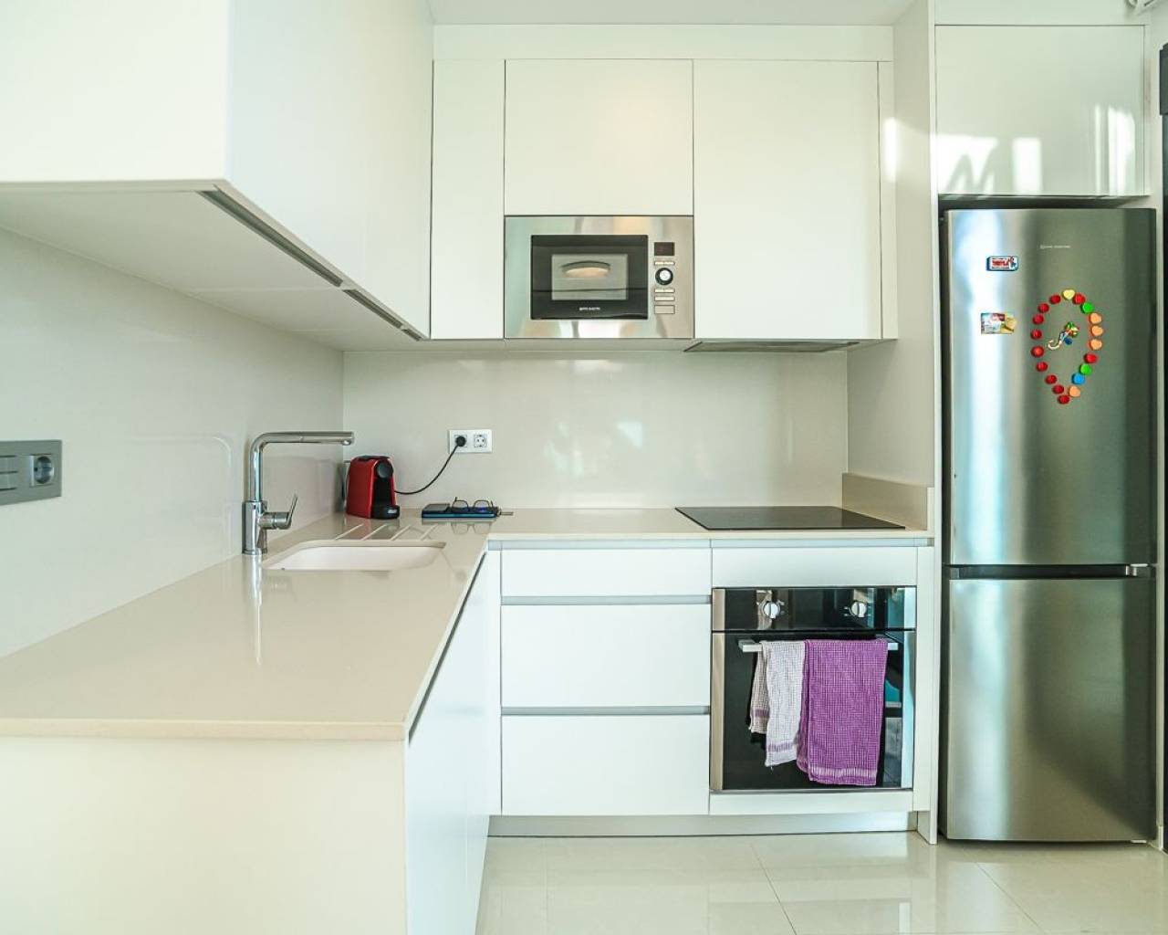 Apartamento moderno de 1 dormitorio con terraza y solárium privado Este elegante apartamento de 1 dormitorio y 1 baño está en excelentes condiciones y está ubicado en un edificio moderno construido en 2022. Se vende completamente amueblado con muebles de alta calidad, la propiedad está lista para mudarse de inmediato. El dormitorio cuenta con un armario empotrado y una cama con práctico espacio de almacenamiento debajo. El luminoso salón incluye un cómodo sofá cama, ideal para invitados o para dormir más. La cocina americana, totalmente equipada, se integra a la perfección con el salón, creando una distribución espaciosa y funcional. Junto a la cocina hay un lavadero independiente que alberga el calentador de agua y ofrece espacio de almacenamiento adicional. Gracias a su excelente orientación sur, la zona de estar disfruta de abundante luz natural durante todo el día, creando un ambiente cálido y confortable. Las características más destacadas de esta propiedad son las dos terrazas y el solárium privado completamente amueblado, perfecto para disfrutar de la vida al aire libre y del estilo de vida mediterráneo por el que se conoce a España. El apartamento también incluye una plaza de aparcamiento privado y la residencia ofrece una piscina comunitaria. Además de ser ideal para vivir todo el año, esta propiedad representa una excelente inversión para alquiler gracias a su ubicación privilegiada, a solo 700 metros de las playas de Playa del Cura y Cala de la Palangre . Todos los servicios están a poca distancia, incluyendo tiendas, restaurantes, supermercados, el centro de Torrevieja y la estación principal de autobuses, lo que la hace muy atractiva tanto para alquileres vacacionales como de larga estancia. Contáctenos hoy para concertar una visita o solicitar más información: las propiedades en esta ubicación y condición tienen una gran demanda.