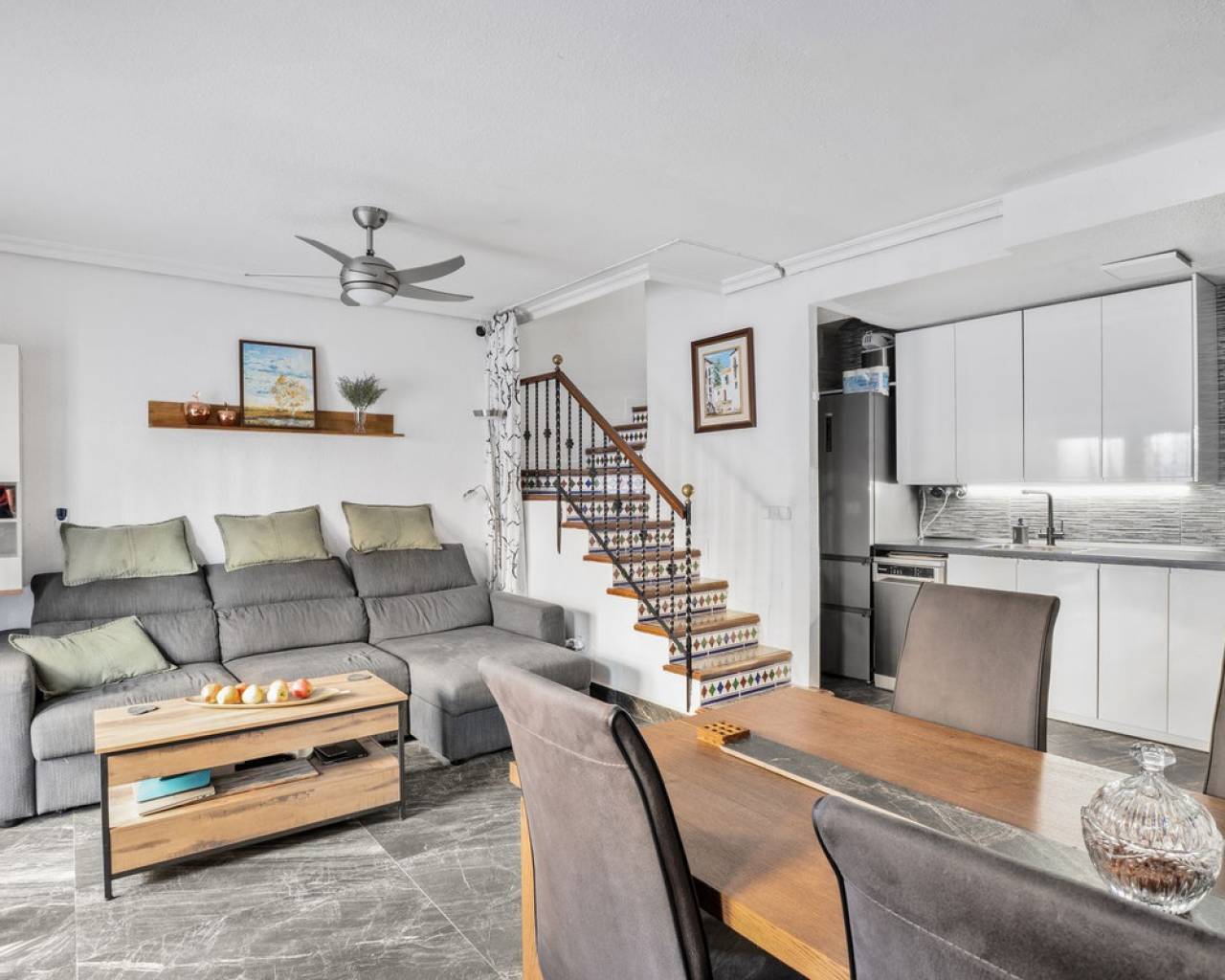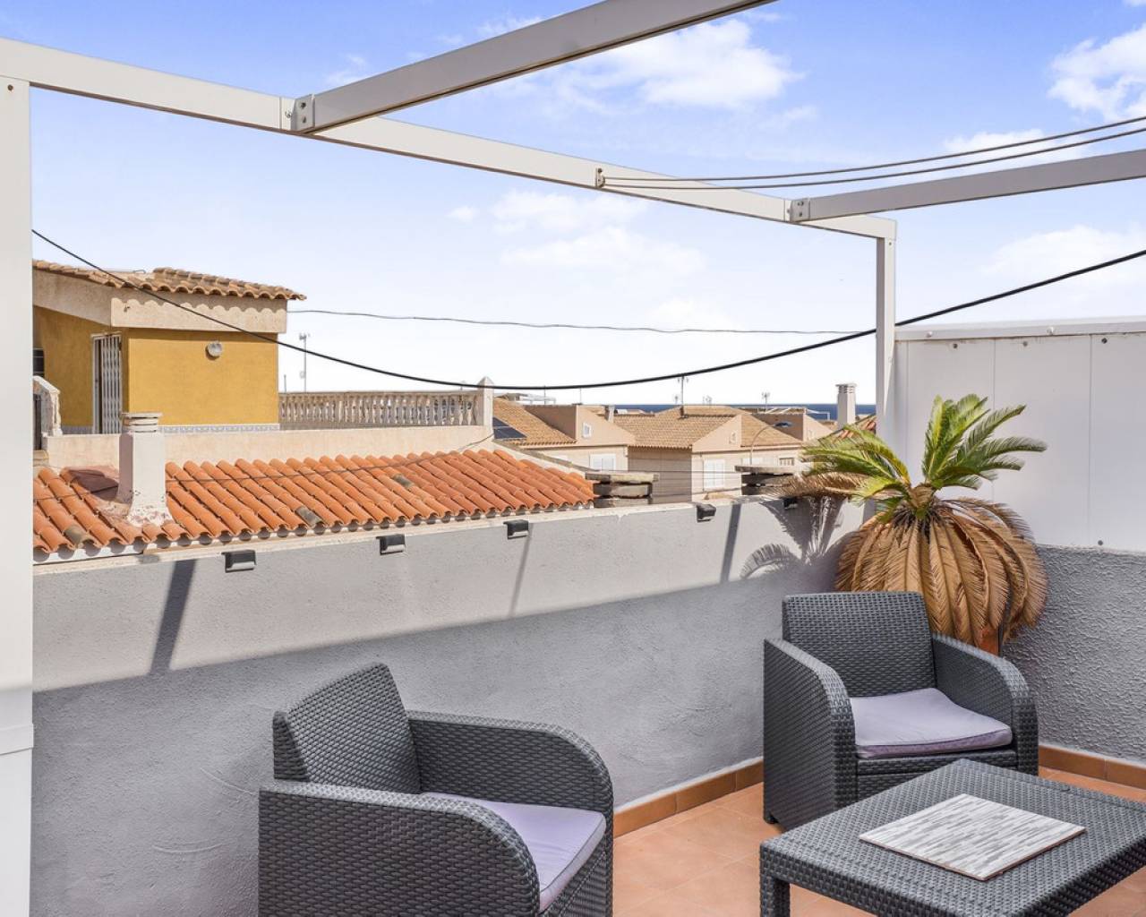 Bienvenido a esta encantadora casa adosada que combina estilo y comodidad en una de las zonas más demandadas de La Mata. Aquí se vive a poca distancia a pie de la hermosa playa de arena fina y, al mismo tiempo, se disfruta de bonitas vistas al mar que reflejan la cercanía al Mediterráneo. La vivienda ha sido renovada con mucho cuidado y con una acertada selección de materiales que crean un ambiente luminoso y acogedor. En la planta de entrada encontramos un agradable salón con espacio tanto para el descanso como para reuniones sociales, además de una cocina moderna con buenas soluciones de almacenamiento. En esta planta también hay un práctico aseo de invitados. En la planta superior se encuentran dos elegantes dormitorios, uno de ellos con acceso a un balcón con vistas al mar. También hay un baño completamente alicatado con un acabado sofisticado. La zona exterior privada ofrece un entorno ideal para disfrutar de desayunos al sol y agradables veladas con familiares y amigos. Una vivienda perfecta tanto como residencia habitual durante todo el año como para casa de vacaciones, con proximidad a la playa, restaurantes y servicios.