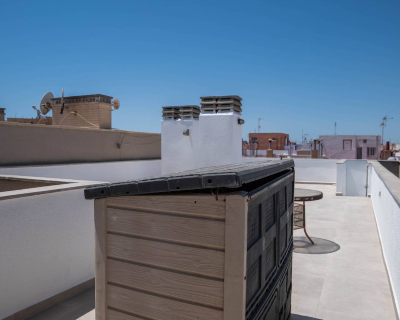 Ático con solárium privado y piscina comunitaria en la playa Los Locos en Torrevieja. Con una superficie aproximada de 94 m2 y a tan solo unos pasos (50 metros) de la playa, esta propiedad se presenta como una excelente oportunidad para disfrutar del estilo costero al máximo. La vivienda cuenta con una habitación doble luminosa que dispone de un armario empotrado y acceso directo a la terraza; además incluye otra habitación sencilla también equipada con armario empotrado. El baño principal es completo e incorpora bañera mientras que el aseo ofrece plato ducha moderno.Completamente reformada con primeras calidades, destaca su cocina totalmente equipada y moderna carpintería interior lacada en blanco. Su orientación norte asegura frescura durante los días más cálidos, complementándose perfectamente por sus suelos porcelánicos que añaden elegancia al ambiente.Entre las comodidades adicionales se encuentran aire acondicionado centralizado para asegurar tu confort todo el año . Este edificio no solamente goza atención especial hacia cada detalle sino también brinda magníficas vistas laterales al mar desde su terraza o solárium privado, ideal para relajarse o entretenerse bajo el sol mediterráneo.Los extras son numerosos: ascensor accesible hasta tu puerta principal, terraza luminosa donde recibir luz natural abundante—y espacios comunes tales como piscina comunitaria perfecta tanto niños cómo adultos disfrutando juntos lo mejor del verano. Ubicado rodeado de todos los servicios necesarios incluyendo supermercados cercanos, y centros médicos destacados junto colegios, locales, fácil transporte disponible gracias las paradas autobuses adyacentes. Diseñado pensando en calidad de vida familiar, aquí tienes tu perfecto hogar vacacional definitivo. Llámenos para concertar una visita! Si quieren una visita virtual o un plano, no duden en contactarnos. También será una muy buena inversión y ayudamos con nuestro exitoso servicio de alquiler por temporada. Contacte nos para más información