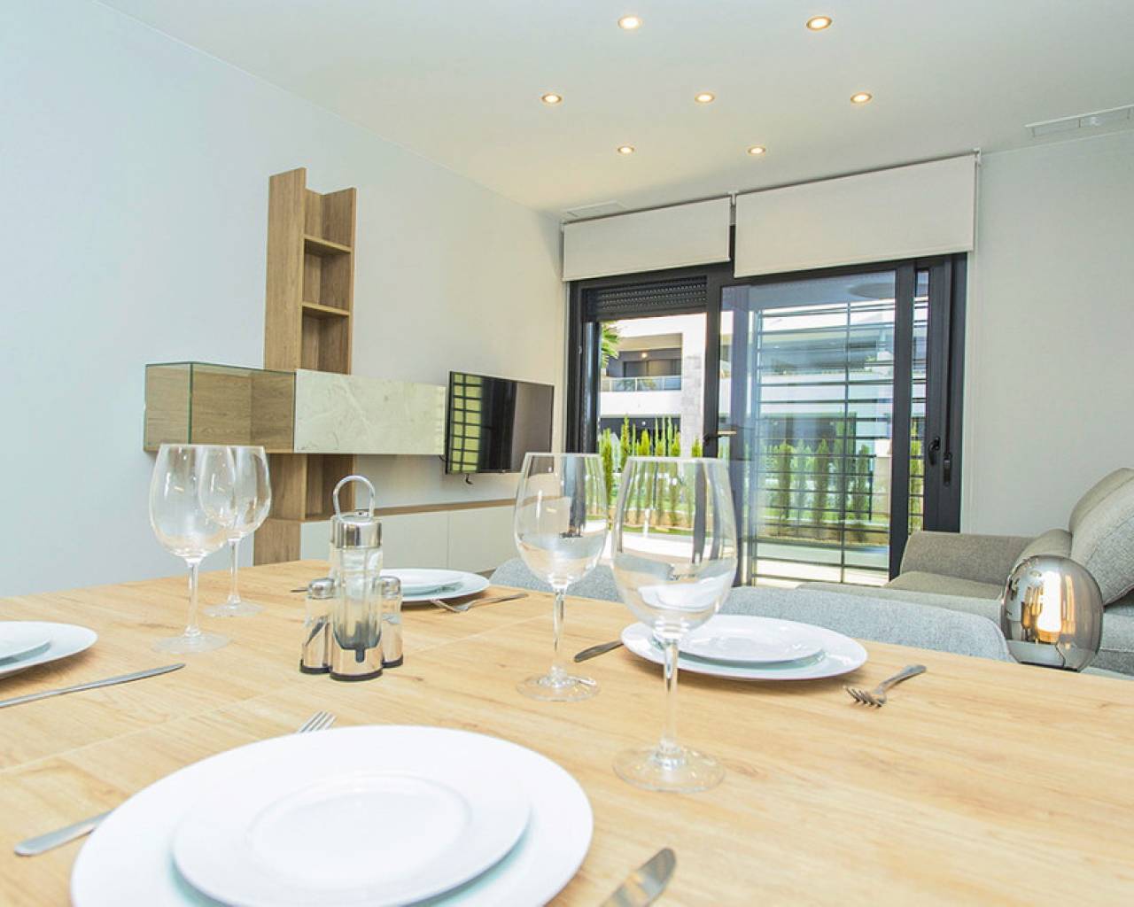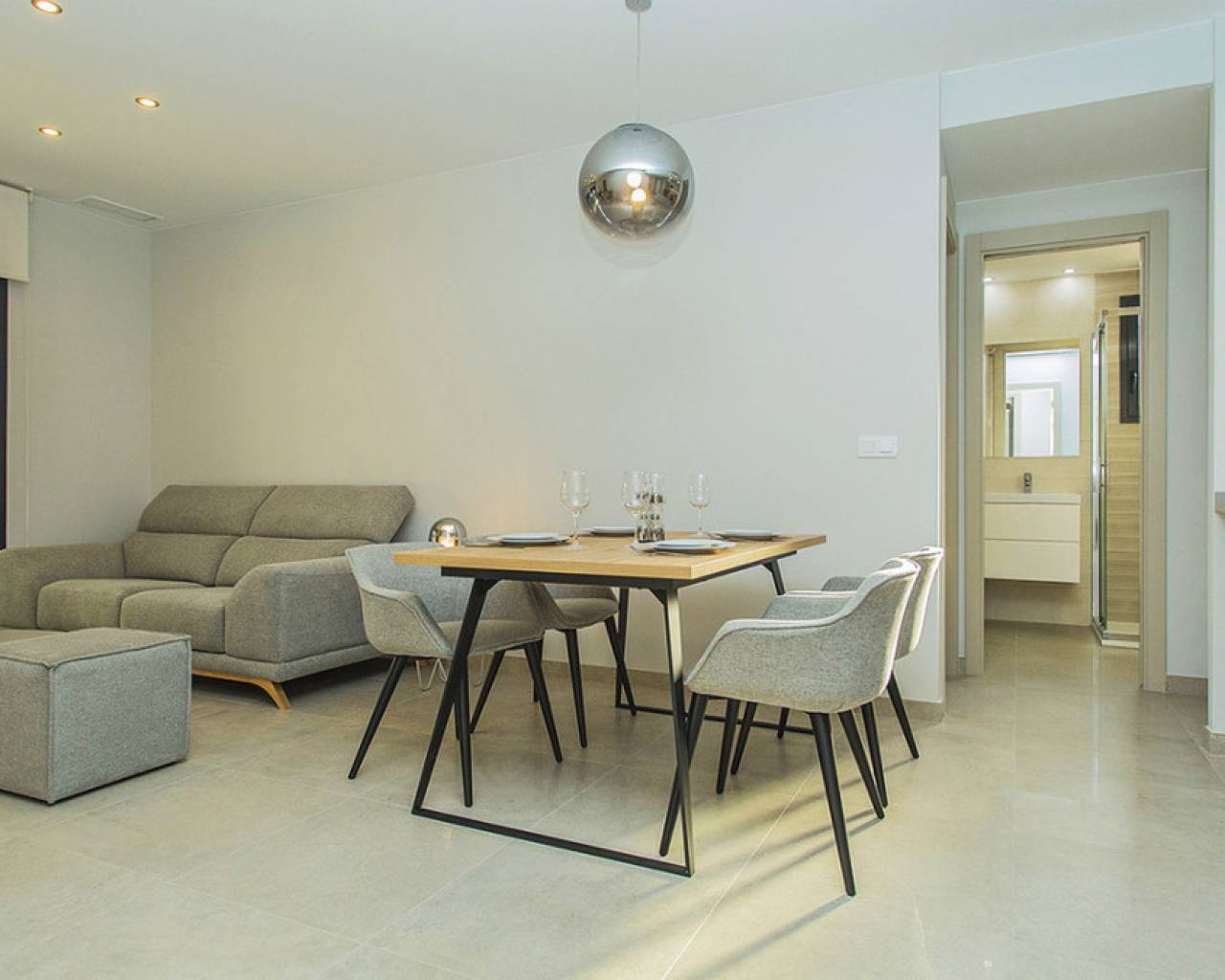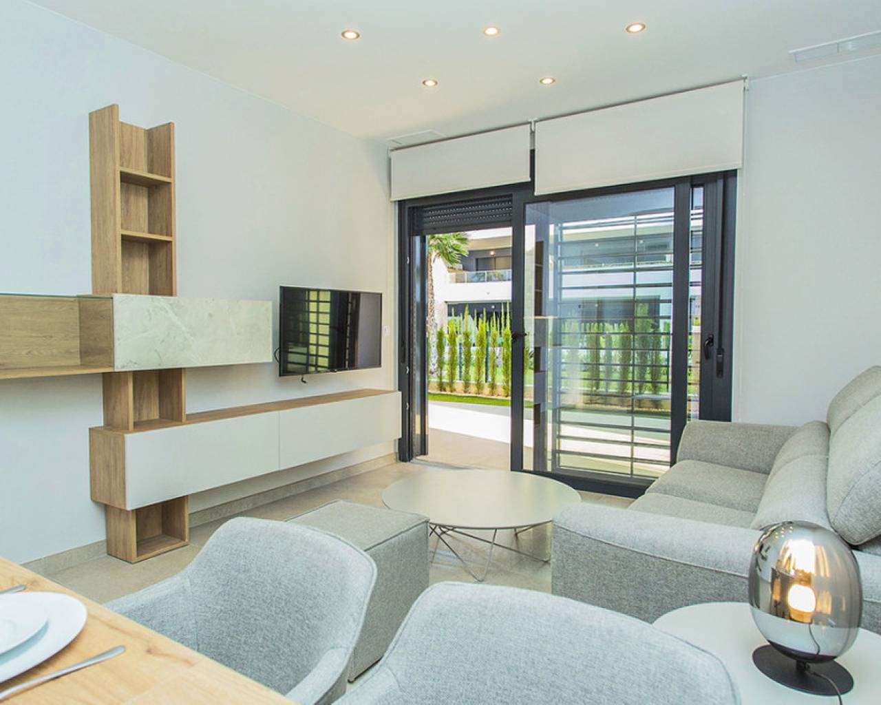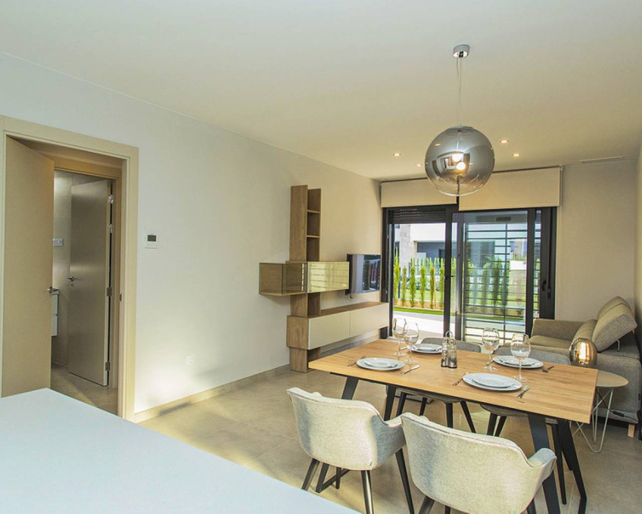 Apartamento amplio en planta baja con terraza grande en la exclusiva urbanización de Flamenca Village. Consta de dos dormitorios y dos baños, salón-comedor con cocina abierta. Se vende amueblado y con el apartamento viene incluida una plaza subterránea mas 1 plaza de parking para invitados dentro del recinto. La fase 3 se construyo en 2023 y la vivienda nunca se ha utilizado, es decir que está prácticamente considerada como obra nueva. Aire acondicionado central, cocina moderna con todos los electrodomésticos de buena marca, muebles de diseño, terraza grande para disfrutar del clima mediterráneo. El complejo residencial de Flamenca Village ofrece varias piscinas , una de ellas climatizada. Spa y gimnasio, un chiringuito en la zona de la piscina central con buen ambiente, zona de conserje 24 horas. Seguridad patrullando dentro del recinto etc.. La proximidad del centro comercial de Playa Flamenca te ofrece todos los servicios a pie. Mercadona, restaurantes, tiendas, cafeterias etc y a solo 5 minutos el centro comercial famoso de La Zenia Boulevard. Se puede caminar a la bonita playa flamenca, la distancia al mar son 500 metros. No dudes en concertar una visita! Es una oportunidad única de conseguir una vivienda atractiva en una de las urbanizaciones mas cotizadas de la costa.