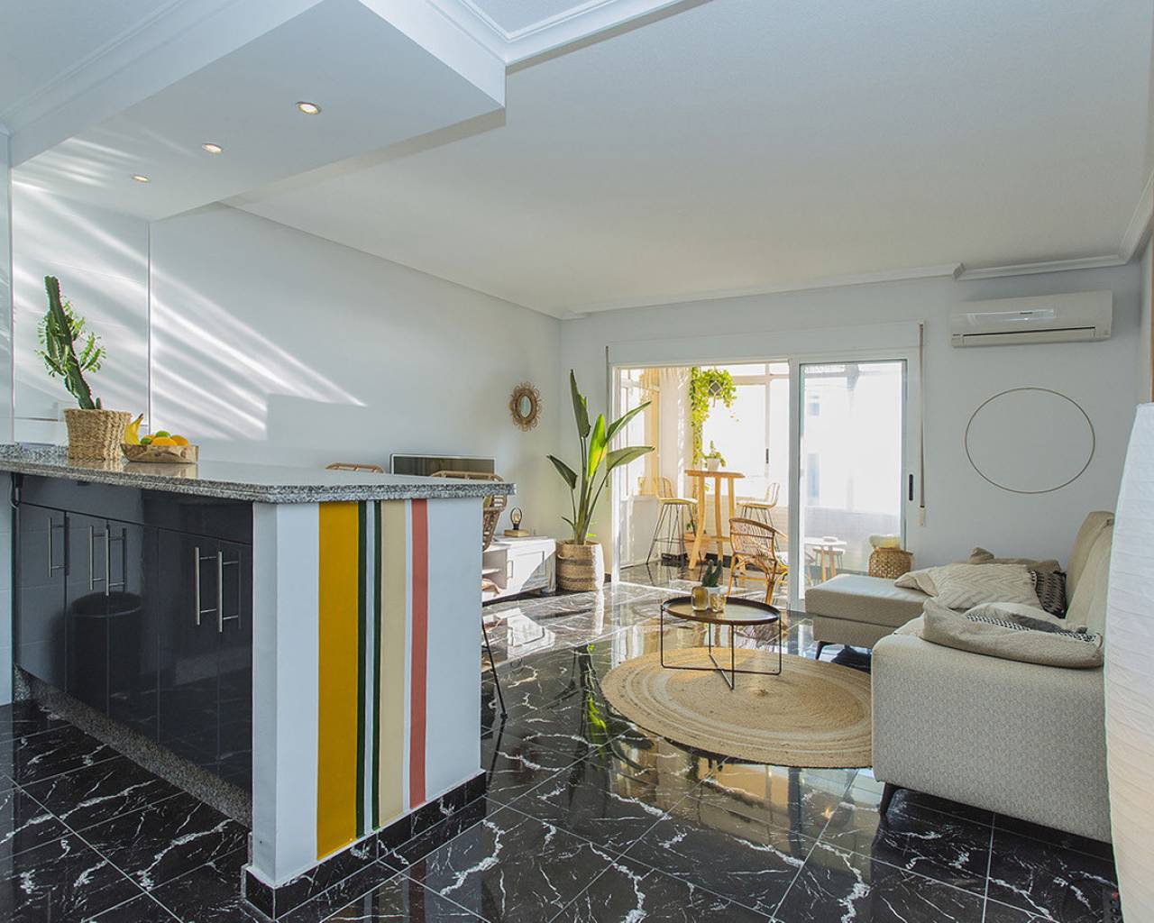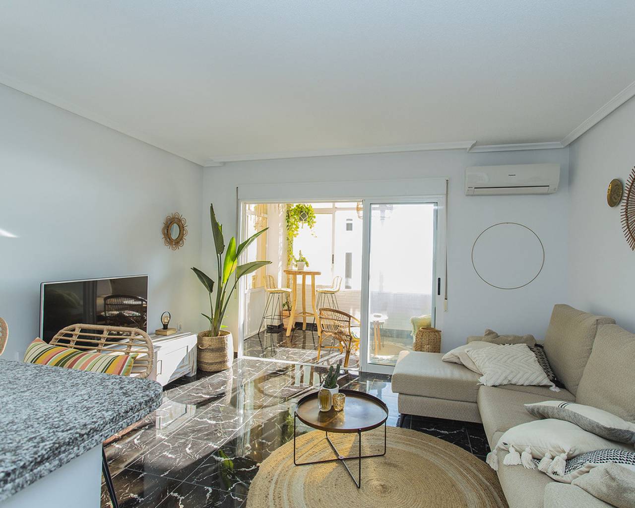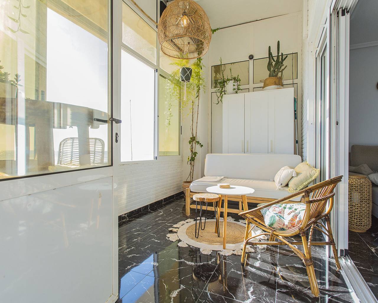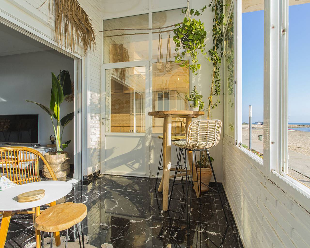 En la ubicación mas exclusiva de La Mata en Torrevieja se encuentra este apartamento de 2 dormitorios con unas vistas fantásticas del mar! Prácticamente encima de la playa con acceso directo a la arena desde el balcón. Es una planta baja, recién renovada. Solo tienes que abrir las ventanas y escuchas el sonido de las olas. Reformado con buen gusto y listo para entrar y vivir! Consta de dos dormitorios, un baño y salón grande con cocina abierta. Electrodomésticos de calidad y aire acondicionado tipo inverter. Se vende totalmente amueblado y además se está alquilando ya a través de nuestro exitoso servicio de alquileres vacacionales. Genera buenos ingresos. Tiene un suelo precioso de mármol y el apartamento hace esquina que permite que entra mucha luz. Os invito a visitar este piso que tiene unas vistas y cualidades que son muy poco frecuentes. Llámenos para concertar una visita!