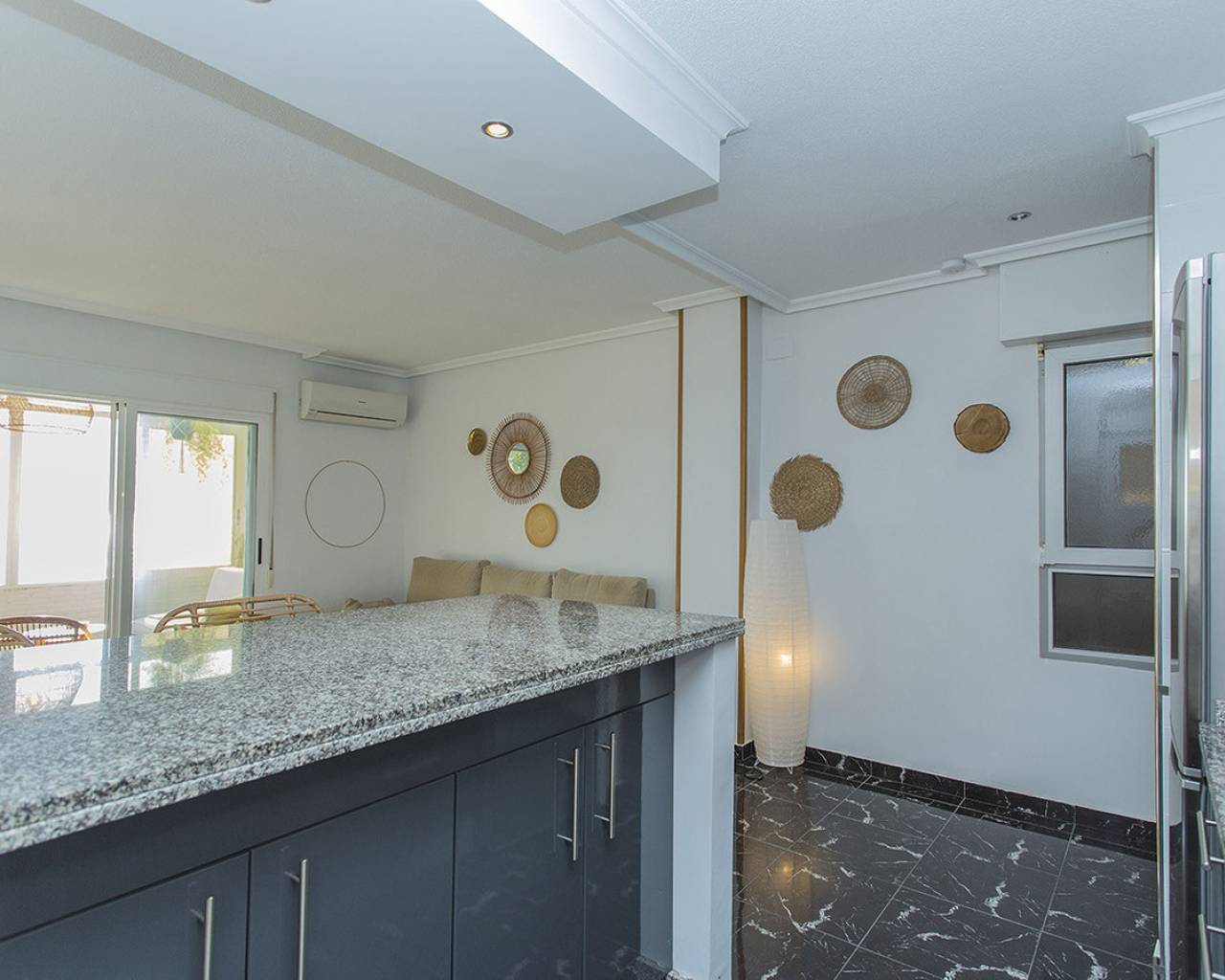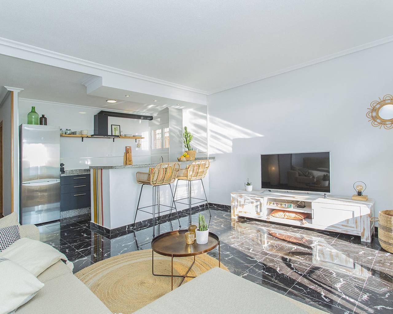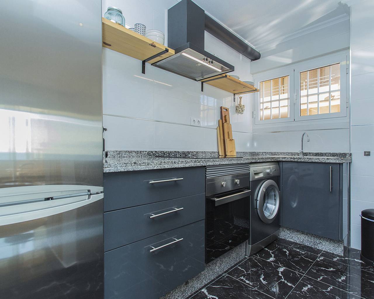 En la ubicación mas exclusiva de La Mata en Torrevieja se encuentra este apartamento de 2 dormitorios con unas vistas fantásticas del mar! Prácticamente encima de la playa con acceso directo a la arena desde el balcón. Es una planta baja, recién renovada. Solo tienes que abrir las ventanas y escuchas el sonido de las olas. Reformado con buen gusto y listo para entrar y vivir! Consta de dos dormitorios, un baño y salón grande con cocina abierta. Electrodomésticos de calidad y aire acondicionado tipo inverter. Se vende totalmente amueblado y además se está alquilando ya a través de nuestro exitoso servicio de alquileres vacacionales. Genera buenos ingresos. Tiene un suelo precioso de mármol y el apartamento hace esquina que permite que entra mucha luz. Os invito a visitar este piso que tiene unas vistas y cualidades que son muy poco frecuentes. Llámenos para concertar una visita!