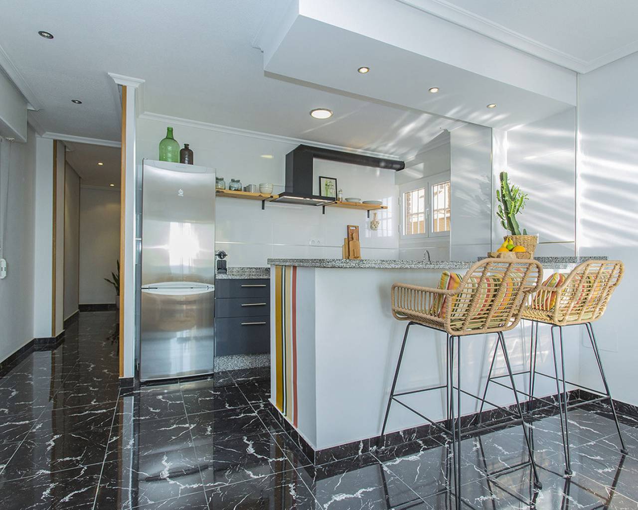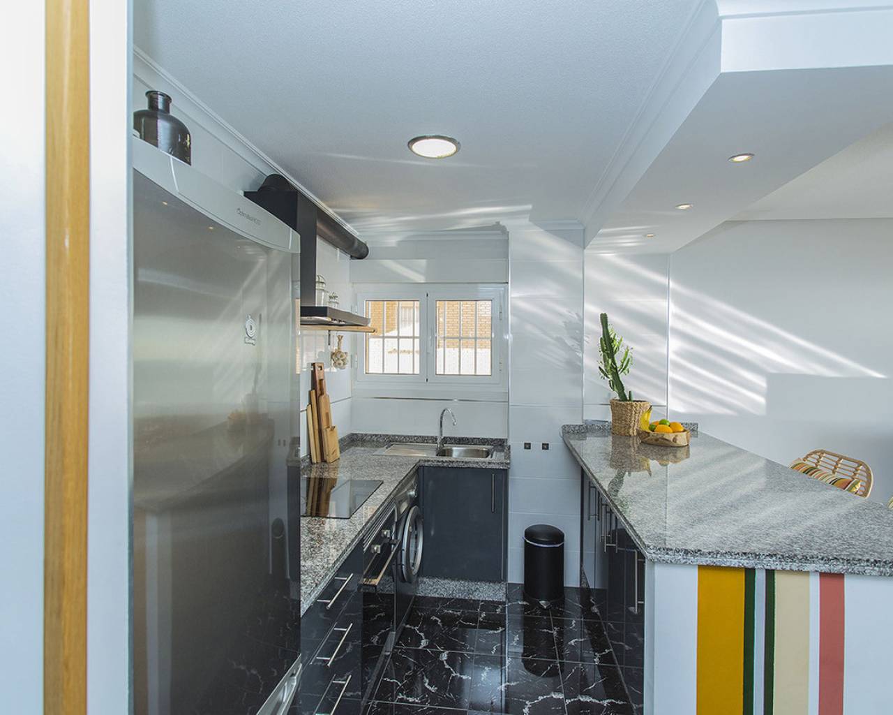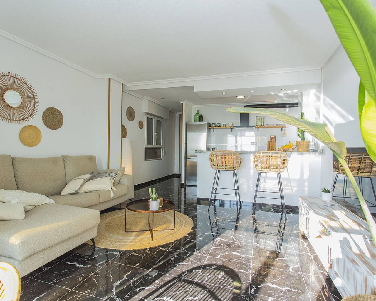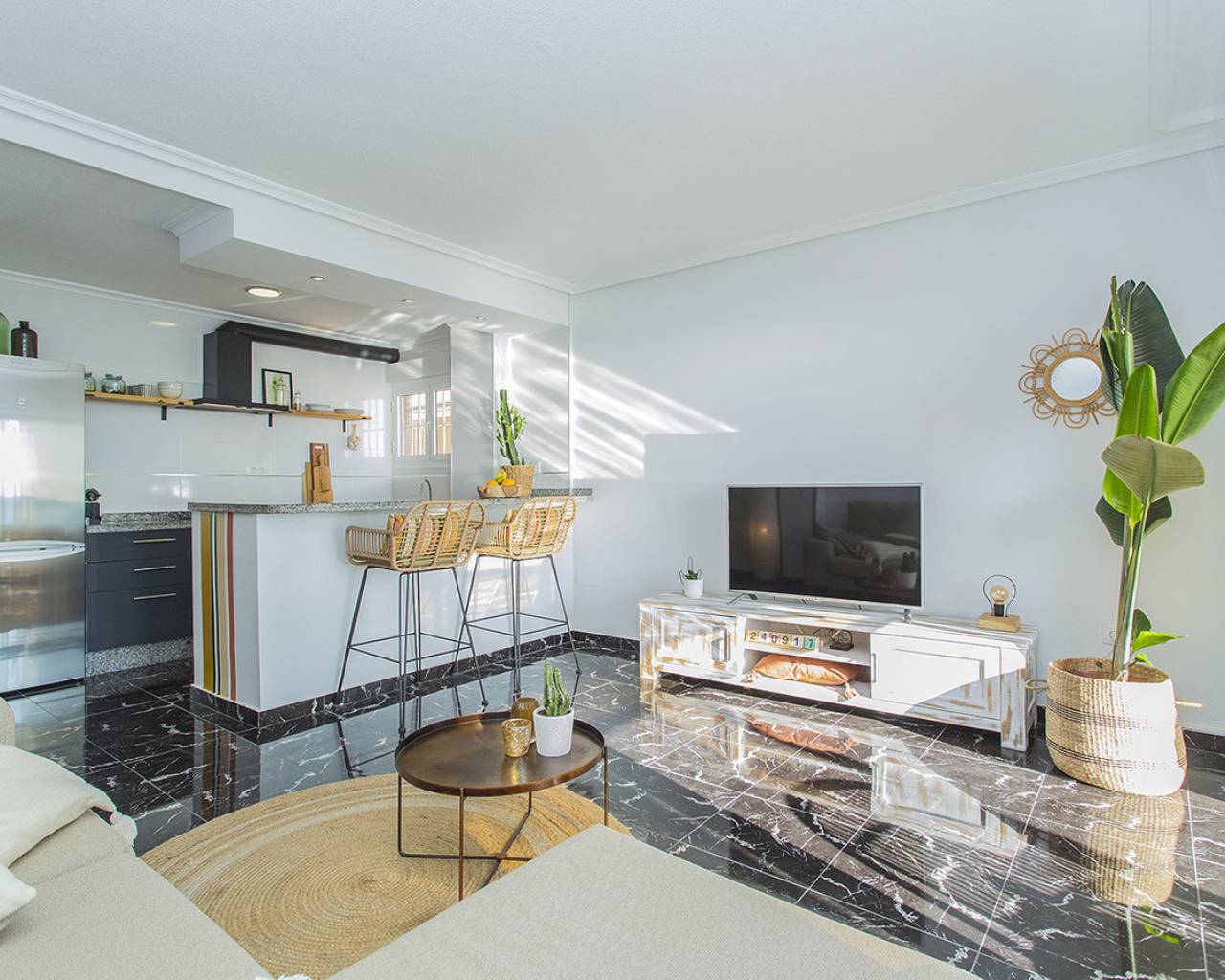 En la ubicación mas exclusiva de La Mata en Torrevieja se encuentra este apartamento de 2 dormitorios con unas vistas fantásticas del mar! Prácticamente encima de la playa con acceso directo a la arena desde el balcón. Es una planta baja, recién renovada. Solo tienes que abrir las ventanas y escuchas el sonido de las olas. Reformado con buen gusto y listo para entrar y vivir! Consta de dos dormitorios, un baño y salón grande con cocina abierta. Electrodomésticos de calidad y aire acondicionado tipo inverter. Se vende totalmente amueblado y además se está alquilando ya a través de nuestro exitoso servicio de alquileres vacacionales. Genera buenos ingresos. Tiene un suelo precioso de mármol y el apartamento hace esquina que permite que entra mucha luz. Os invito a visitar este piso que tiene unas vistas y cualidades que son muy poco frecuentes. Llámenos para concertar una visita!