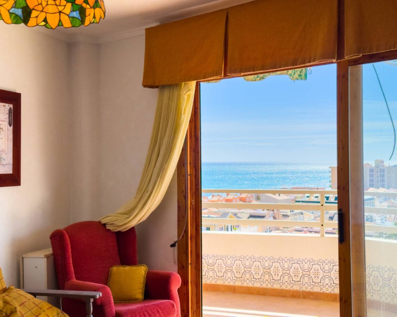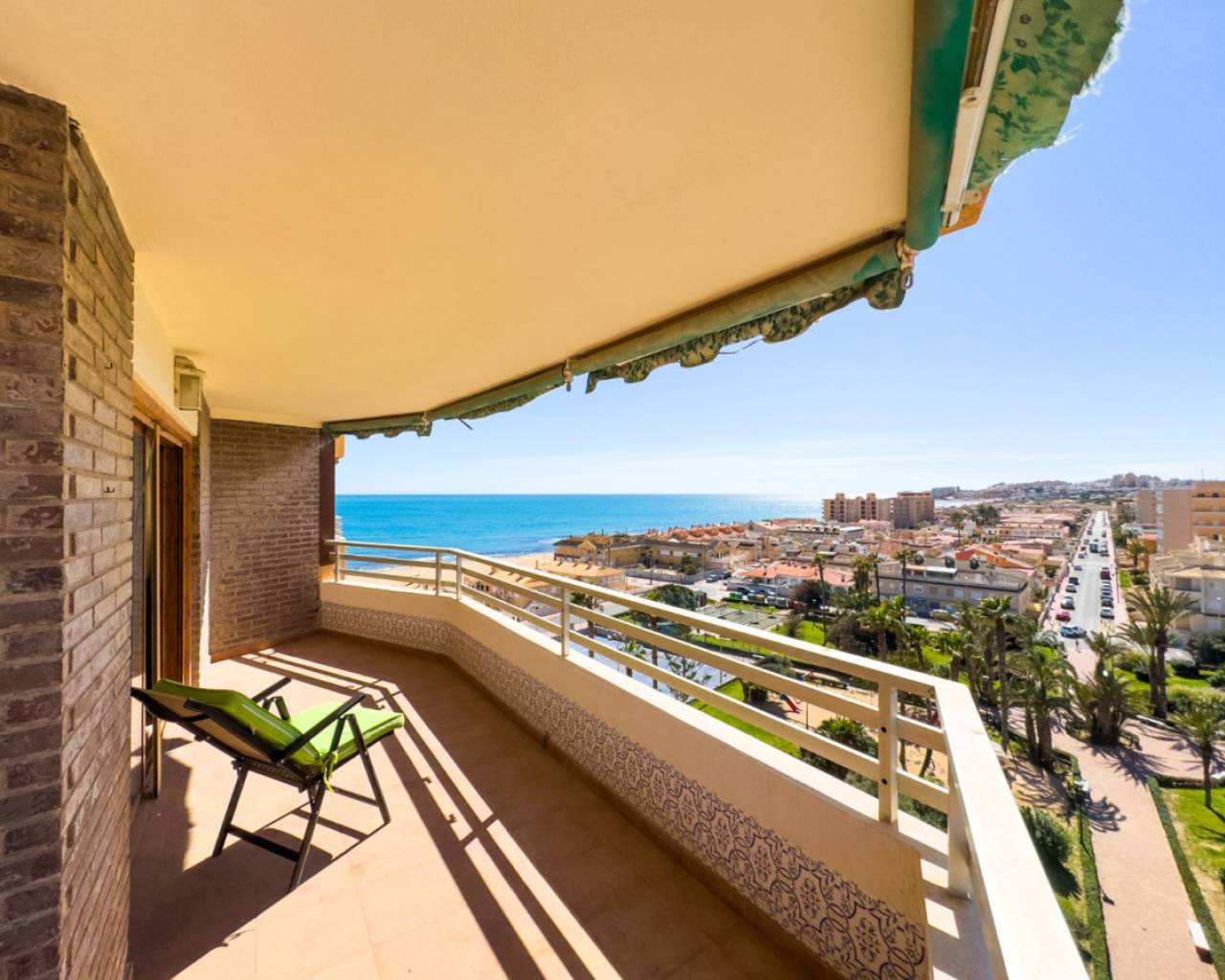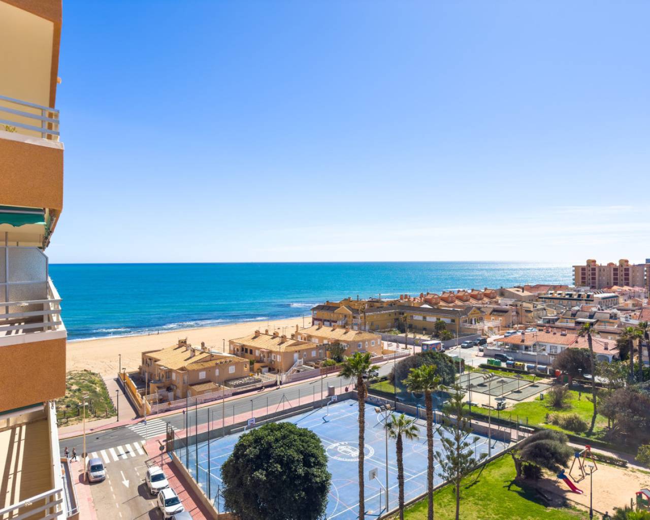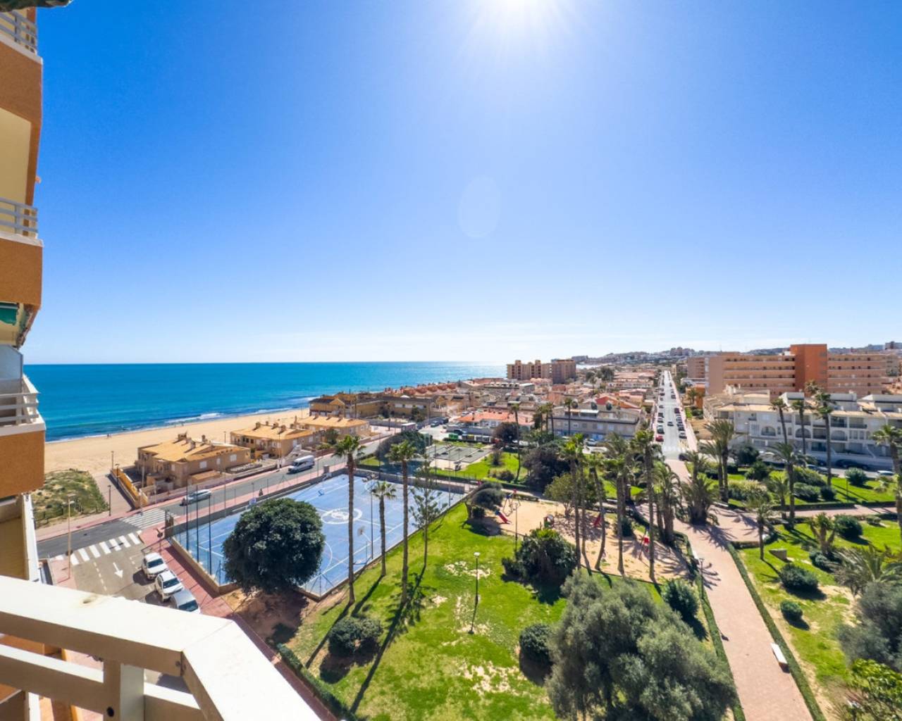 Se ofrece a la venta un apartamento muy amplio en primera línea de mar en el centro de La Mata, Torrevieja. El apartamento está ubicado en el corazón del pueblo y cuenta con preciosas vistas laterales al mar desde el exterior. Se encuentra en la séptima planta de un edificio con dos ascensores y una rampa para personas con movilidad reducida. El apartamento se distribuye de la siguiente manera: cuenta con un amplio salón-comedor con acceso a la terraza, que tiene aproximadamente 23 m2 con orientación sureste y hermosas vistas al mar, tres dormitorios con todas las ventanas al exterior y armarios empotrados, una cocina independiente con todos los electrodomésticos y con exceso a la galería, dos baños completos con plato de ducha. En mismo edificio en sótano tenemos una plaza de garaje, que incluye en el precio. La propiedad tiene una excelente ubicación, a un paso de la playa y a solo 2 minutos del centro de La Mata, con todos los servicios cercanos como supermercados, tiendas de barrio, tanto de alimentación como de otros servicios, y restaurantes. ¡Llámenos para concertar una visita! Si desea una visita virtual o un plano de la propiedad, no dude en ponerse en contacto con nosotros. Además, esta propiedad también podría ser una excelente inversión y le ofrecemos nuestro exitoso servicio de alquiler por temporada. Contáctenos para obtener más información.