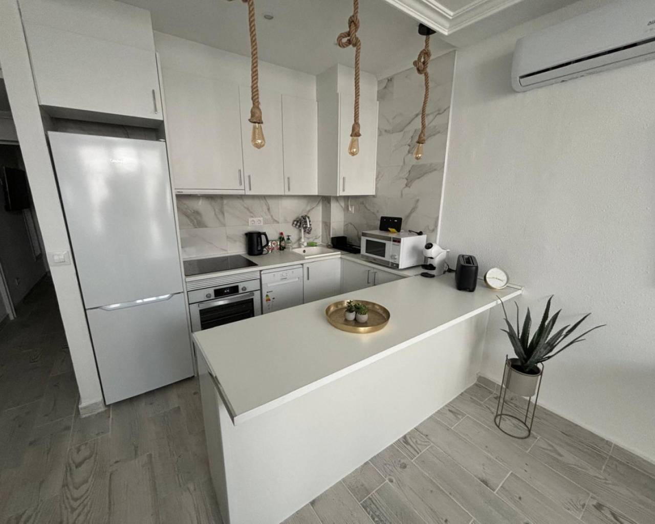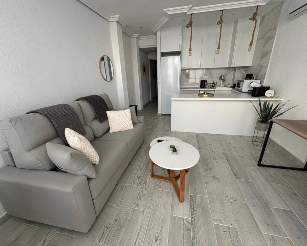 Le presentamos este encantador apartamento completamente reformado, ubicado en la urbanización Los Leandros, a tan solo 200 metros de la playa de La Mata. Esta playa de arena fina está rodeada de una variada oferta gastronómica y vegetación natural, lo que la convierte en un lugar perfecto para disfrutar del mar y la tranquilidad.El apartamento, que dispone de licencia turística, cuenta con una comunidad que incluye una piscina y un garaje privado. Su interior, luminoso y estiloso, está cuidadosamente distribuido en un único espacio que incluye una habitación, un baño y una cocina abierta, creando una sensación de amplitud y modernidad.El diseño abierto permite que la luz natural inunde el apartamento, proporcionando un ambiente cálido y acogedor. Ya sea como vivienda habitual o inversión para alquiler turístico, este apartamento ofrece una excelente oportunidad en una de las zonas más solicitadas de Torrevieja.No dude en contactarnos para más información o para agendar una visita. ¡Este podría ser su futuro hogar junto al mar!