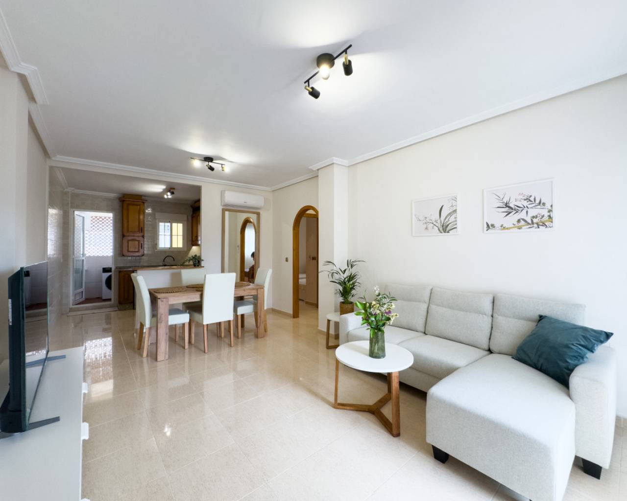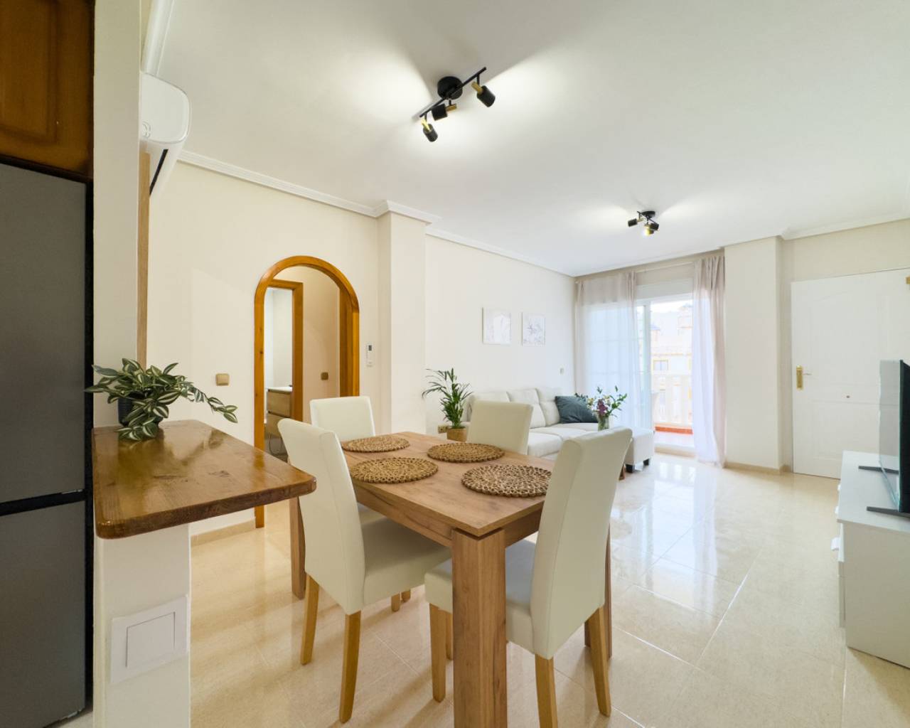 Presentamos un apartamento luminoso y espacioso en una zona tranquila y rodeada de vegetación en Cabo Roig. Totalmente reformado en estilo escandinavo, amueblado y listo para entrar a vivir. La amplia terraza soleada ofrece vistas al parque, proporcionando privacidad y tranquilidad. El aire acondicionado garantiza el confort durante todo el año.El complejo residencial cuenta con una gran piscina y zonas de descanso para los residentes. Tiendas, cafeterías y restaurantes están a poca distancia a pie, facilitando la vida diaria. Las playas de arena están a solo 4 km, ideal para quienes buscan tranquilidad sin renunciar a la cercanía del mar.Este apartamento es perfecto tanto para residencia habitual como para vacaciones o inversión en alquiler. Cabo Roig destaca por su naturaleza, su infraestructura consolidada y un entorno seguro y familiar. Una excelente inversión para disfrutar de la vida en España.