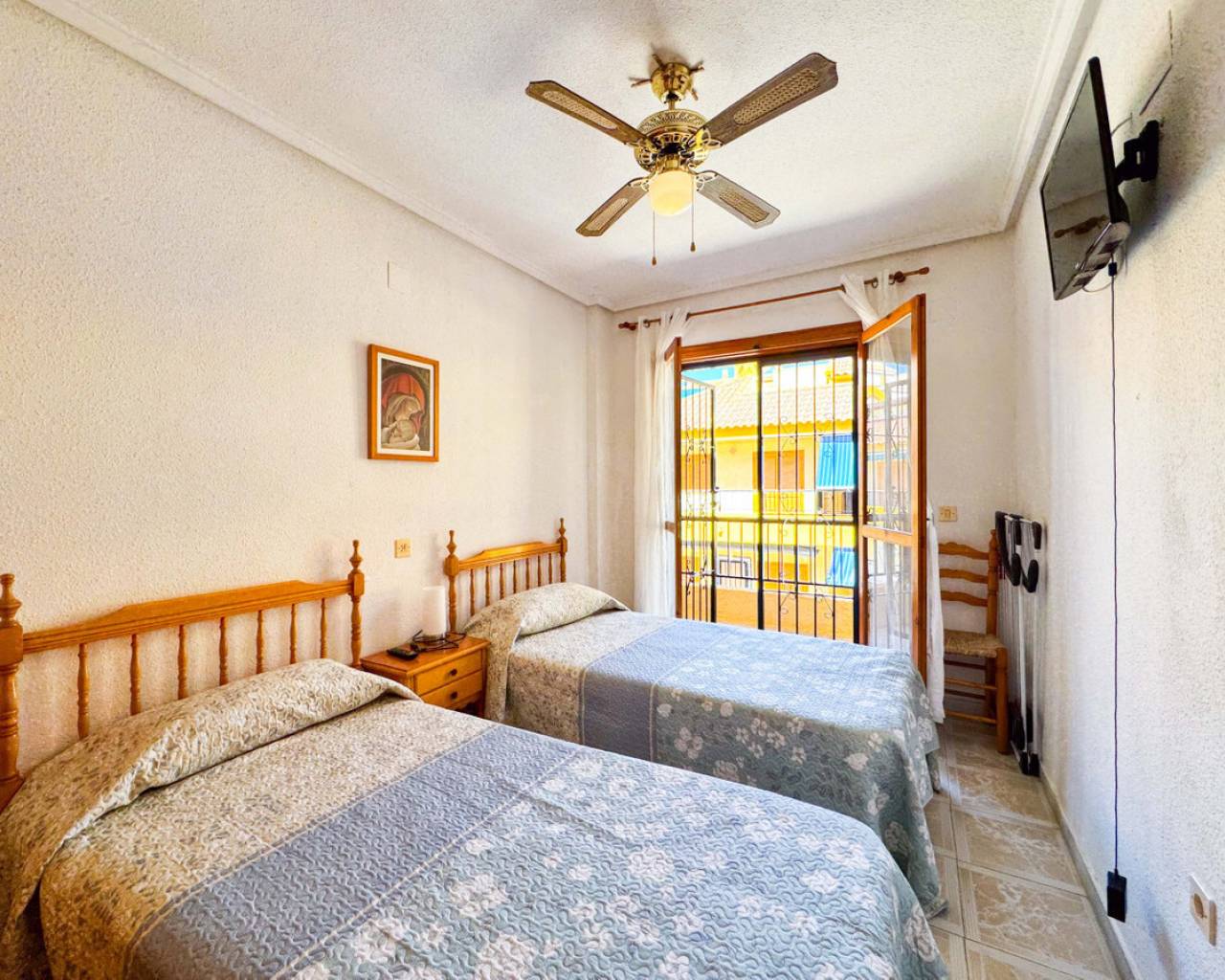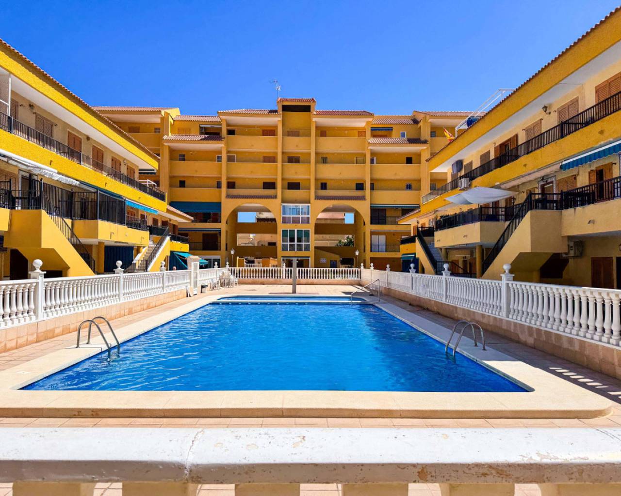Casa adosada en Viñamar 1, La Mata, Torrevieja con piscina comunitaria y terraza de 15 m2. Esta propiedad cuenta con una distribución cómoda y funcional, ideal para disfrutar del entorno costero. En la planta baja se encuentra un amplio salón-comedor, cocina americana equipada y aseo. En la primera planta hay dos dormitorios con armarios empotrados, uno con balcón, y  baño completo. La casa está situada a solo 250 metros de la playa de La Mata, cerca de restaurantes, supermercados y paradas de autobús, lo que facilita el acceso a todos los servicios y el ocio. La piscina comunitaria ofrece un espacio de recreo para la familia. Esta propiedad es ideal para quienes buscan una casa en una zona tranquila pero con todas las comodidades a mano. Se recomienda visitar presencialmente o solicitar una visita virtual y plano detallado. También es una oportunidad atractiva para inversión con servicio de alquiler por temporada. Contáctenos para más información y para organizar una visita.