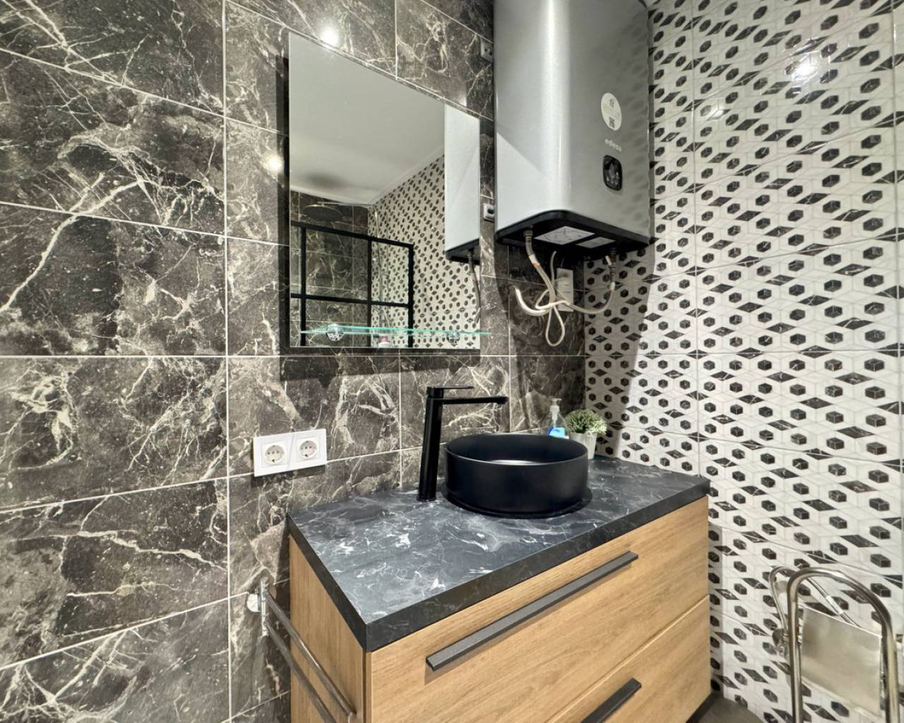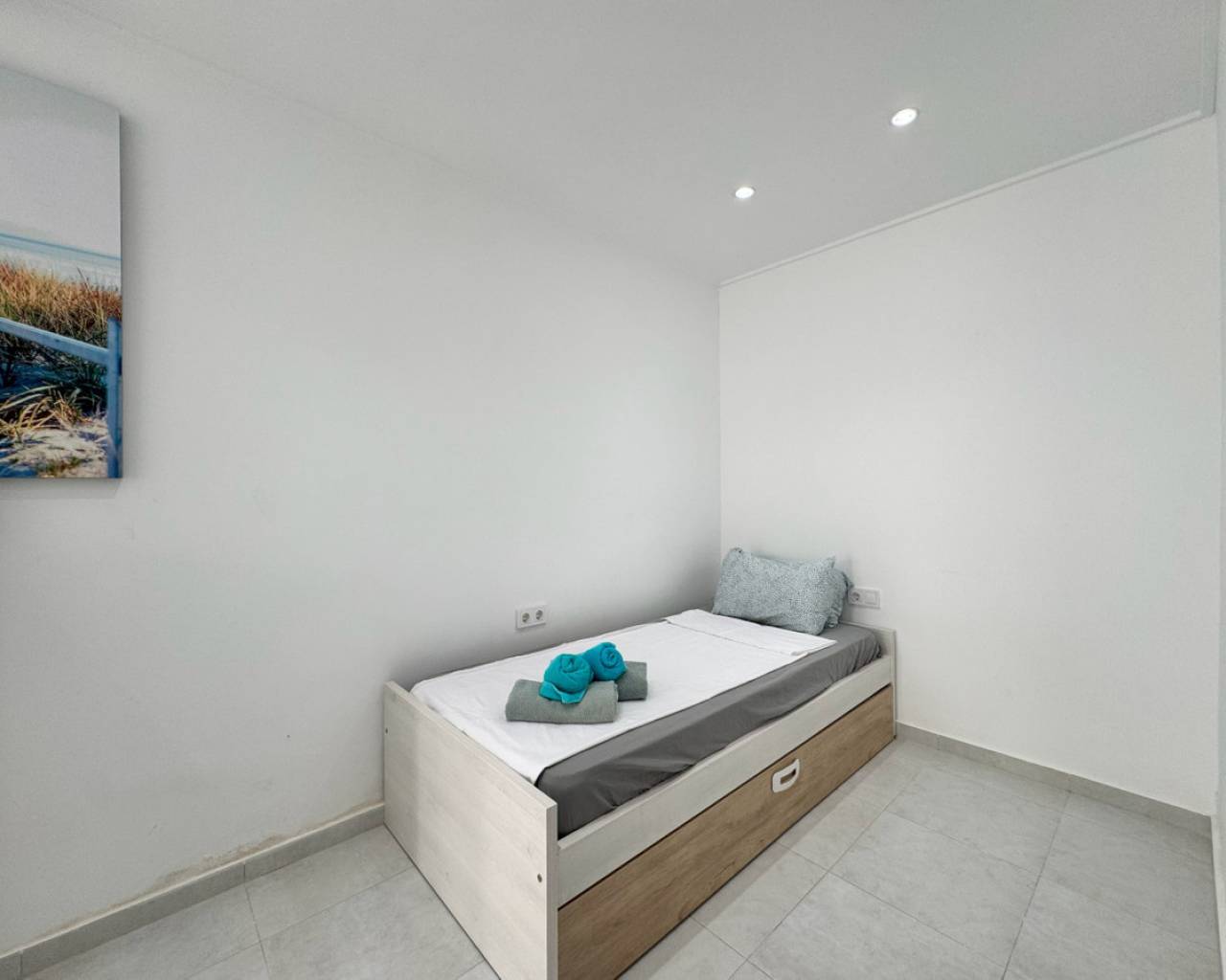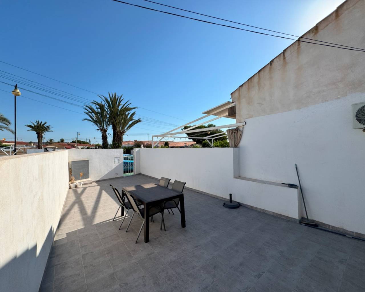 Este encantador bungalow en Torrevieja ofrece 55 m² de espacio habitable y una amplia terraza de 60 m², ubicado a solo 1 km de la popular Playa Los Locos. La propiedad cuenta con dos dormitorios luminosos, un baño moderno, una sala de estar cómoda y una cocina totalmente equipada. Se vende totalmente amueblado con electrodomésticos nuevos y dos unidades de aire acondicionado recién instaladas, listo para entrar a vivir. La gran terraza privada es perfecta para comer al aire libre, relajarse o tomar el sol. La ubicación es excelente, con tiendas, cafeterías y restaurantes a poca distancia, un parque justo frente a la propiedad ideal para familias y amantes de la naturaleza, y campos de golf a solo 5 km. El aeropuerto de Alicante está a solo 40 minutos en coche, lo que convierte este bungalow en una gran opción para residencia permanente o inversión en alquiler. Contáctenos para programar una visita, solicitar un tour virtual o informarse sobre servicios de alquiler por temporada. ¡No pierda la oportunidad de tener un hogar totalmente renovado en una zona muy solicitada de Torrevieja!