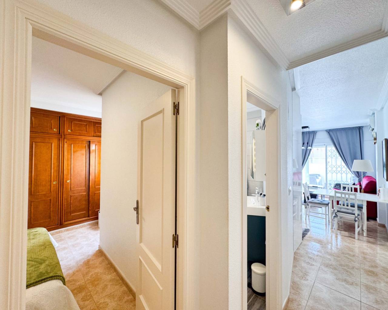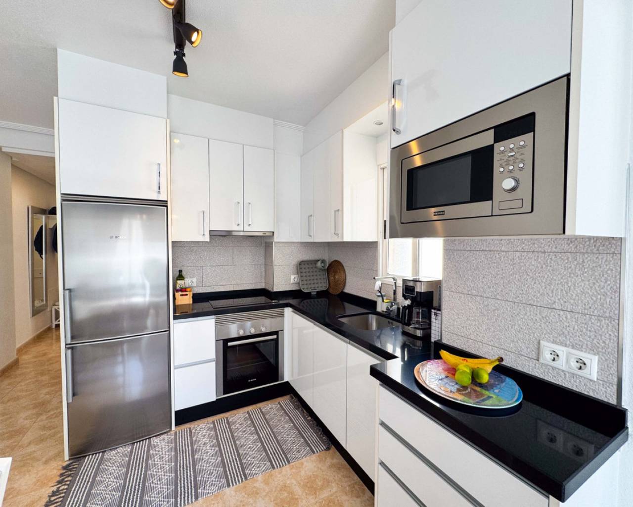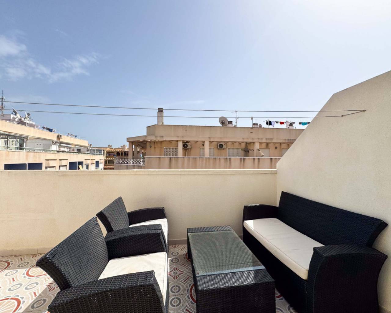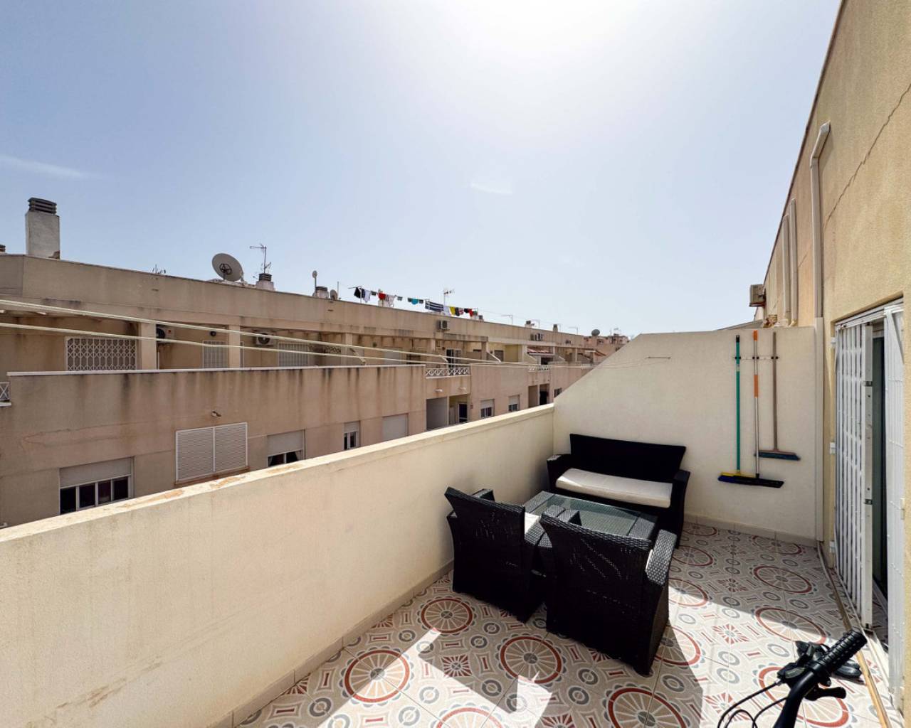 El ático reformado ubicado en Parque de las Naciones, Torrevieja, ofrece una terraza de aproximadamente 18 m2 . Acceso a piscina comunitaria. Este apartamento encuentra en quinta planta de un edificio moderno de 2003, cuenta con varias entradas, ascensores y rampa para personas con movilidad reducida. La orientación sureste de la terraza garantiza una buena iluminación natural.  La distribución incluye un salón comedor con acceso directo a la terraza, cocina abierta, dos dormitorios con armarios empotrados y un baño completo. Además, dispone de aire acondicionado para mayor confort.  Situado junto a un parque y cerca de supermercados, el centro comercial Habaneras y playas, ofrece una ubicación privilegiada con todos los servicios a mano.  Ideal tanto para residencia permanente como para inversión, con la posibilidad de alquiler por temporada.  Contáctenos para visitar presencialmente o solicitar una visita virtual y plano detallado.  -----------------------------------