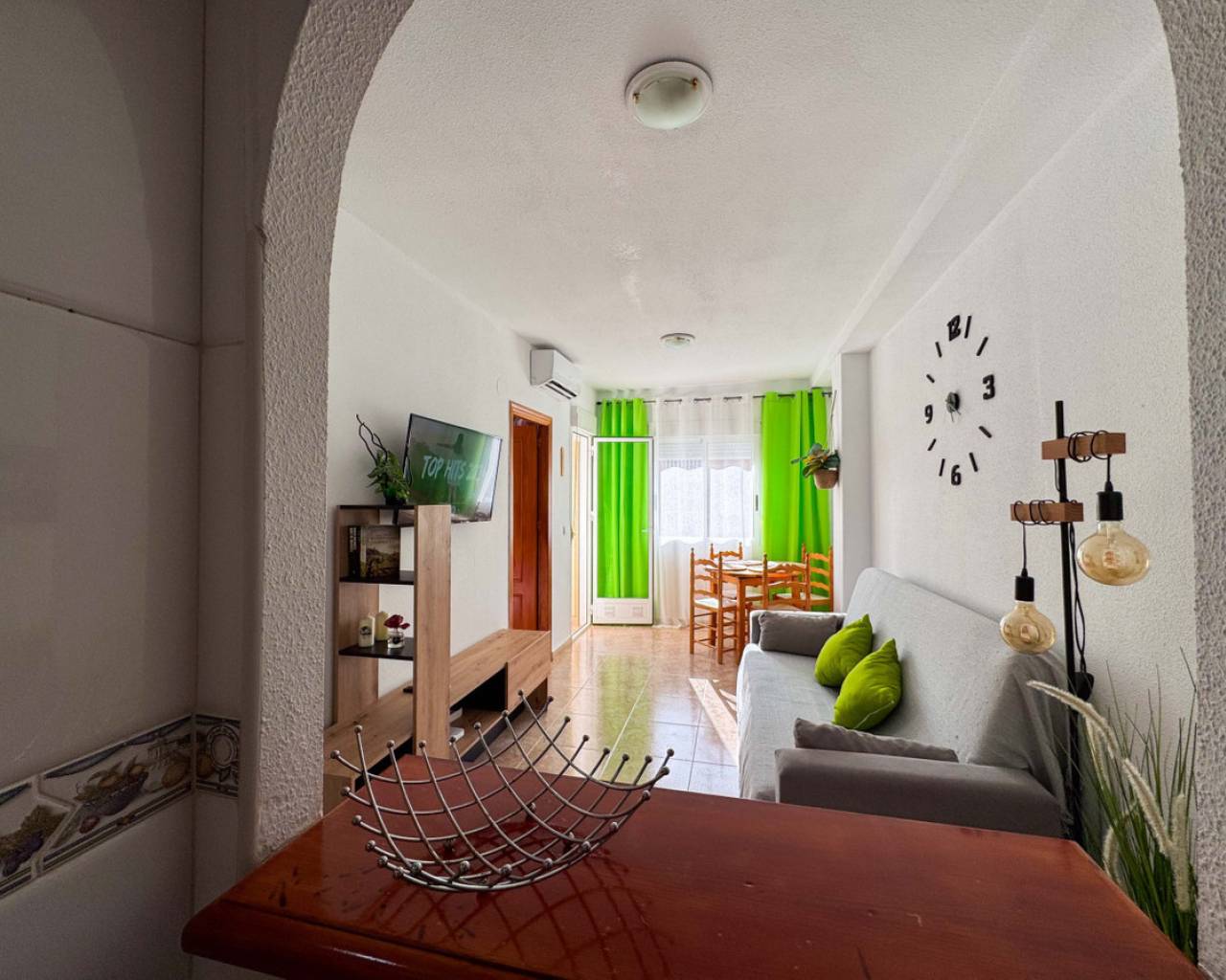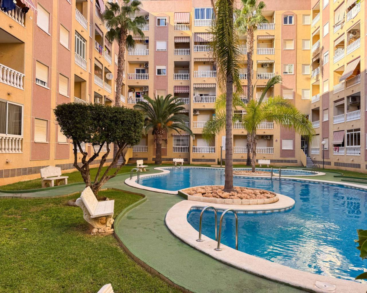 Este apartamento renovado de 1 dormitorio en Torrevieja, ubicado a solo 850 metros de la playa y junto al Parque de las Naciones, ofrece una combinación ideal de comodidad y ubicación. Con 46 m² bien distribuidos, forma parte de una urbanización cuidada con una gran piscina comunitaria y recibe abundante luz natural durante todo el día gracias a su orientación soleada. El apartamento incluye un salón amplio, cocina totalmente equipada, dormitorio luminoso con amplio almacenamiento y baño renovado. Se entrega completamente amueblado con mobiliario moderno y aire acondicionado nuevo, listo para entrar a vivir. Perfecto como casa de vacaciones, oportunidad de inversión o residencia permanente, está cerca de todos los servicios como tiendas, restaurantes y transporte público. No pierda la oportunidad de adquirir una propiedad encantadora cerca del mar en la soleada Torrevieja. Contáctenos para programar una visita, solicitar visita virtual o planos. Considere la opción de alquiler por temporada para inversión.