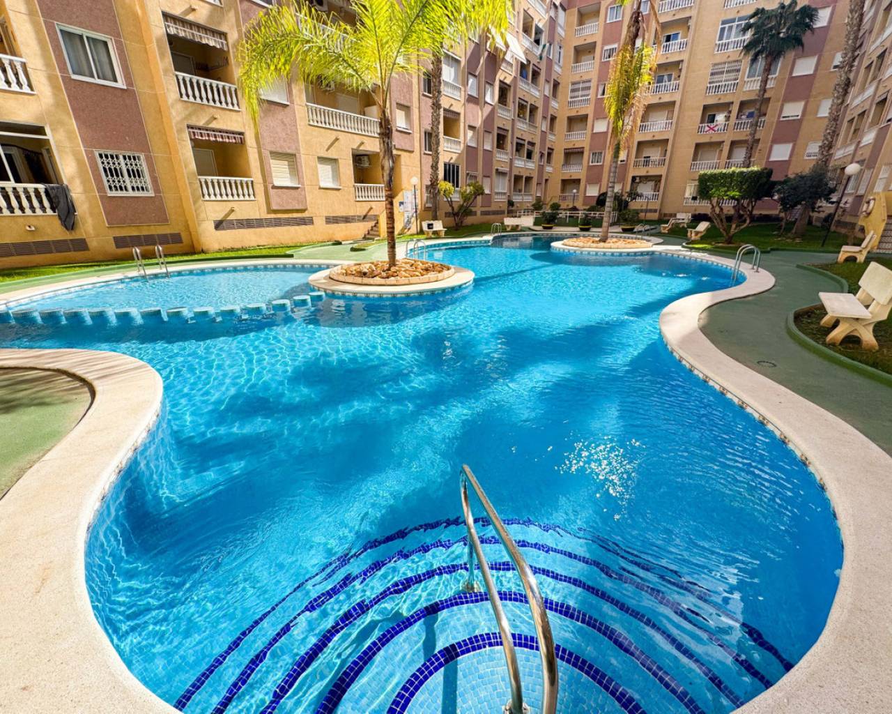Este apartamento reformado en Torrevieja se encuentra a solo 800 metros de la playa y junto a un hermoso parque, ofreciendo un confort excepcional y una gran piscina. El apartamento ofrece amplias y funcionales zonas de estar diseñadas para la comodidad y el relax. La amplia piscina es perfecta para el ocio y las reuniones sociales. Su ubicación junto al parque garantiza un ambiente tranquilo, manteniendo la playa y el centro de la ciudad a poca distancia. Entre los servicios cercanos se incluyen tiendas, restaurantes y otros que mejoran la vida diaria. Le invitamos a programar una visita personal o a aprovechar el recorrido virtual y solicitar planos. Esta propiedad también representa una gran oportunidad de inversión con potencial para alquileres de temporada. Contáctenos hoy mismo para concertar una visita a este atractivo apartamento.
