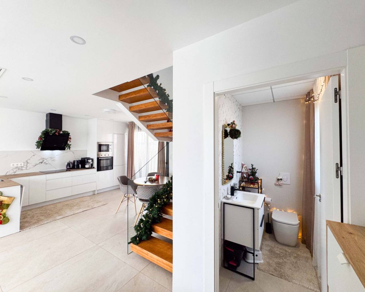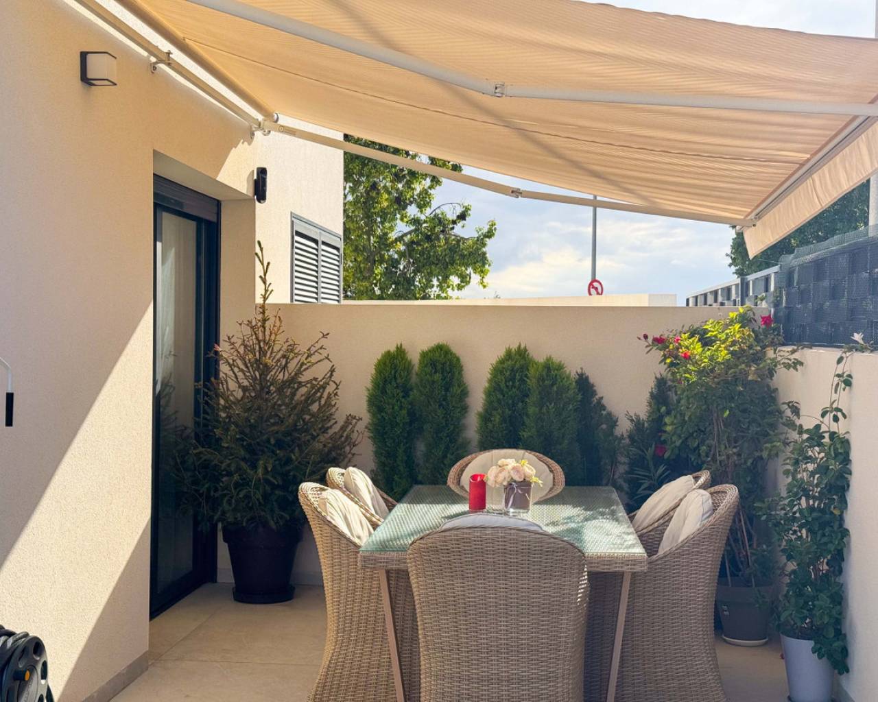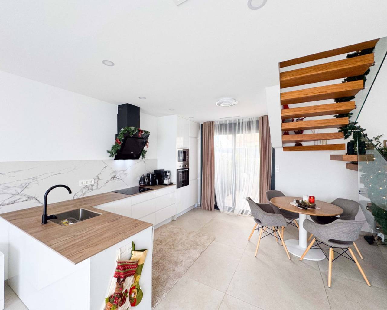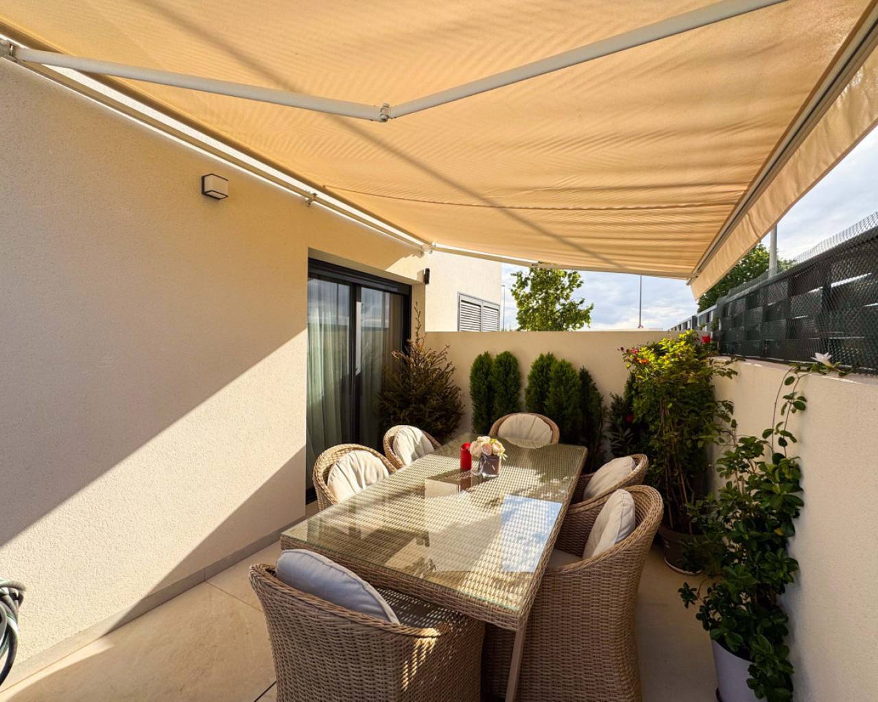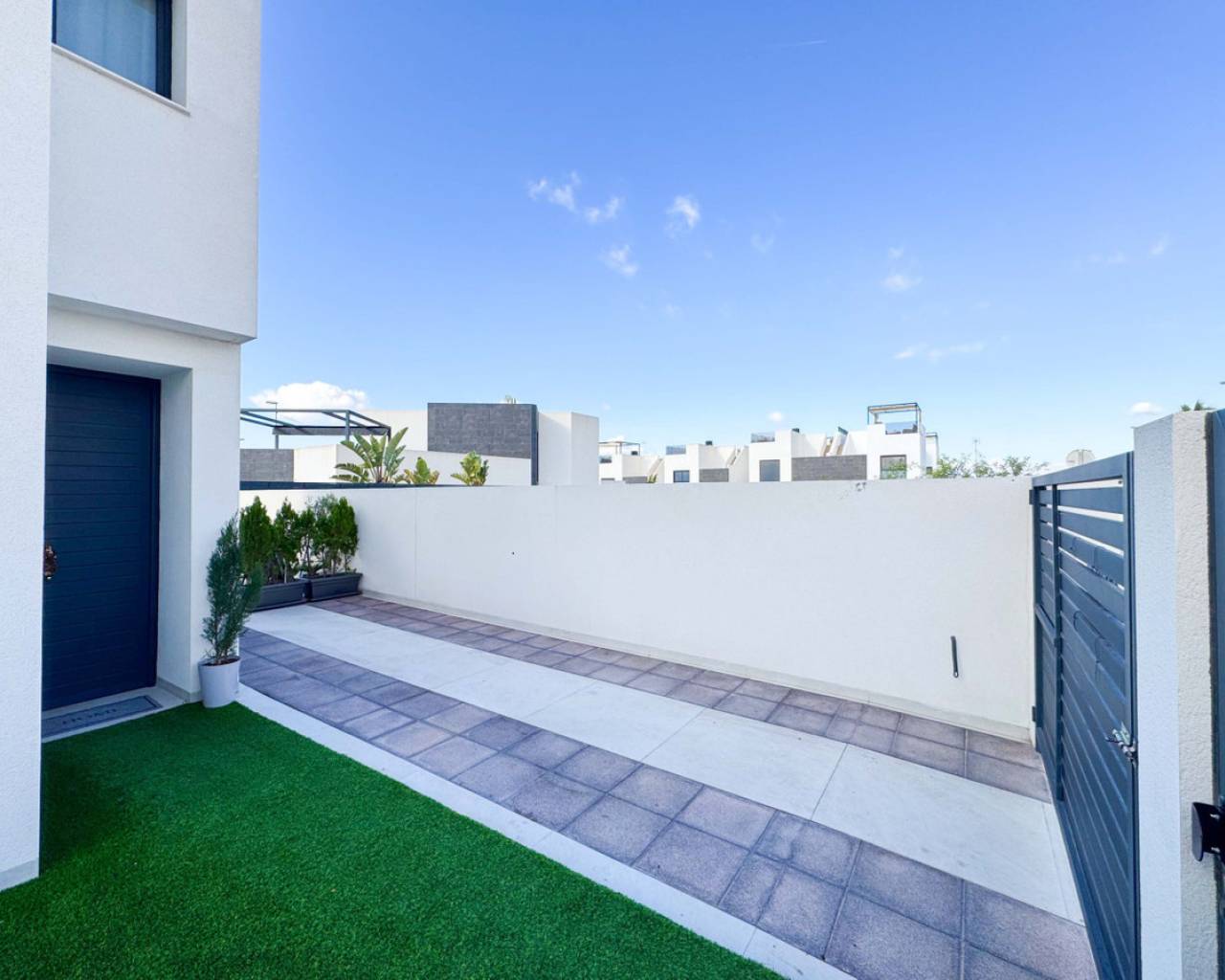 Este precioso chalet adosado de obra reciente, construido en 2024, se encuentra en una de las zonas más demandadas de Benijófar (Alicante), a tan solo 10 km de las magníficas playas de Guardamar, famosas por sus dunas naturales y aguas cristalinas.La vivienda, distribuida en 2 plantas, ofrece 110 m² construidos (106 m² útiles) sobre una parcela privada de 150 m². La distribución es cómoda, moderna y muy funcional:Planta baja: Un amplio y luminoso salón con cocina abierta, diseñado en concepto abierto, con grandes ventanales que permiten la salida directa a la zona de la piscina privada. Este espacio ofrece mucha luz natural y una conexión perfecta entre interior y exterior. En esta planta se encuentra también un aseo, ideal para invitados y para uso diario.Segunda planta: Dispone de 2 amplios dormitorios, ambos con muy buena iluminación natural, y un baño grande, moderno y elegante. Desde esta planta se accede al gran solárium privado, un espacio perfecto para relajarse, tomar el sol, crear una zona chill-out o disfrutar de agradables veladas con vistas despejadas.En el exterior, la casa cuenta con una piscina privada, ideal para disfrutar del clima mediterráneo durante todo el año, así como un parking privado dentro de la parcela, incluido en el precio. La orientación este garantiza luminosidad desde primeras horas del día. La vivienda está en excelente estado y equipada con calefacción individual mediante bomba de frío/calor, aportando confort durante todo el año.Benijófar es un encantador municipio del sur de Alicante que combina tranquilidad, servicios y calidad de vida. Rodeado de naturaleza, senderos y zonas verdes, es el lugar ideal tanto para vivir todo el año como para disfrutar de estancias vacacionales. El municipio ofrece todos los servicios esenciales, como supermercados, comercios locales, farmacias, colegios y una amplia oferta gastronómica reconocida por su calidad.Su ubicación es estratégica, con fácil acceso a la AP-7 y muy cerca de localidades como Ciudad Quesada, Rojales y Torrevieja, además de encontrarse a solo 30 minutos del aeropuerto internacional de Alicante. Benijófar es un destino muy valorado por su ambiente tranquilo, seguro y acogedor, popular entre residentes nacionales e internacionales.Una propiedad perfecta para quienes buscan calidad, comodidad, privacidad, sol y proximidad al mar en un entorno privilegiado.