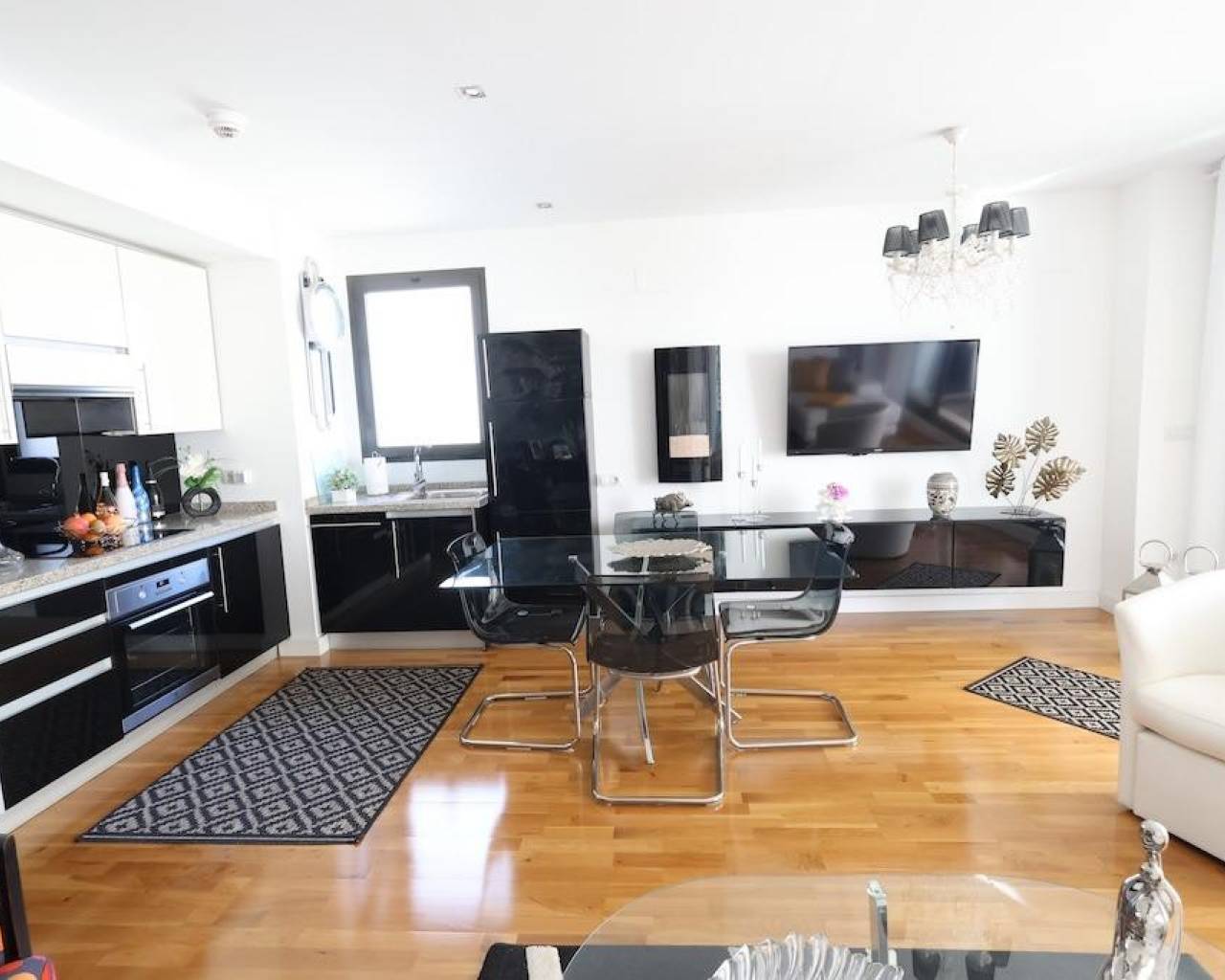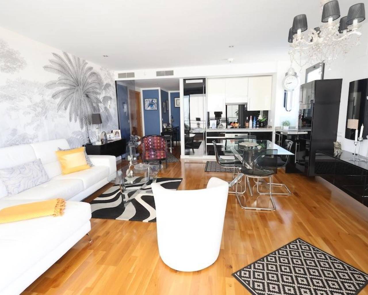 Campoamor Golf Apartamento de diseño con vistas al mar. . Exclusivo apartamento de diseño ubicado en el prestigioso Campo de Golf de Campoamor, con orientación sur que garantiza una excelente luminosidad natural y preciosas vistas al mar.. . La vivienda cuenta con 87 m2 distribuidos en 2 amplios dormitorios, 2 baños completos, un gran salón-comedor con cocina integrada y una encantadora terraza acristalada, perfecta para disfrutar durante todo el año.. . Se vende totalmente amueblada, con aire acondicionado central, e incluye plaza de garaje.. . El residencial está completamente cerrado, ofreciendo seguridad y tranquilidad, y dispone de una amplia y cuidada piscina comunitaria.