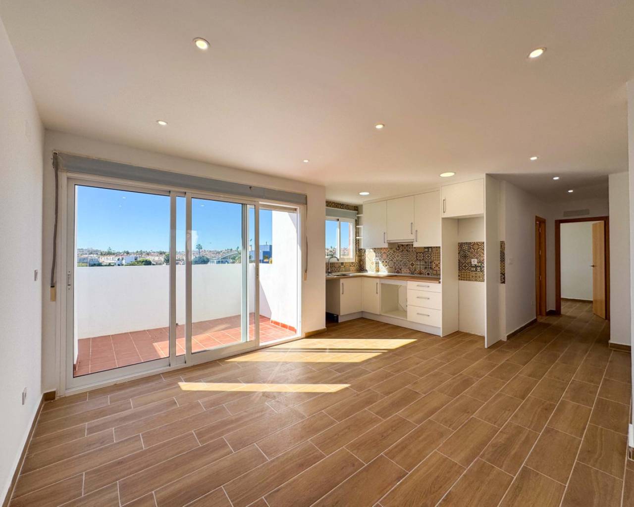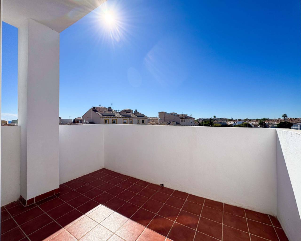 Este ático con solárium ubicado en Punta Prima, Orihuela Costa, ofrece vistas al mar, piscina comunitaria y aparcamiento privado. La propiedad cuenta con un salón-comedor luminoso con acceso a un balcón, una cocina americana sin electrodomésticos, dos dormitorios con armarios empotrados y dos baños completos. Con aproximadamente 75 metros cuadrados de superficie, este ático es ideal para quienes buscan un espacio cómodo y funcional cerca del mar. Punta Prima es una zona muy valorada por su proximidad a la costa y servicios, incluyendo tiendas, restaurantes y transporte. La piscina comunitaria y el aparcamiento privado añaden valor y comodidad. Se invita a realizar una visita presencial para conocer todos los detalles o bien solicitar una visita virtual o plano. También se puede considerar como una inversión con opción de alquiler por temporada. Contáctenos para visitar y descubrir esta oportunidad en Orihuela Costa.